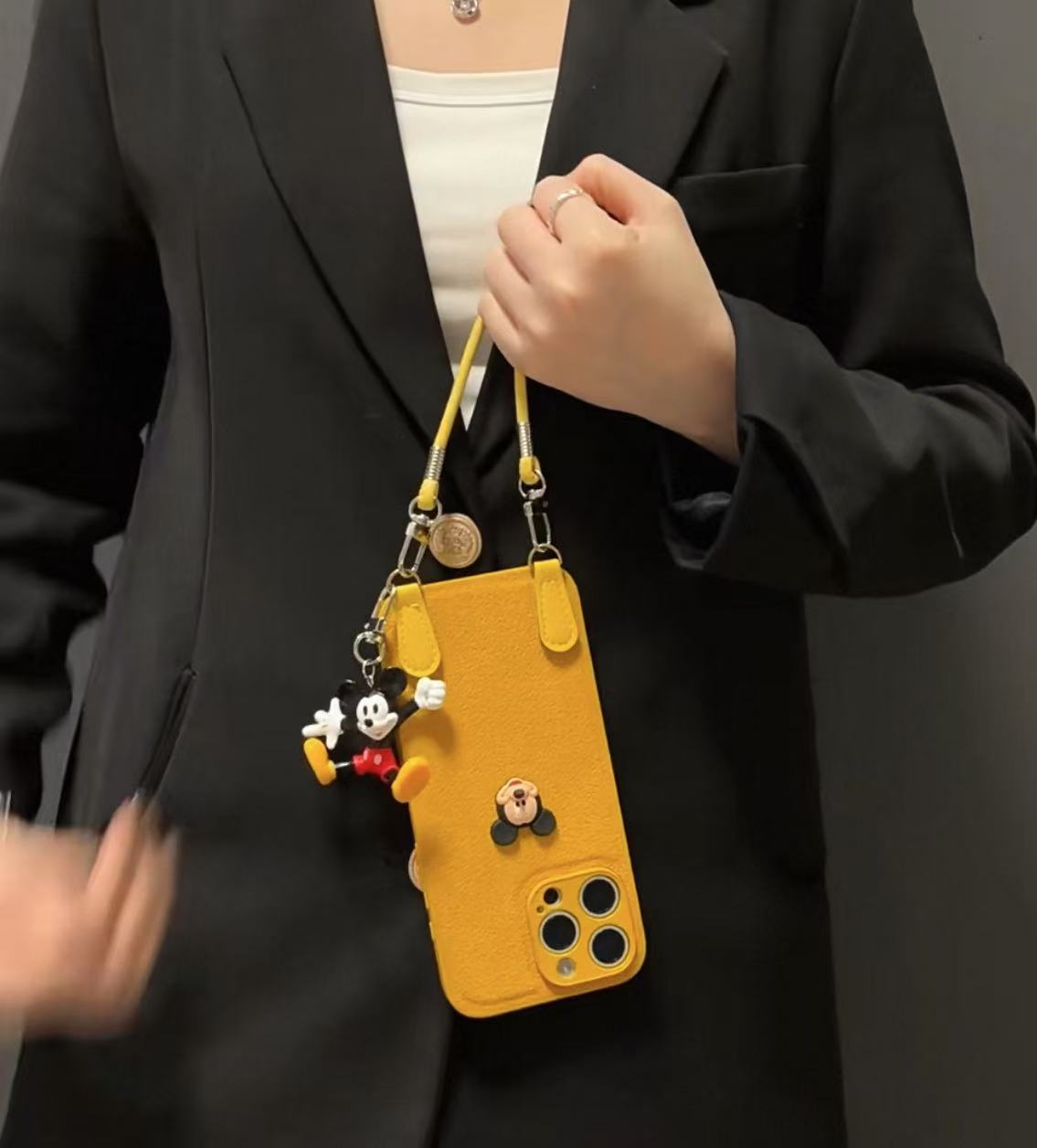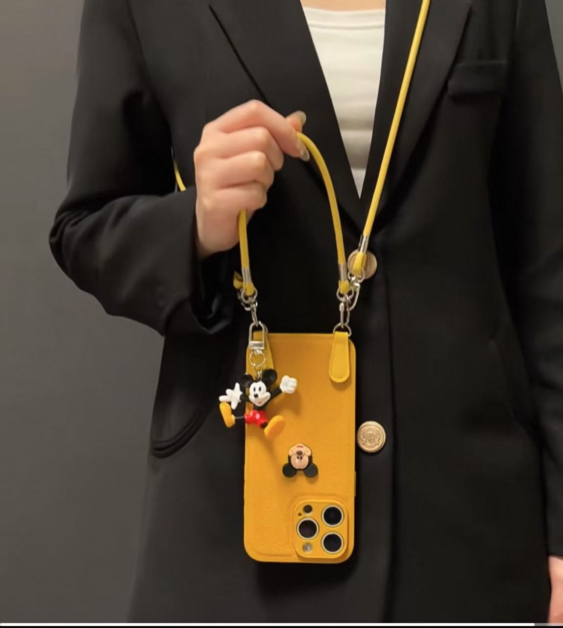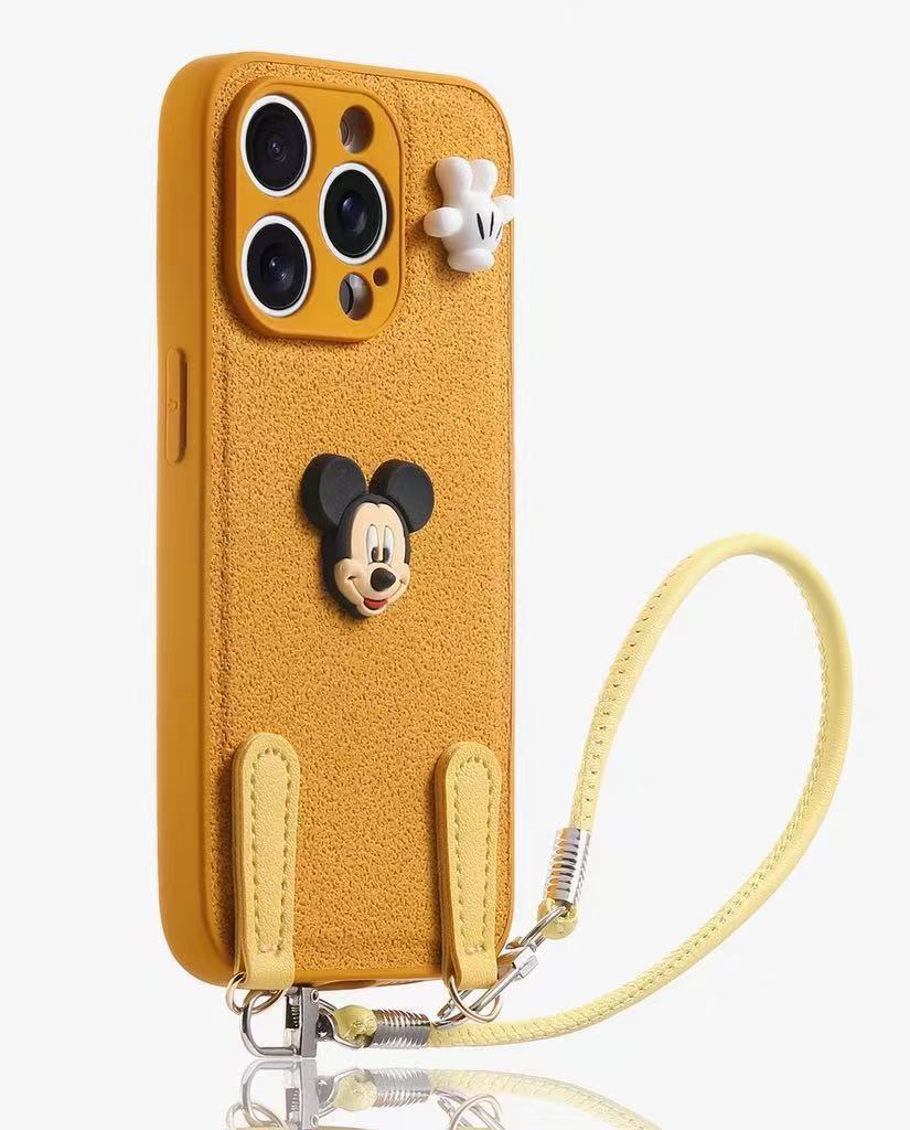 Cordón de Mickey con patrón de hoyos de luna simple para iPhone16ProMax Apple 15 funda para teléfono móvil 14 diagonal 13 hombres y mujeres