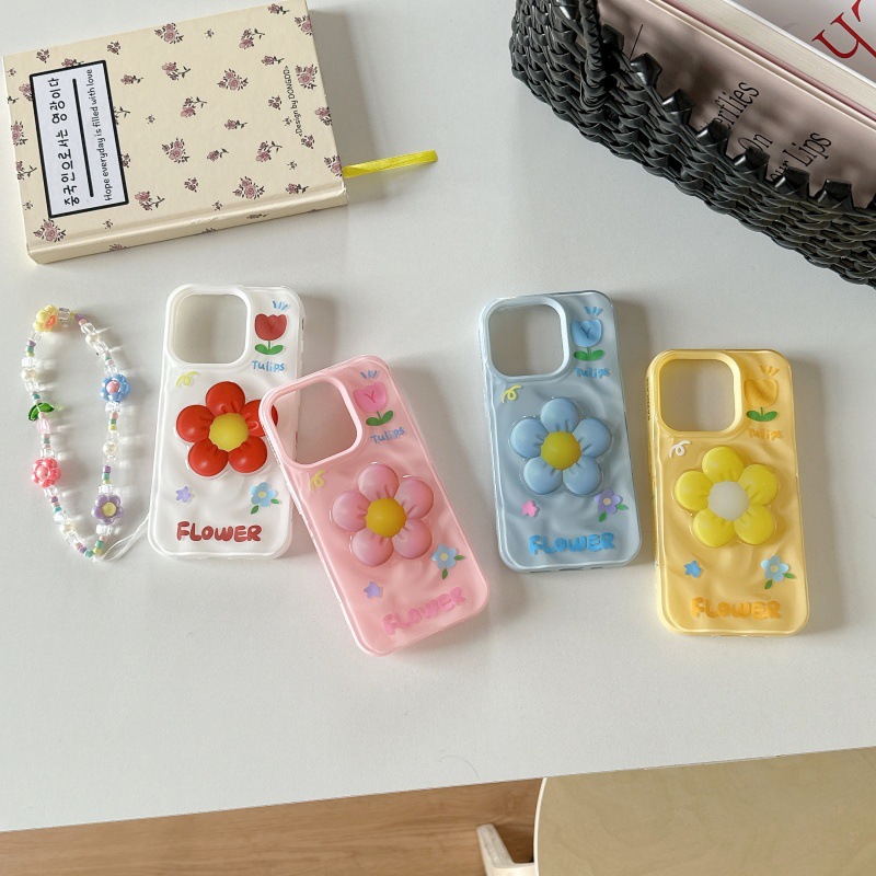 Nuevas flores tridimensionales plisadas ins para iPhone16ProMax Apple 14/15 funda para teléfono móvil 13 mujeres 15PM