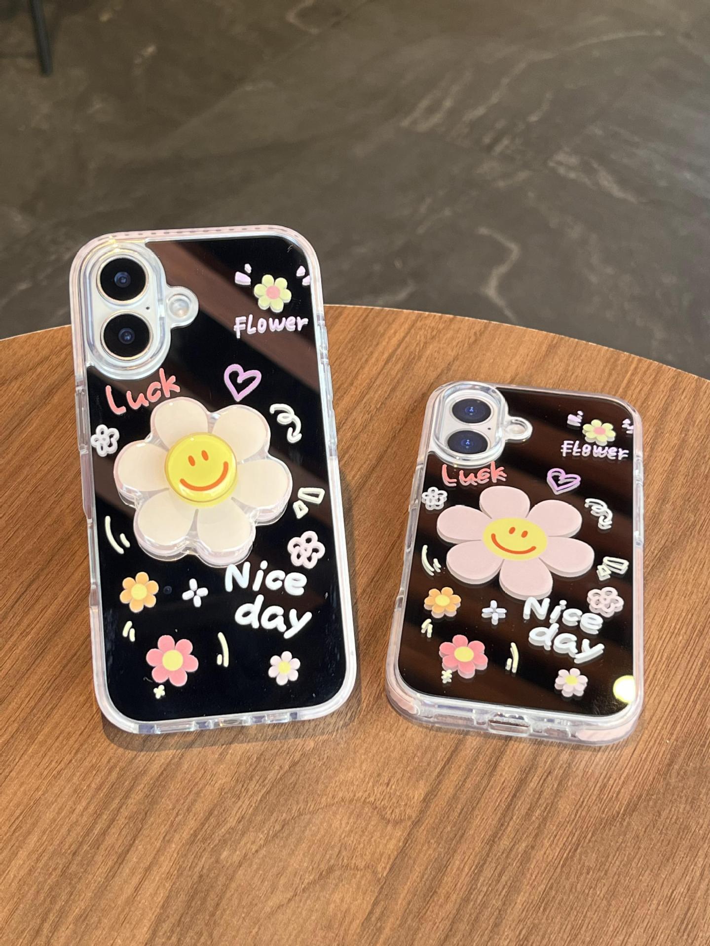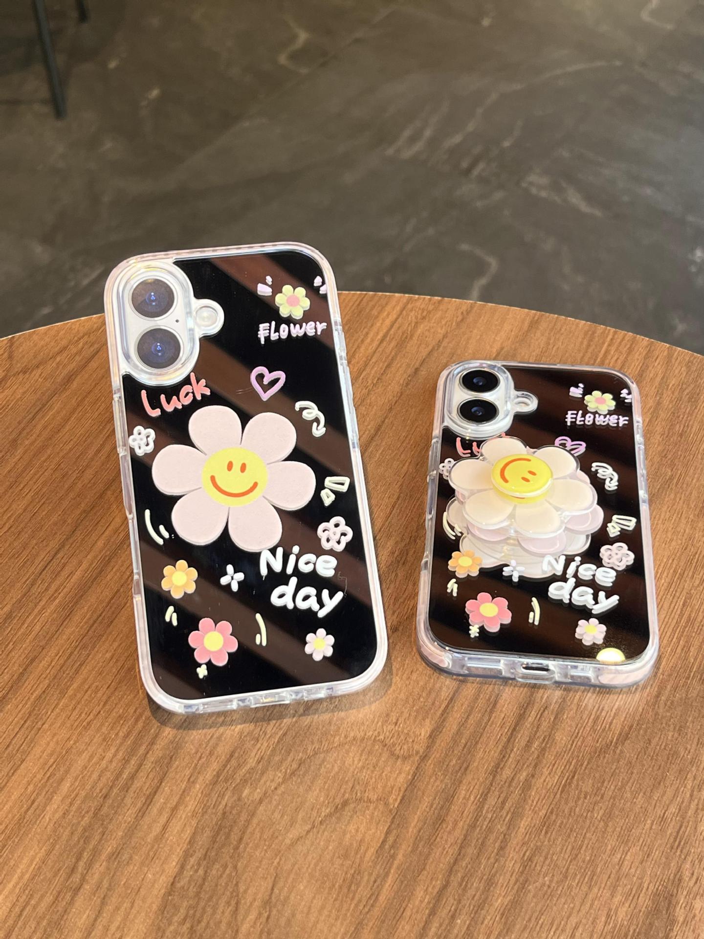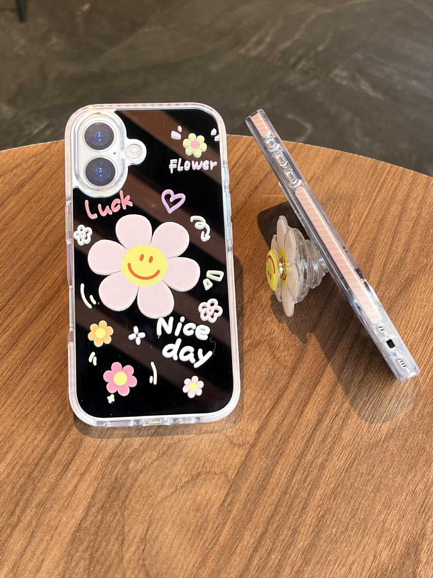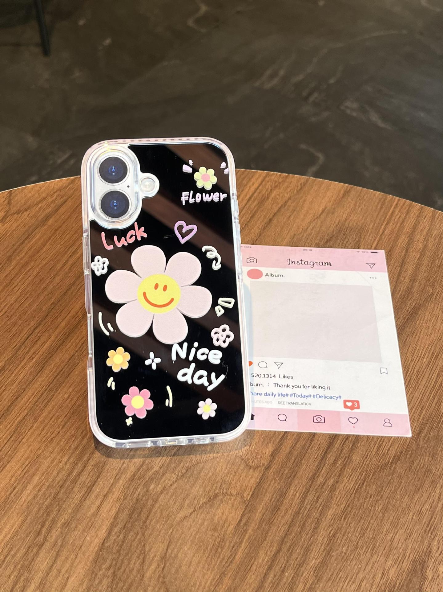 Verano pantalla completa pequeña flor pequeña espejo inglés adecuado para Apple 16ProMax funda para teléfono móvil 15/14 New 15Pro Mujer 13
