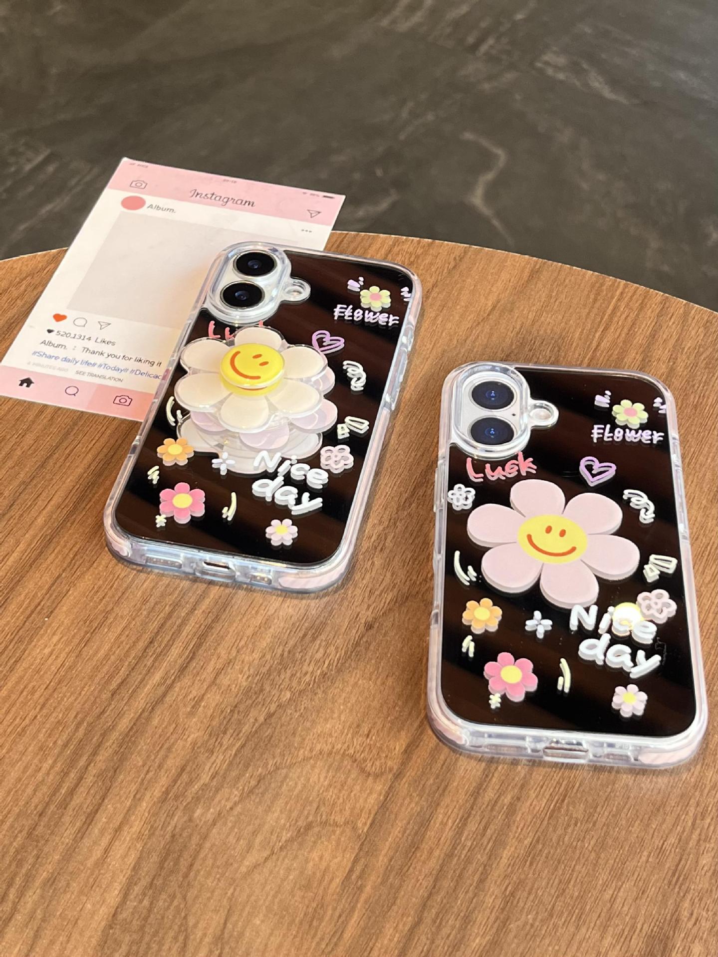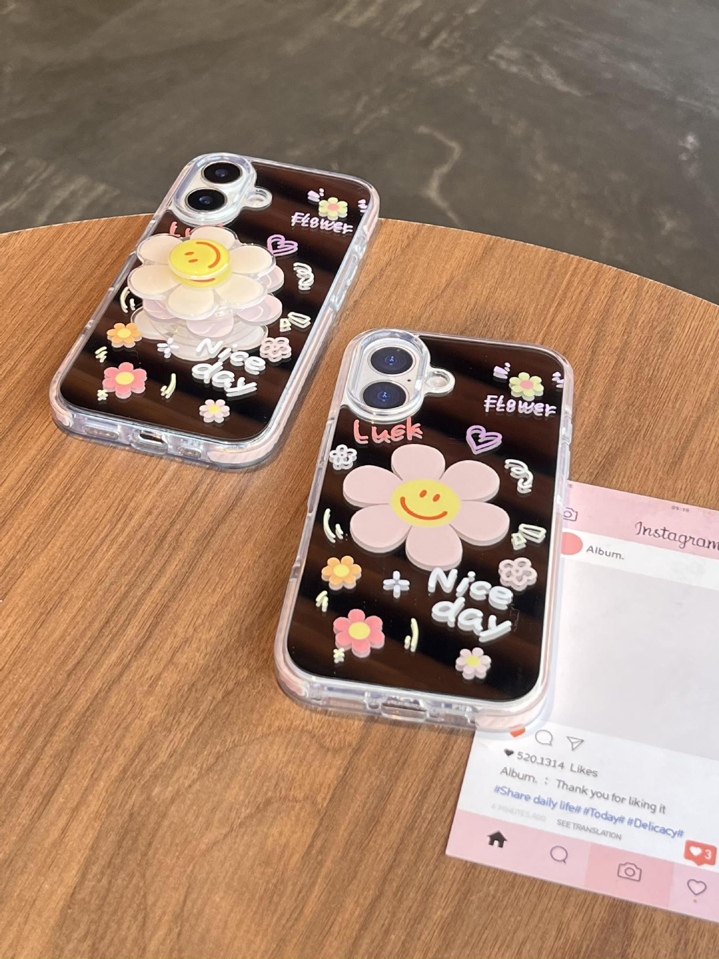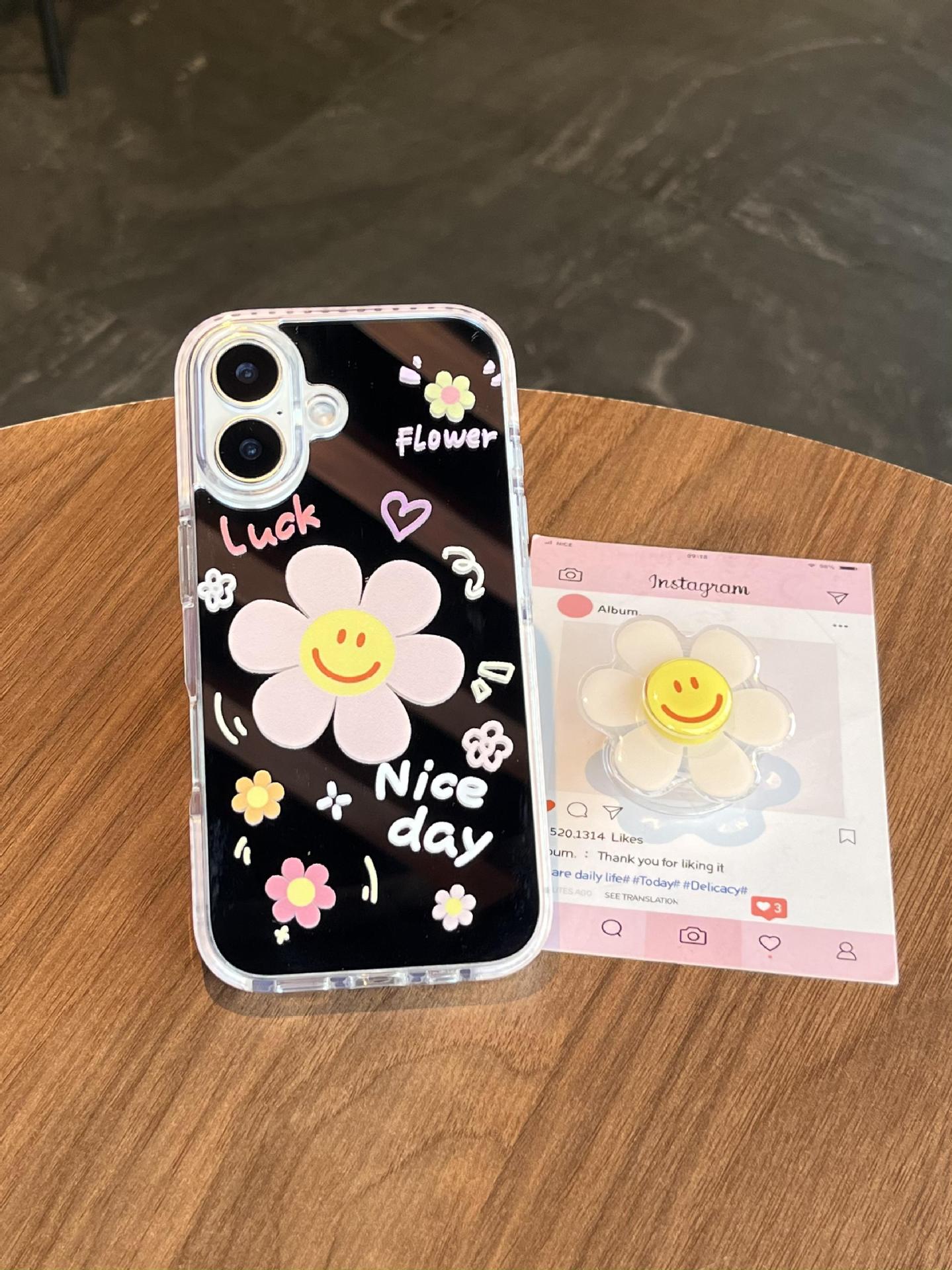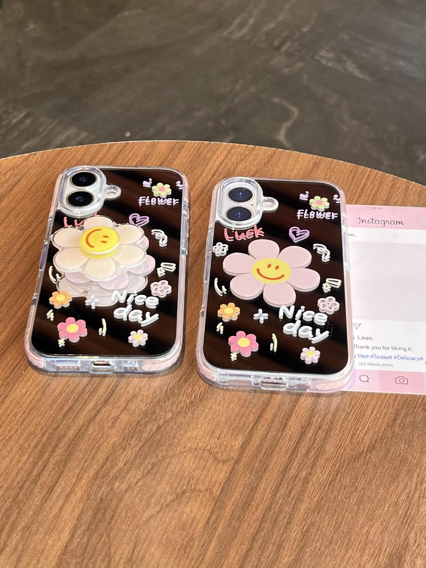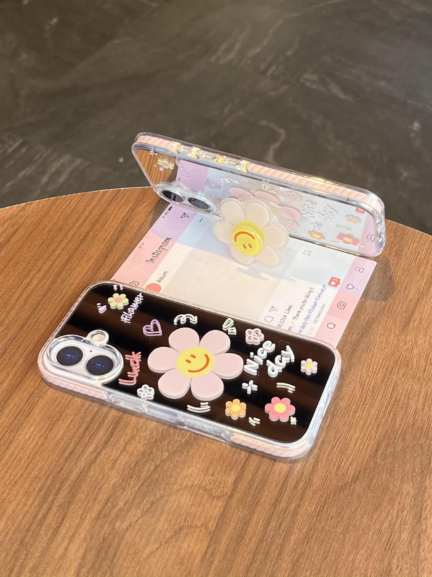 Verano pantalla completa pequeña flor pequeña espejo inglés adecuado para Apple 16ProMax funda para teléfono móvil 15/14 New 15Pro Mujer 13