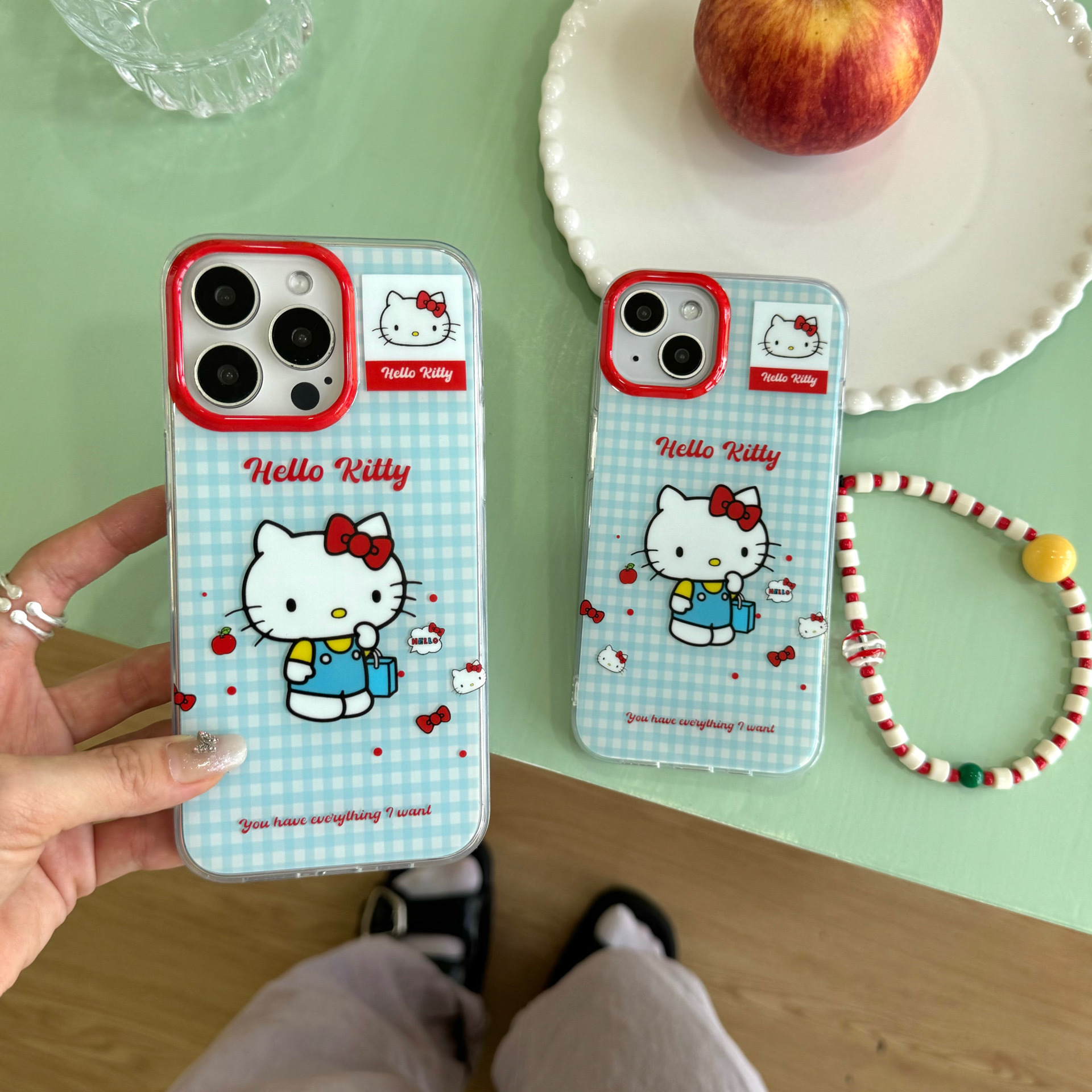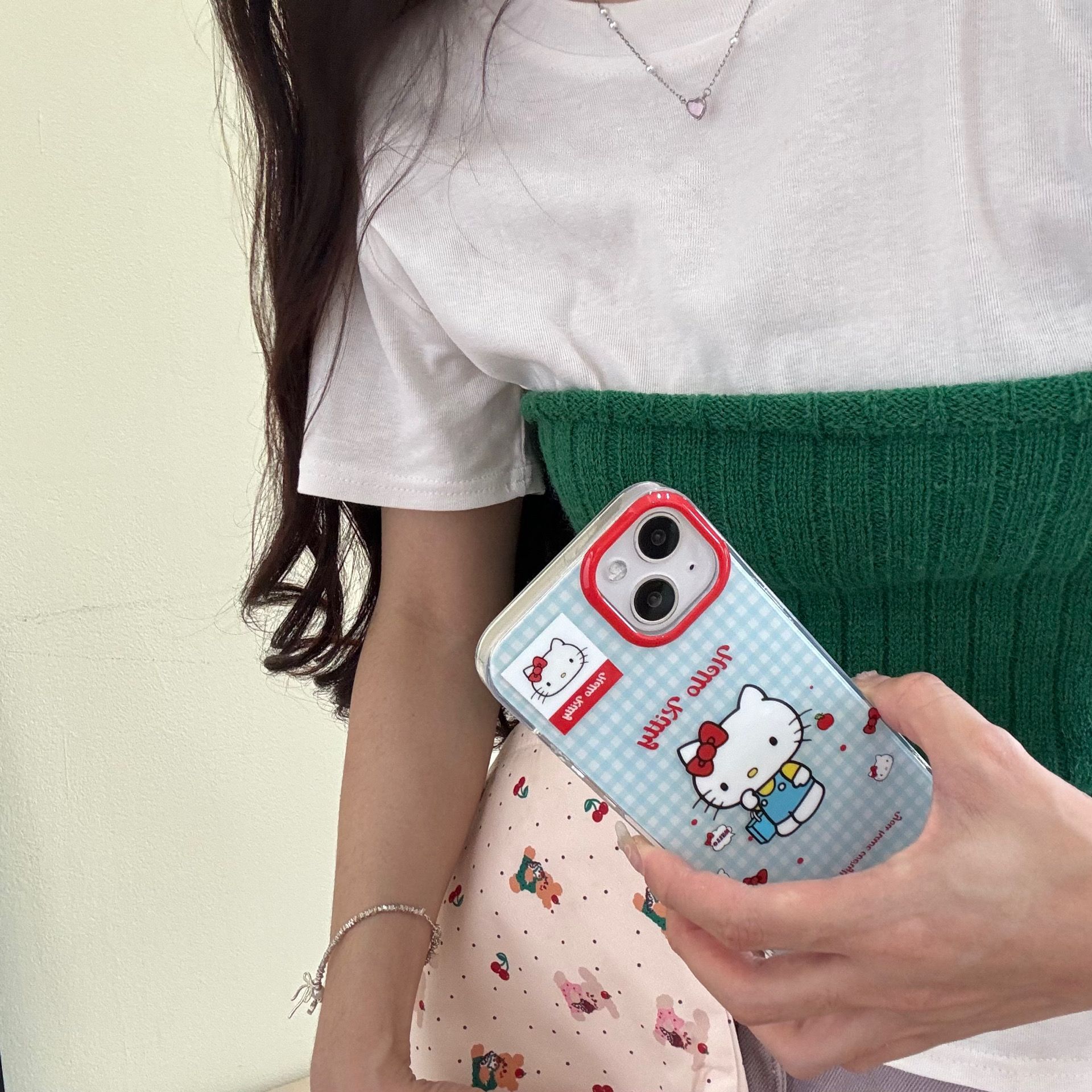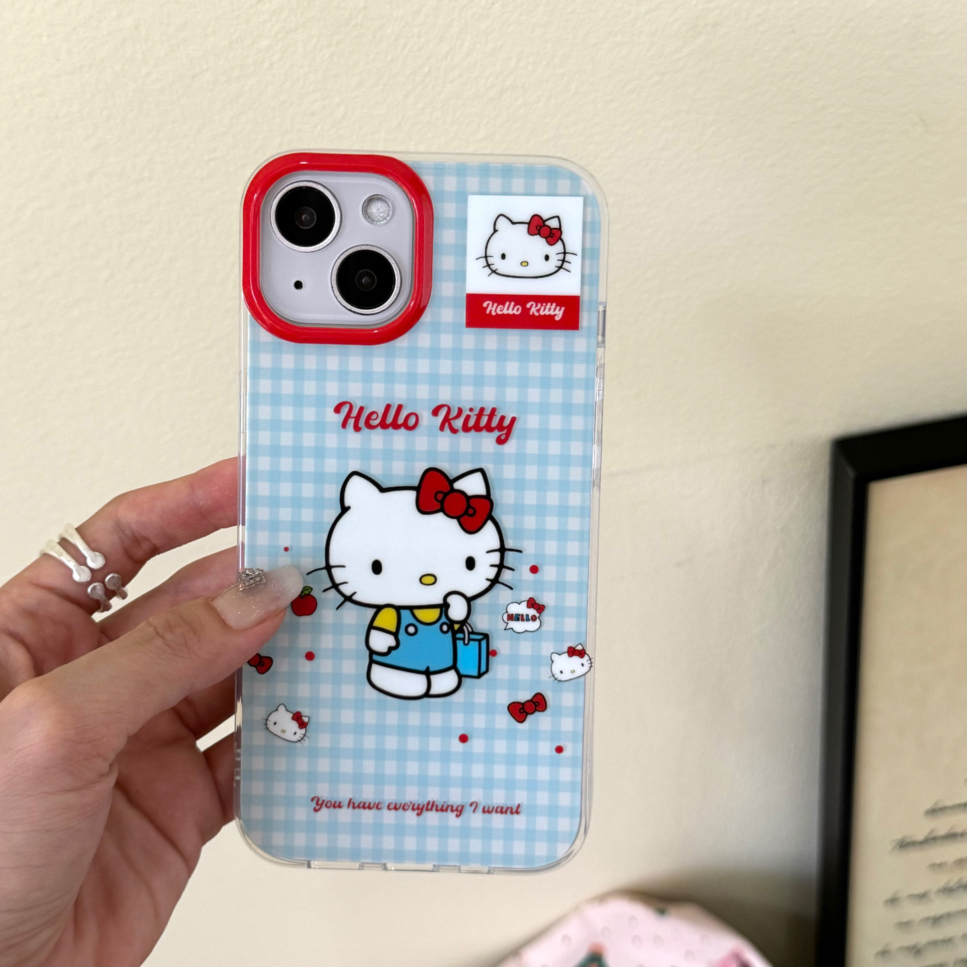 Capa azul de dibujos animados gato de compras IPhone15promax doble capa Apple 15pro/14 funda para teléfono móvil aplicable 13