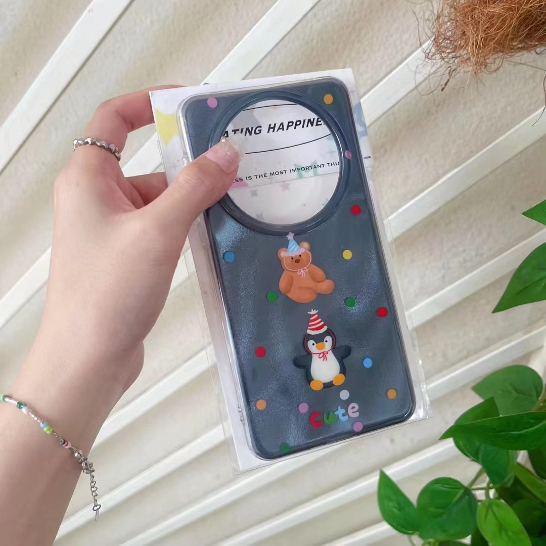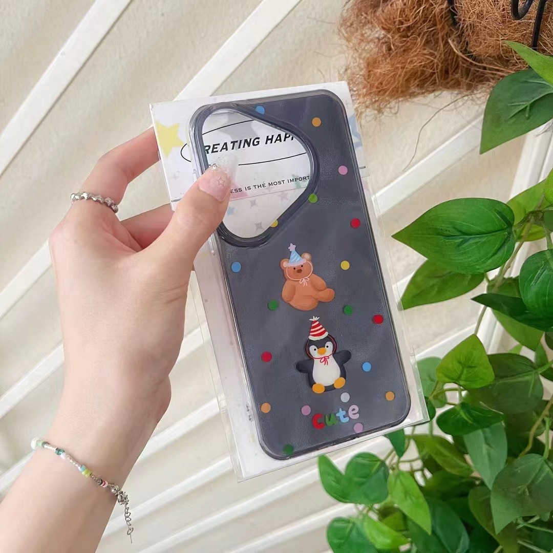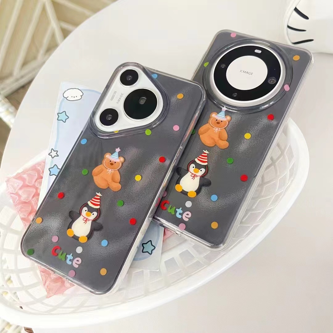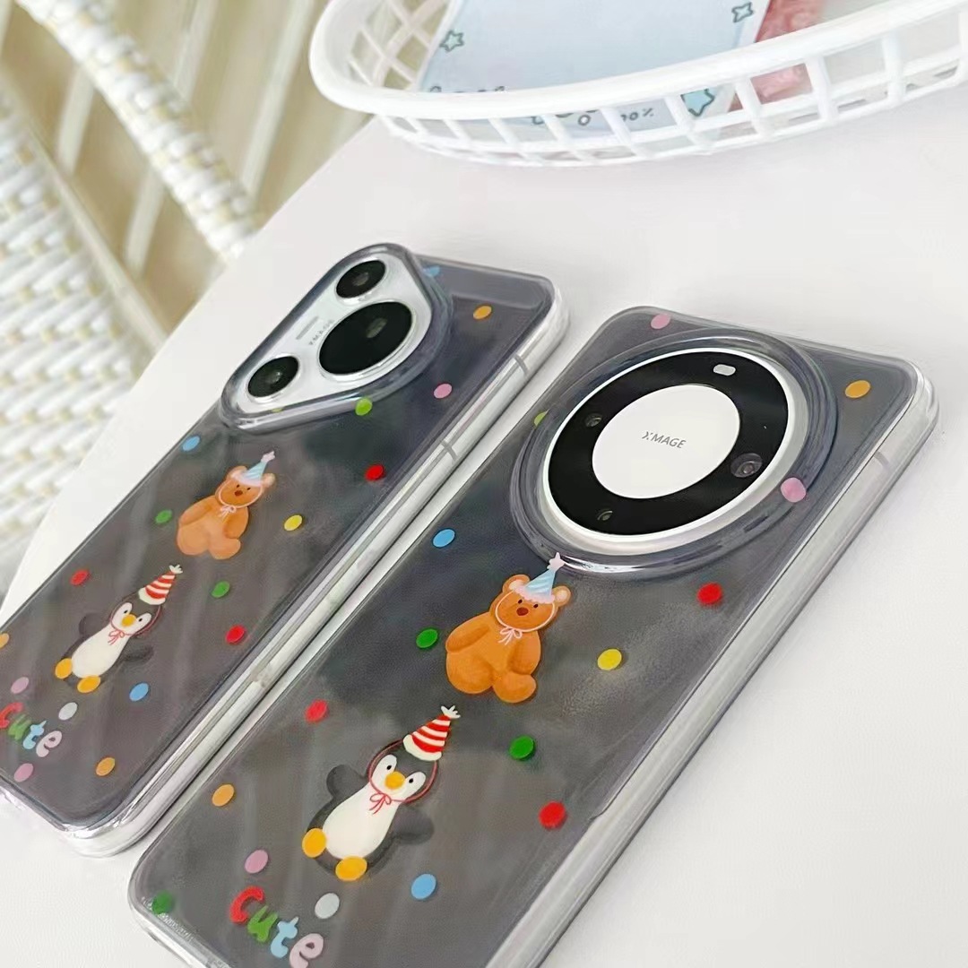 Estilo coreano ins Color Wave Point Penguin Bear para iPhone14 funda para teléfono móvil 15ProMax Apple 13 Huawei 70P
