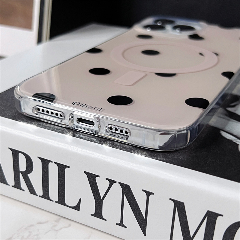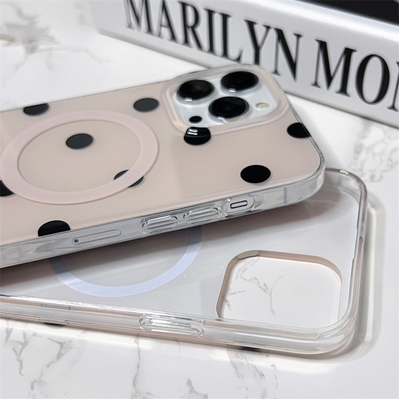 Sencillo fresco Polka Dot succión magnética IPhone15ProMax doble cara Apple 14/13 caja del teléfono para IP12P