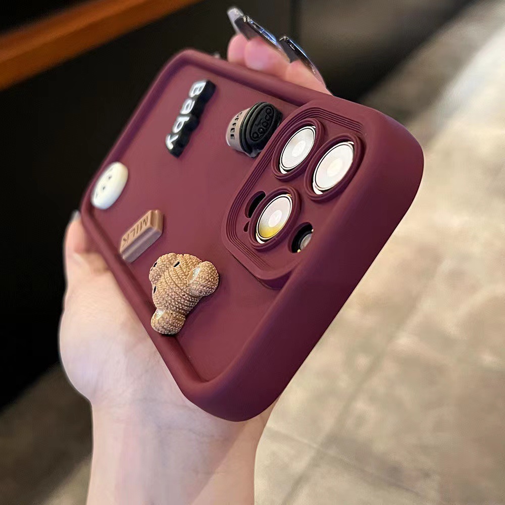 ProMax par Apple 14 caja del teléfono para IP13/12 Vino rojo café oso tridimensional IPhone15/15