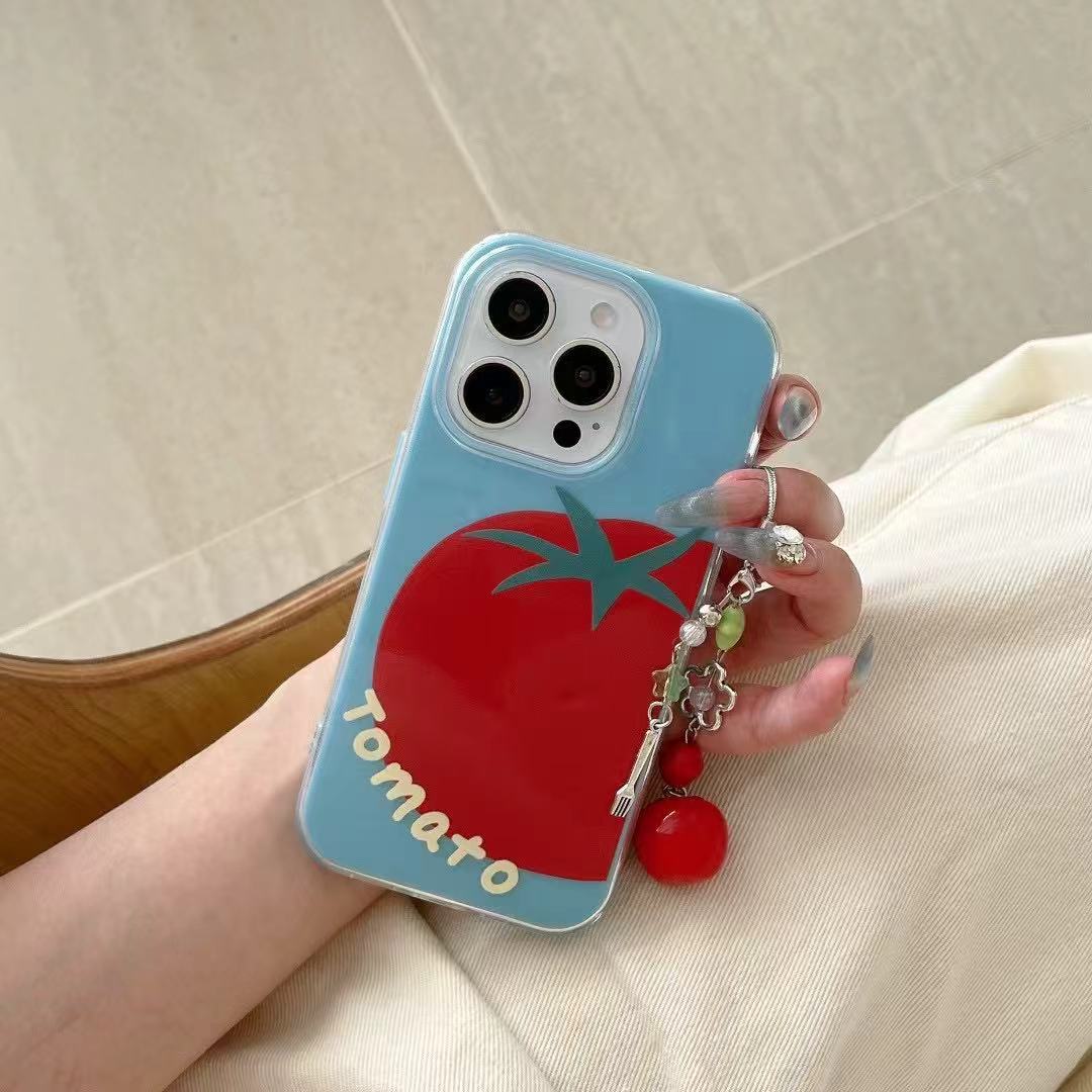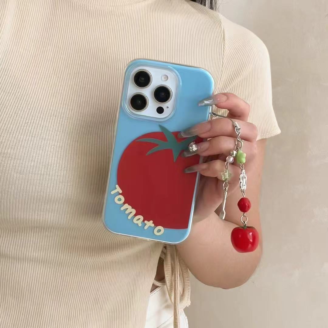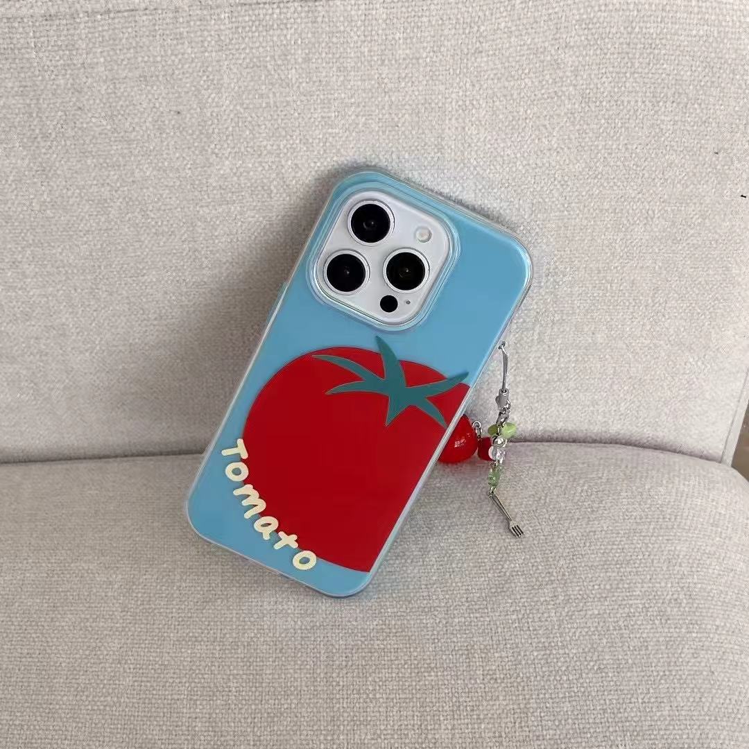 Tomate pequeño fresco de verano para Apple 16ProMax 2 en 1 iPhone 15 funda para teléfono móvil 14 hembra 16 colgante