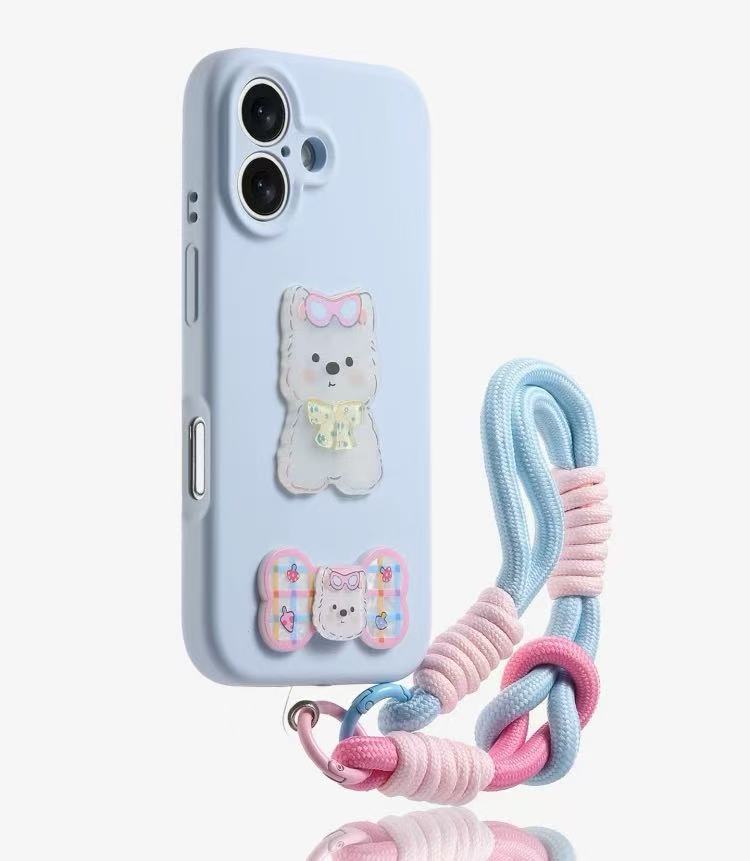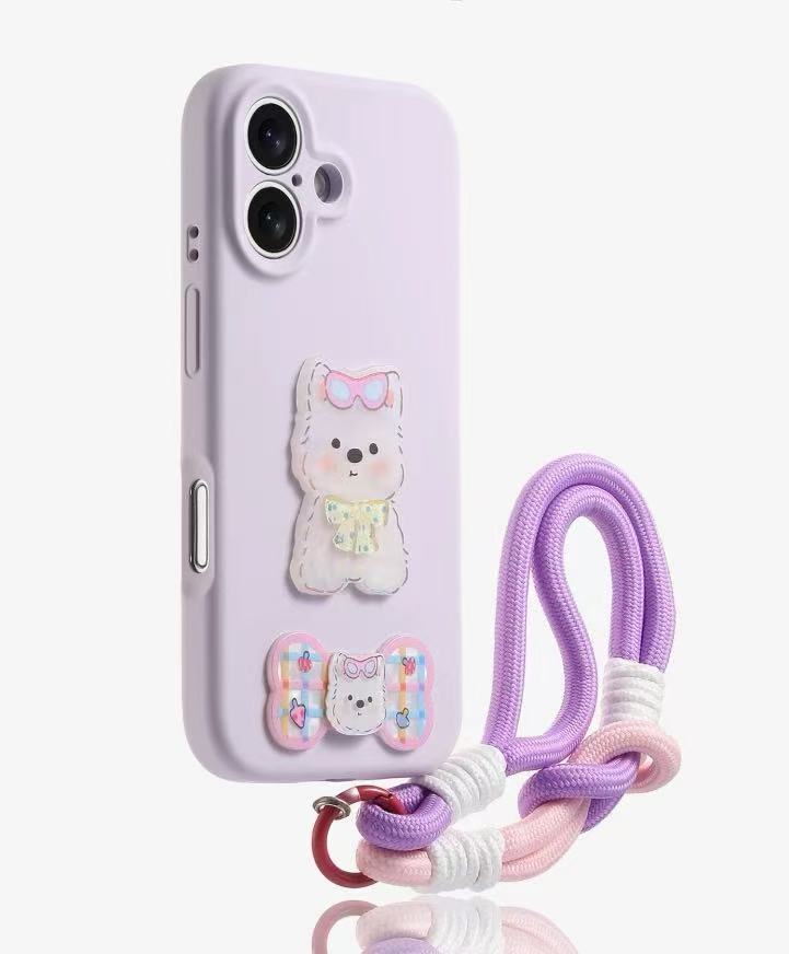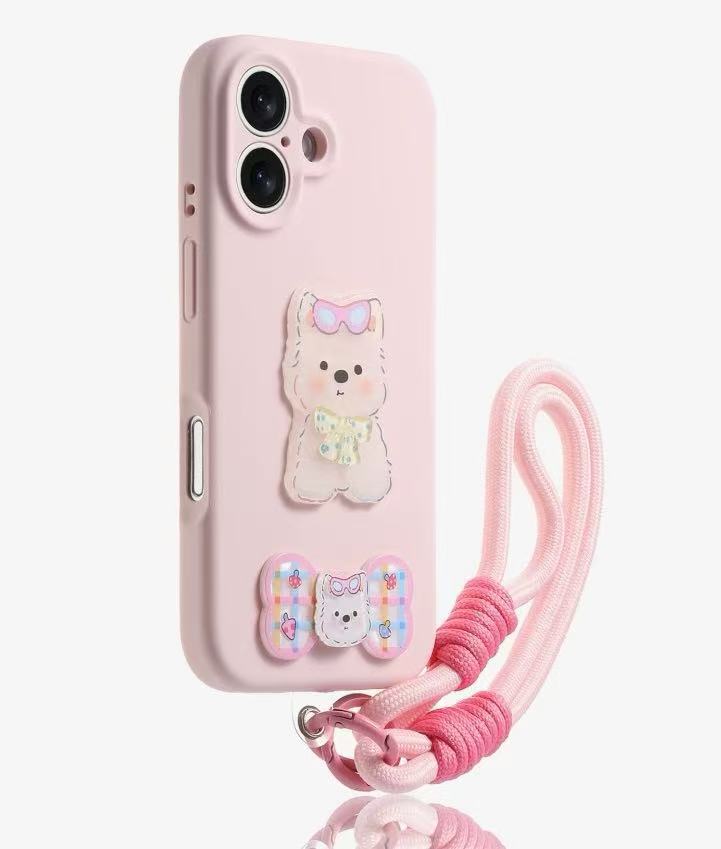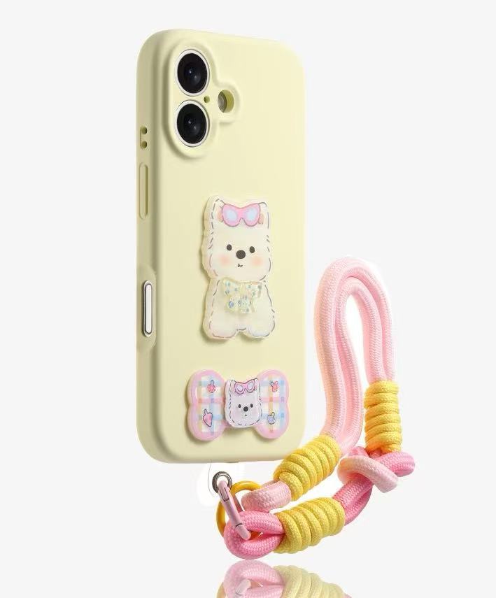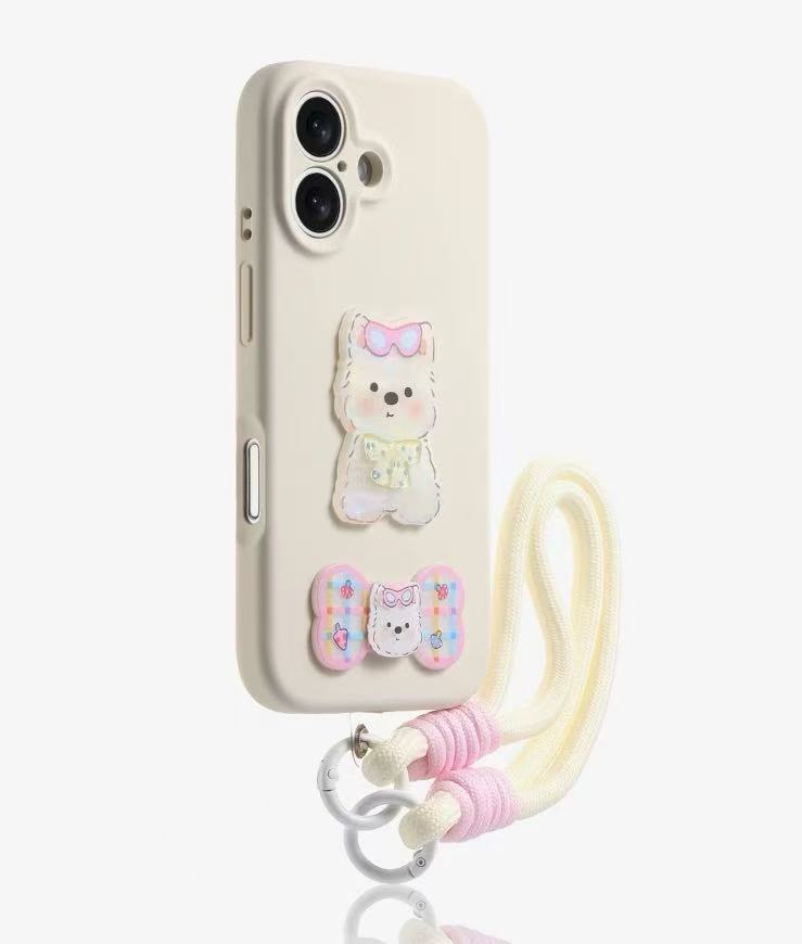 Parche de dibujos animados lindo cachorro para iPhone16ProMax simple color sólido 15 funda para teléfono 13 Apple 14 mujer