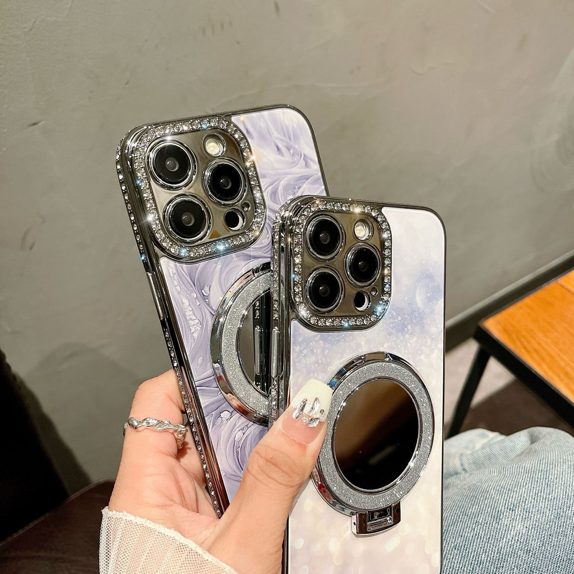 | Colores | Soporte de espejo de maquillaje-púrpura-diamante lateral drb,Soporte de espejo de maquillaje-color-ribete drb,Soporte de espejo de maquillaje-Blanco-Diamante drb,Soporte de espejo de maquillaje de pulsera irregular-púrpura-borde diamante drb |