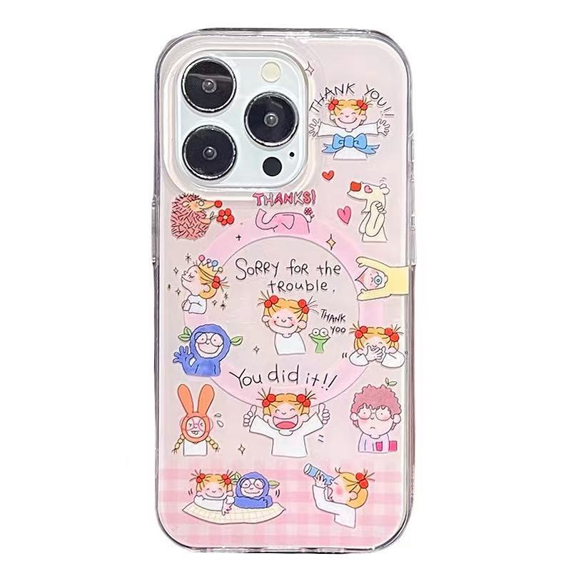 Divertida chica de dibujos animados para Apple 15/16promax nicho 13 femenino 14 nuevo soporte giratorio magnético 15p