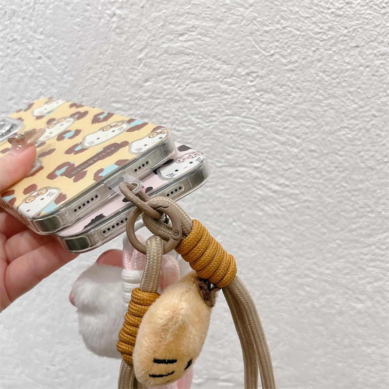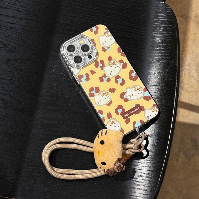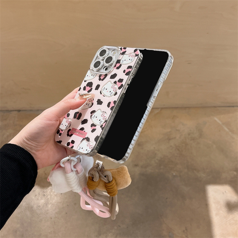 Chica con estampado de leopardo rosa kt para iphone16ProMax cordón 14 Apple 15P funda para teléfono móvil 13 pareja