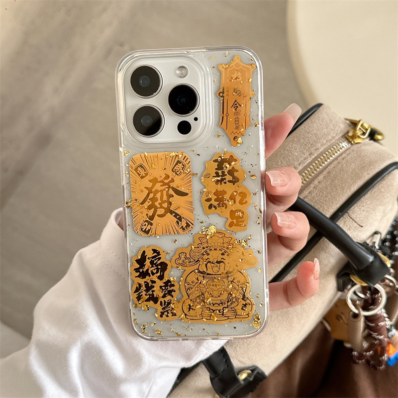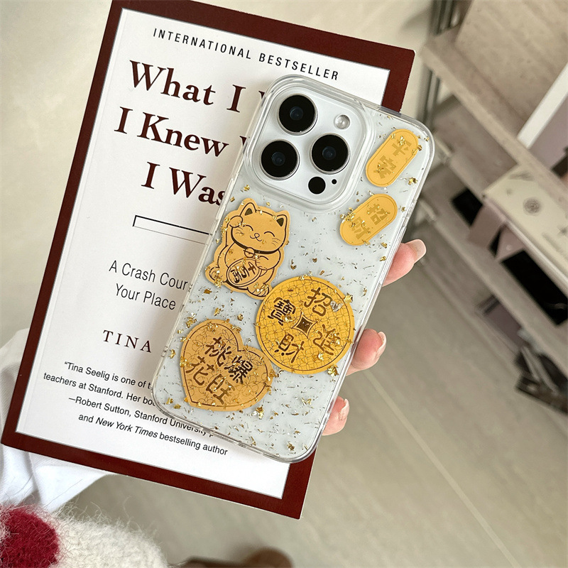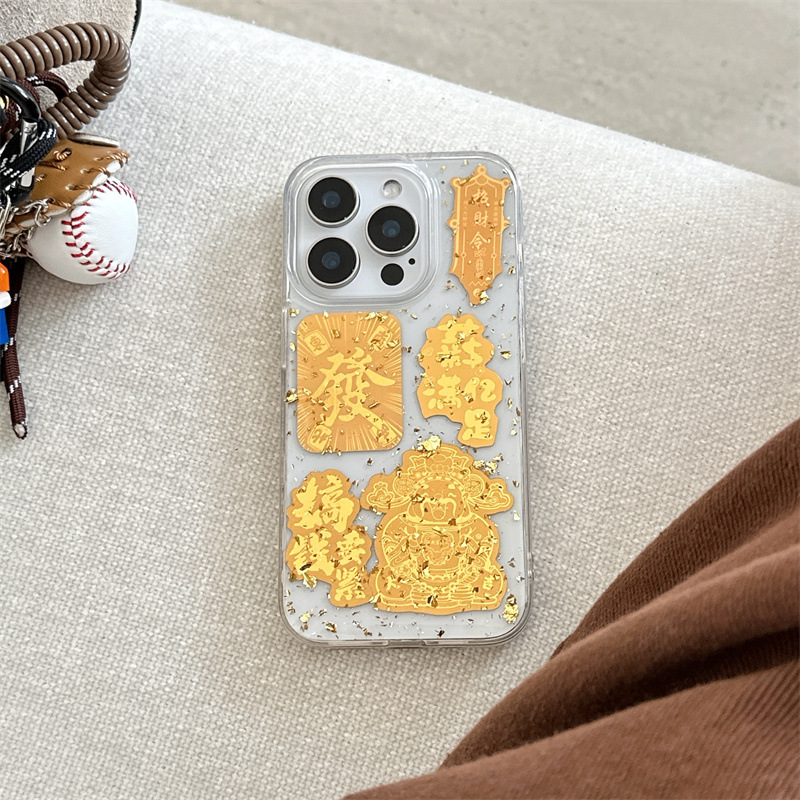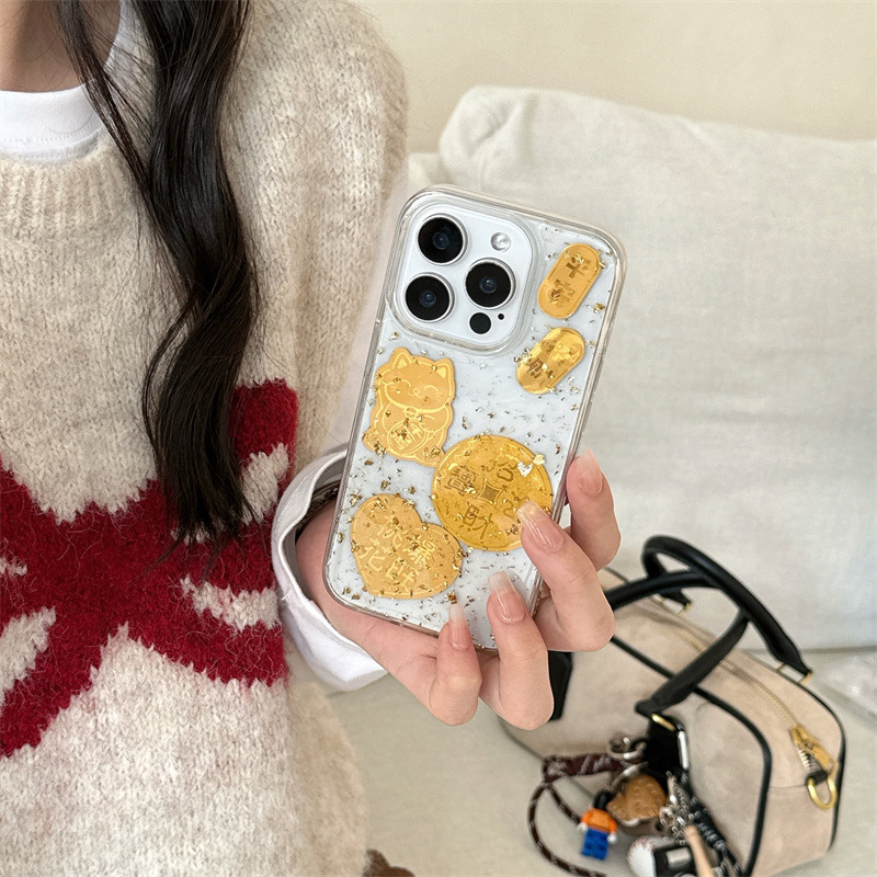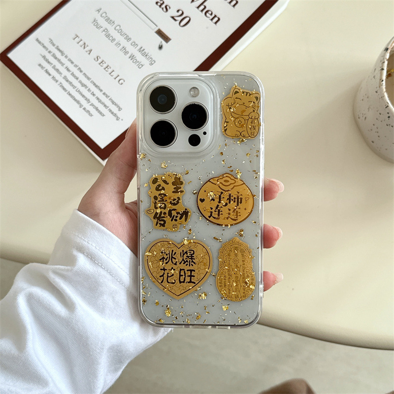 El epoxi transparente estilo ins Lucky Jinbao es adecuado para Apple 16proma festivo iPhone14/15 funda para teléfono móvil 13p
