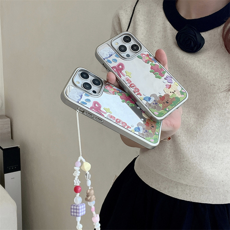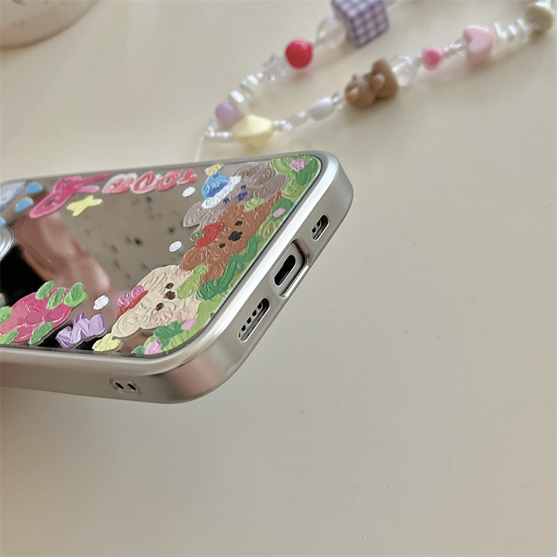 Girl ins espejo pintura al óleo oso para iPhone14 funda para teléfono móvil 15ProMax Apple 12/13 nuevo 15