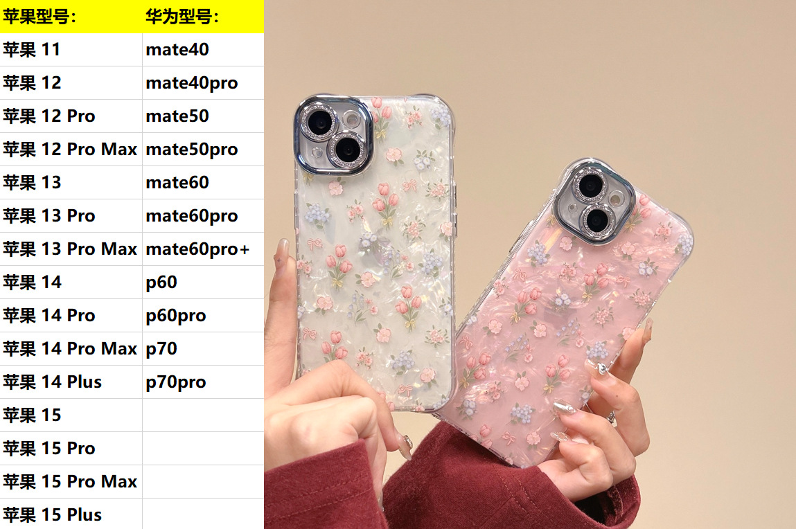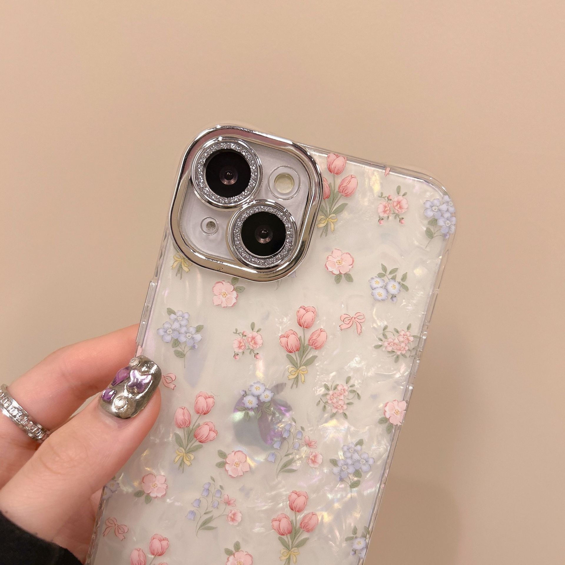 El patrón de concha de estilo ins está lleno de flores de pantalla para la película de lente 15ProMax iPhone13 Apple 14P funda para teléfono móvil 12
