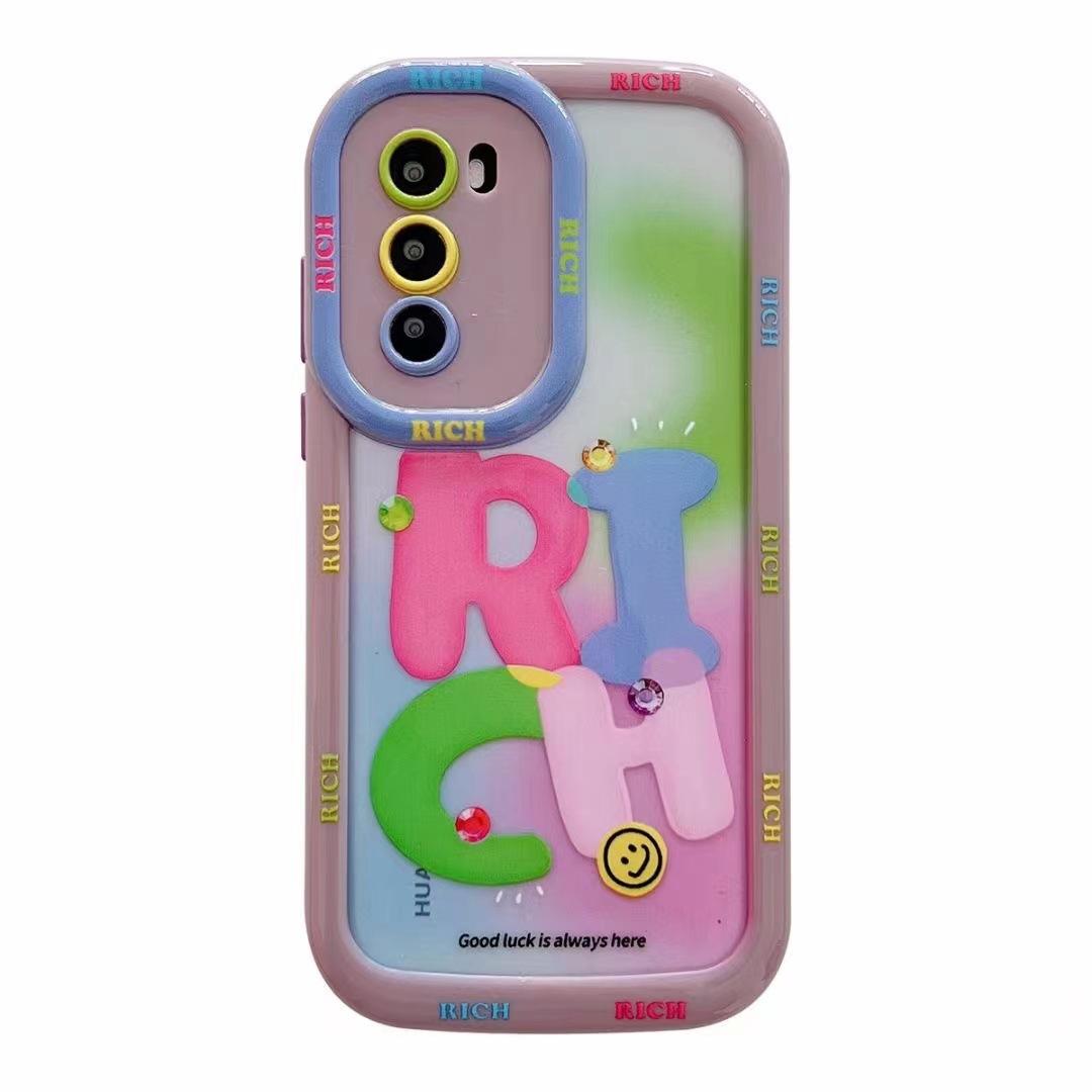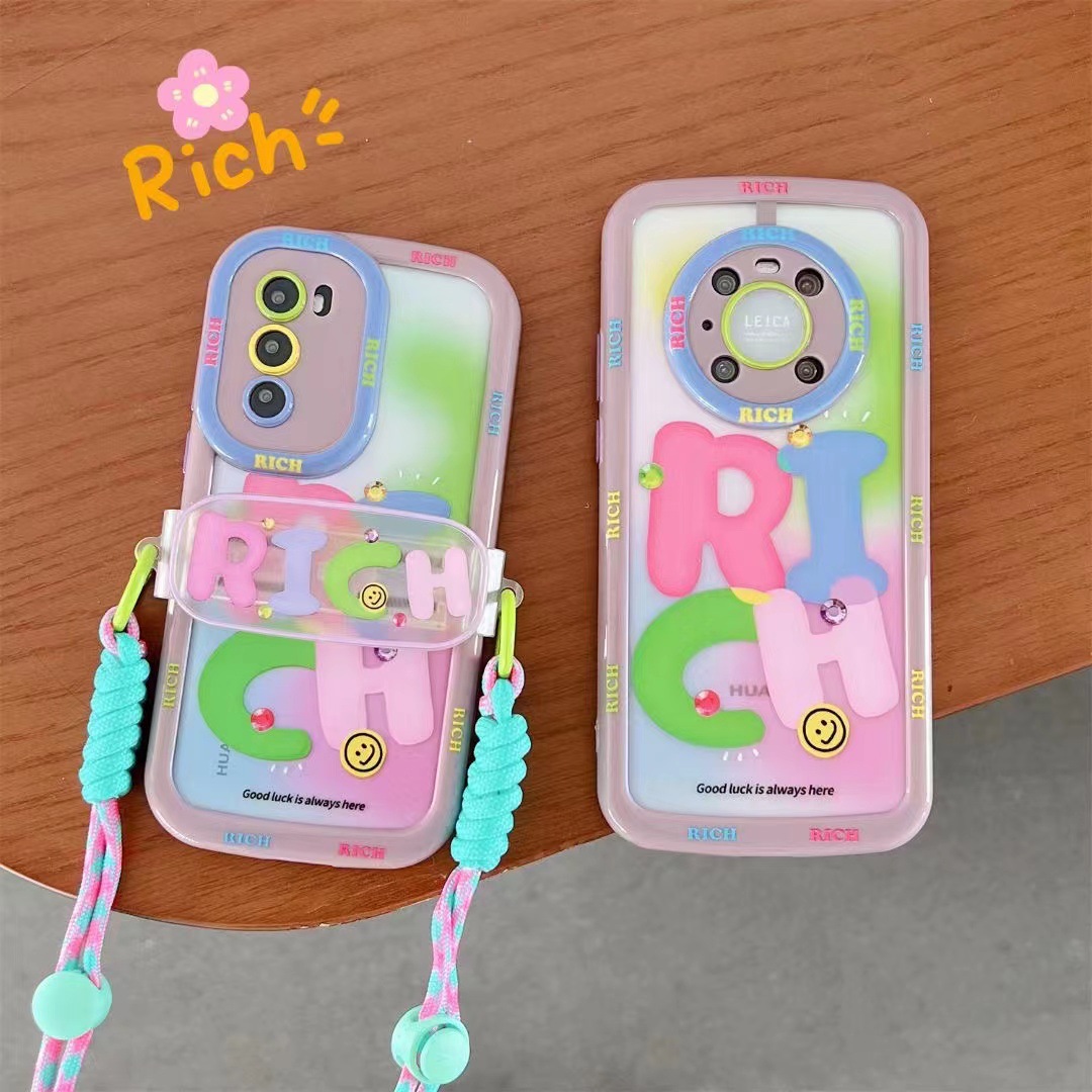 Blooming Rosa verde RICA carta de Apple 15ProMax clip trasero cordón 13/14 caja del teléfono para Huawei M50 suave