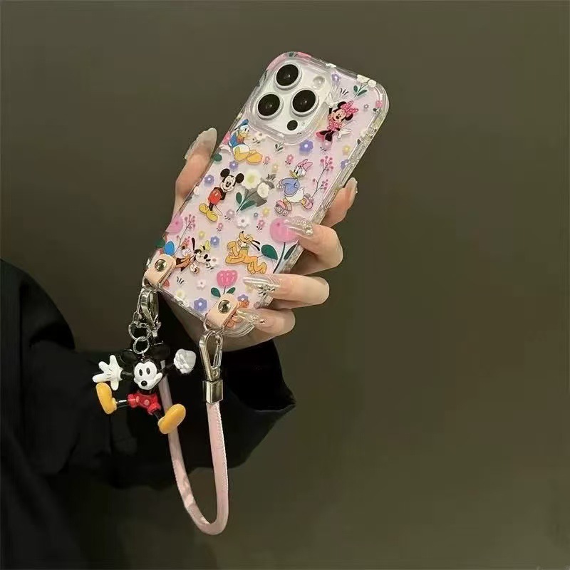 Lindo Mickey floral de dibujos animados para iPhone15 Apple 16ProMax cuero diagonal 14 funda para teléfono 13 hembra 16