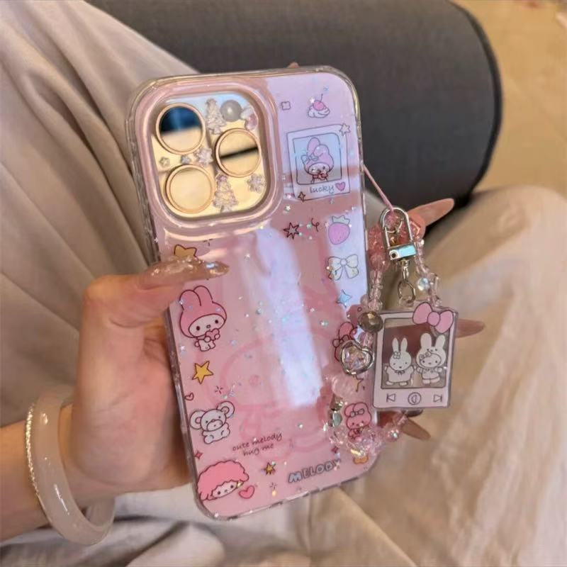 Niña ins brillo conejo para iphone16/15ProMax cadena 14 funda para teléfono móvil Apple 13 nuevo 16