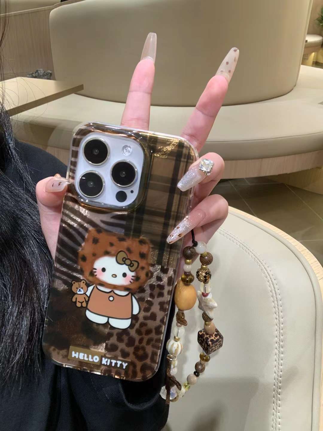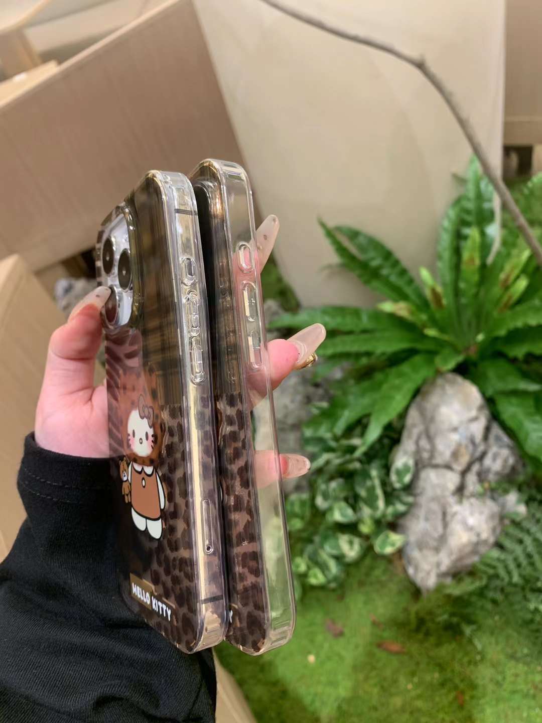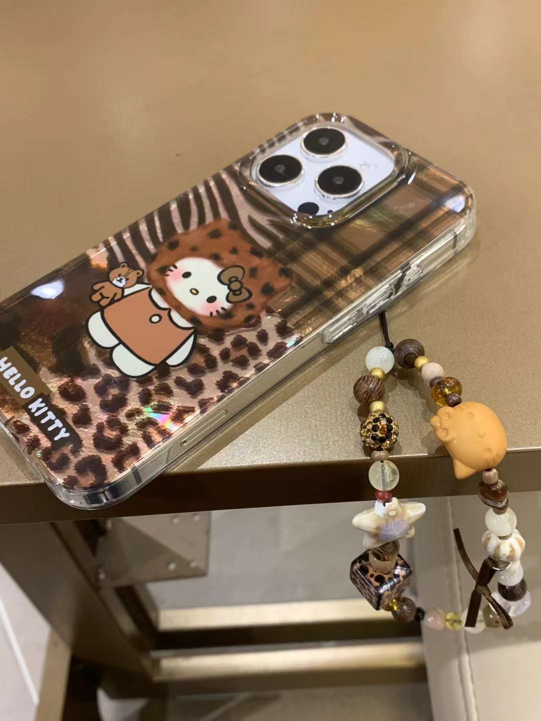 Otoño e invierno nuevo estilo estampado de leopardo costura kt para iPhone15 funda para teléfono móvil 16ProMax Apple 14 chica 13 cadena