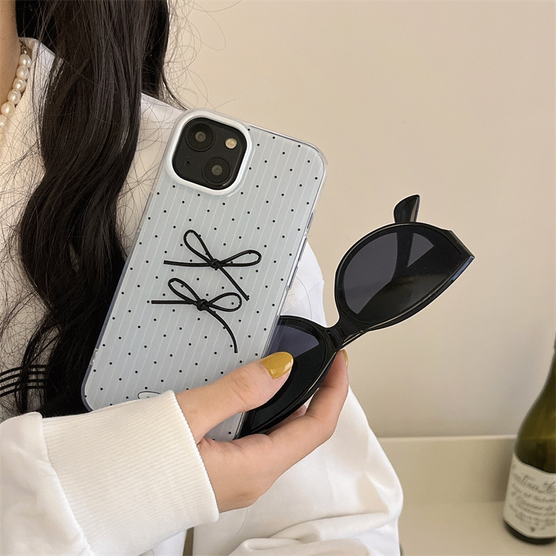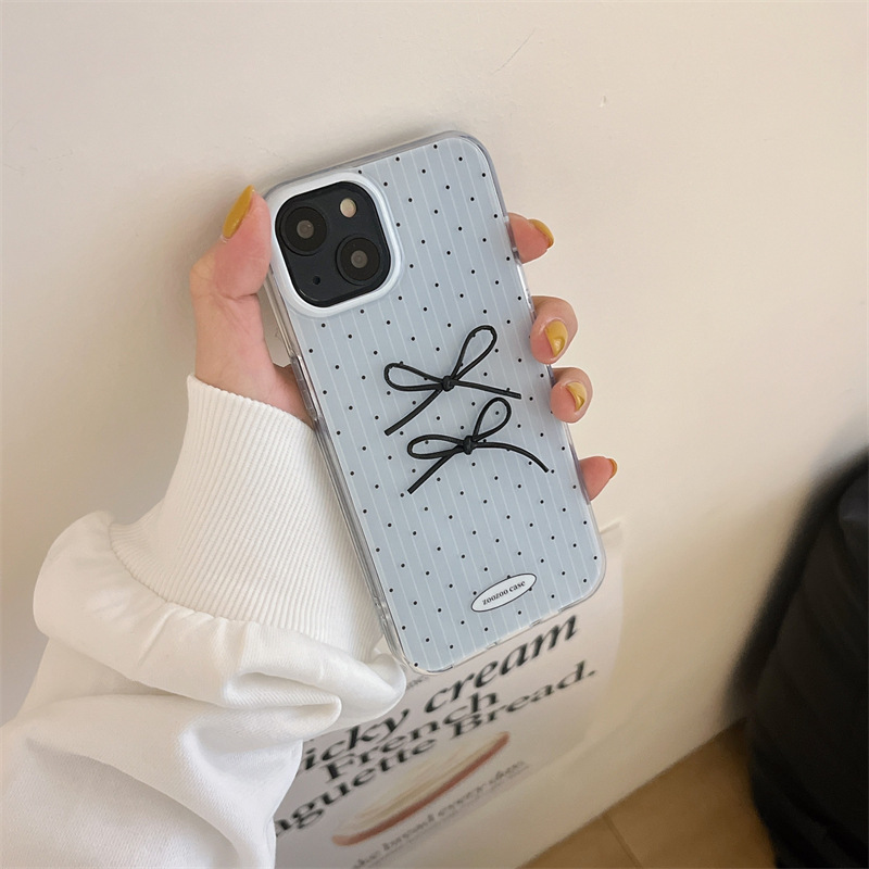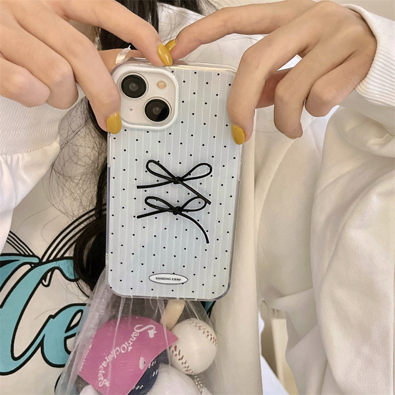 Lazo de lunares a rayas azul coreano IPhone15promax brillante 14pro funda para teléfono móvil uso 13/15
