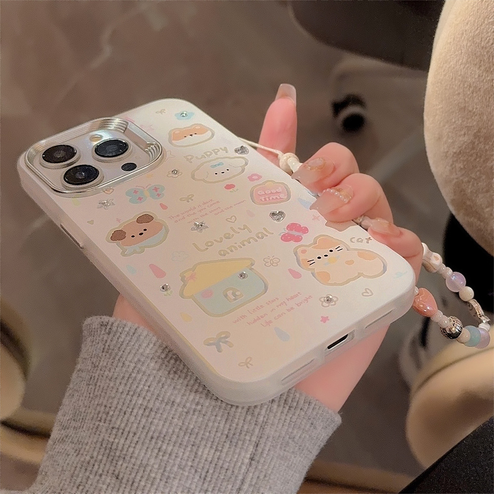 Cachorro de dibujos animados gatito familia para iPhone14 funda para teléfono móvil 15ProMax Apple 13 hembra 12 cadena 14PM