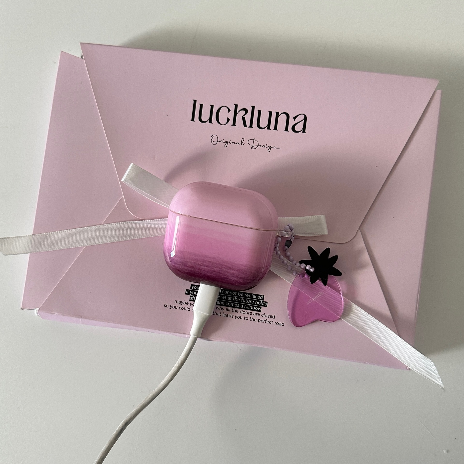 Simple nicho difuminado amor adecuado para la funda para auriculares AirpodsPro2 1/2 generación púrpura nuevo 3/4 generación pareja Pro