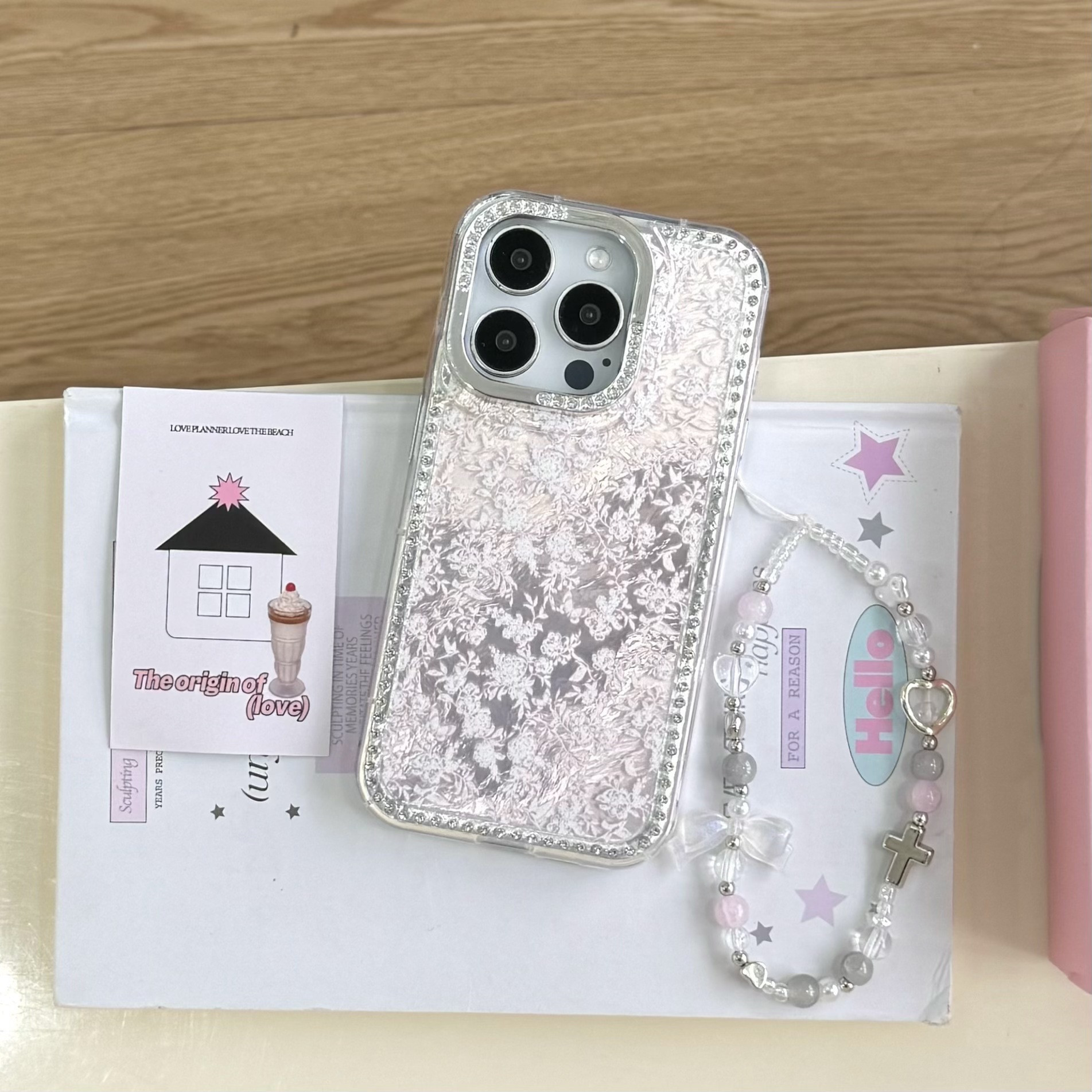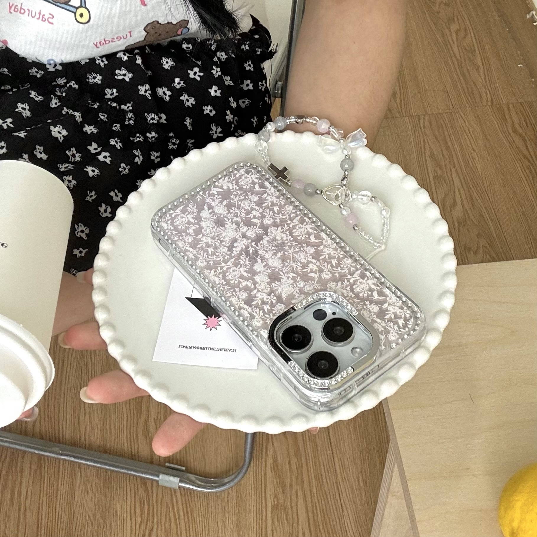 Girl ins base pequeña floral para iPhone16ProMax taladro lateral 14 Apple 15Pro cadena 13 nuevo 16