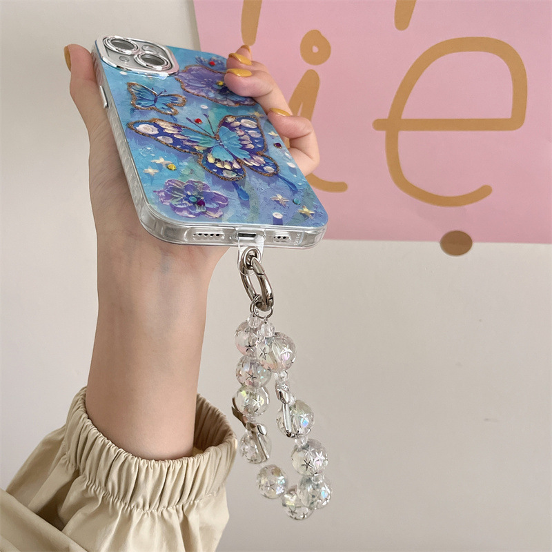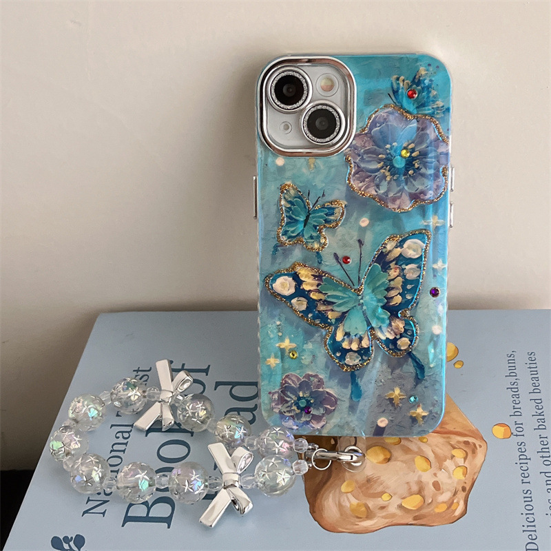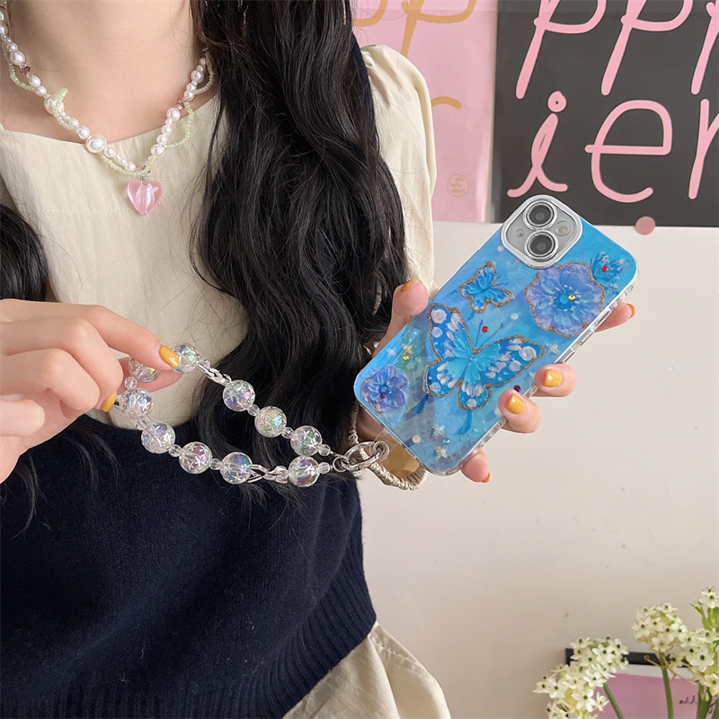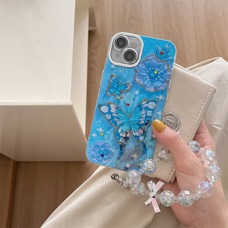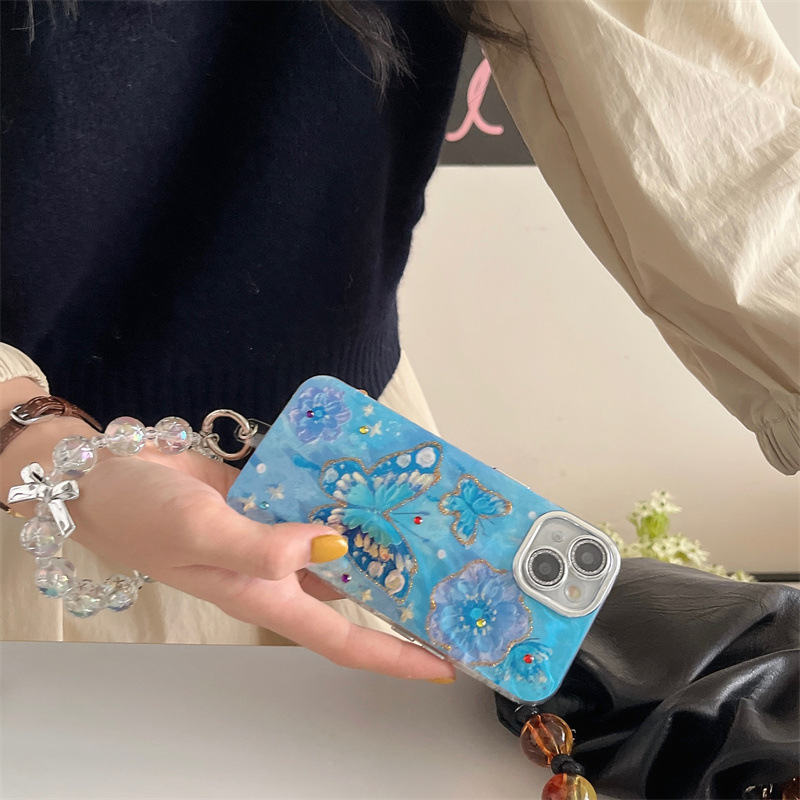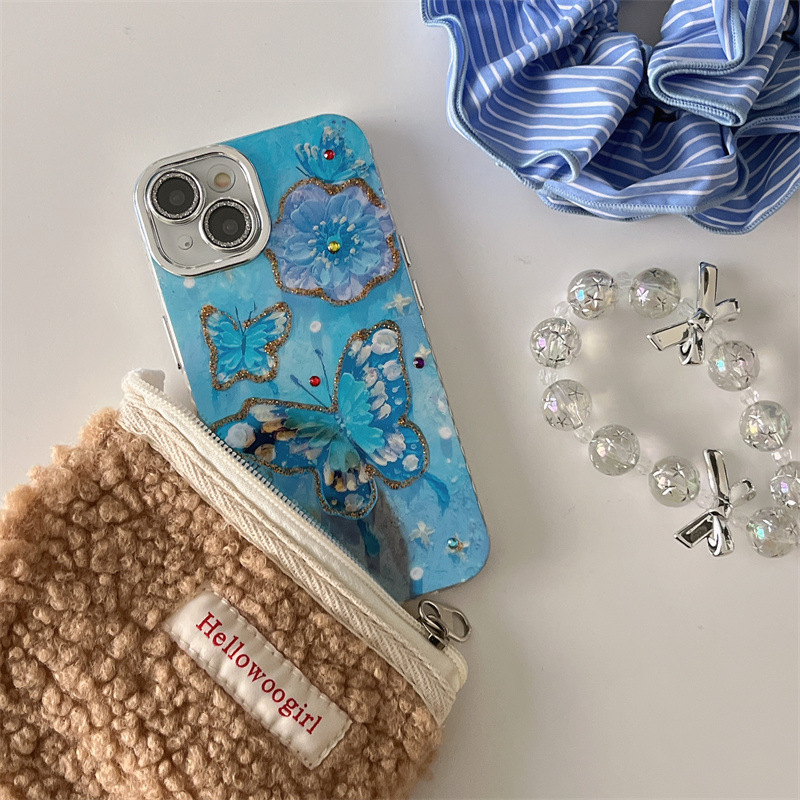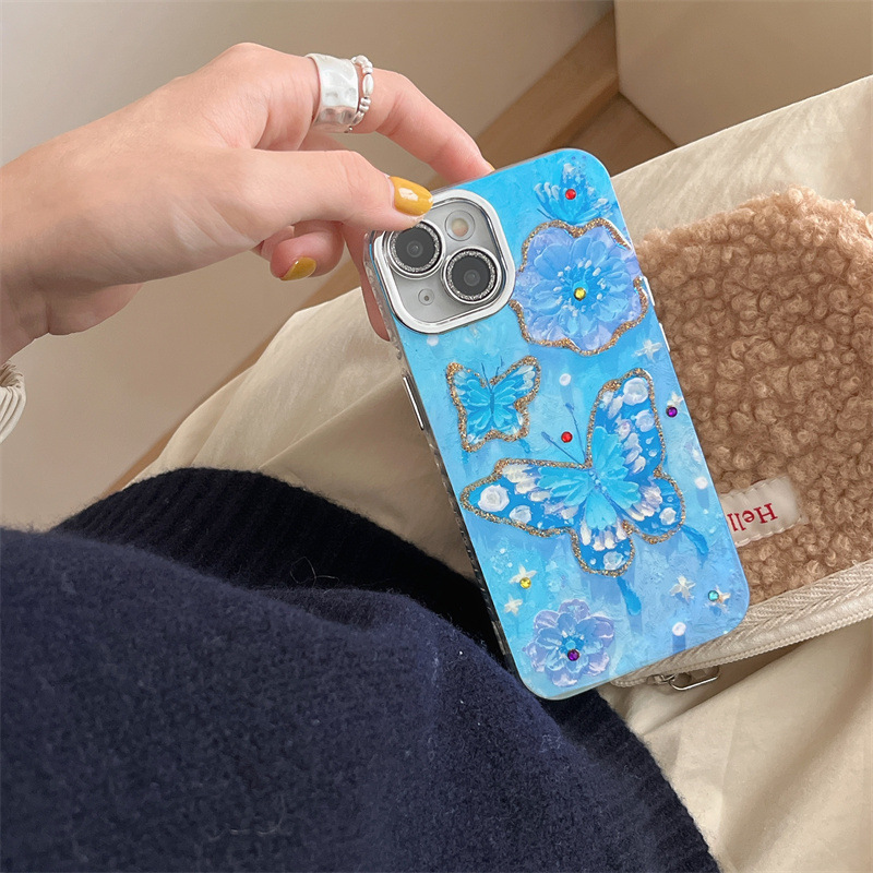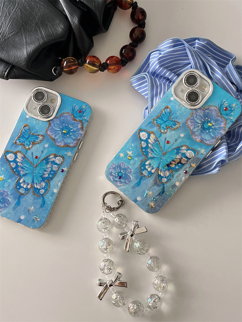Verano Blu-ray flor mariposa para iPhone 15/16ProMax funda para teléfono móvil Apple 14/13 hembra 16 agujeros finos