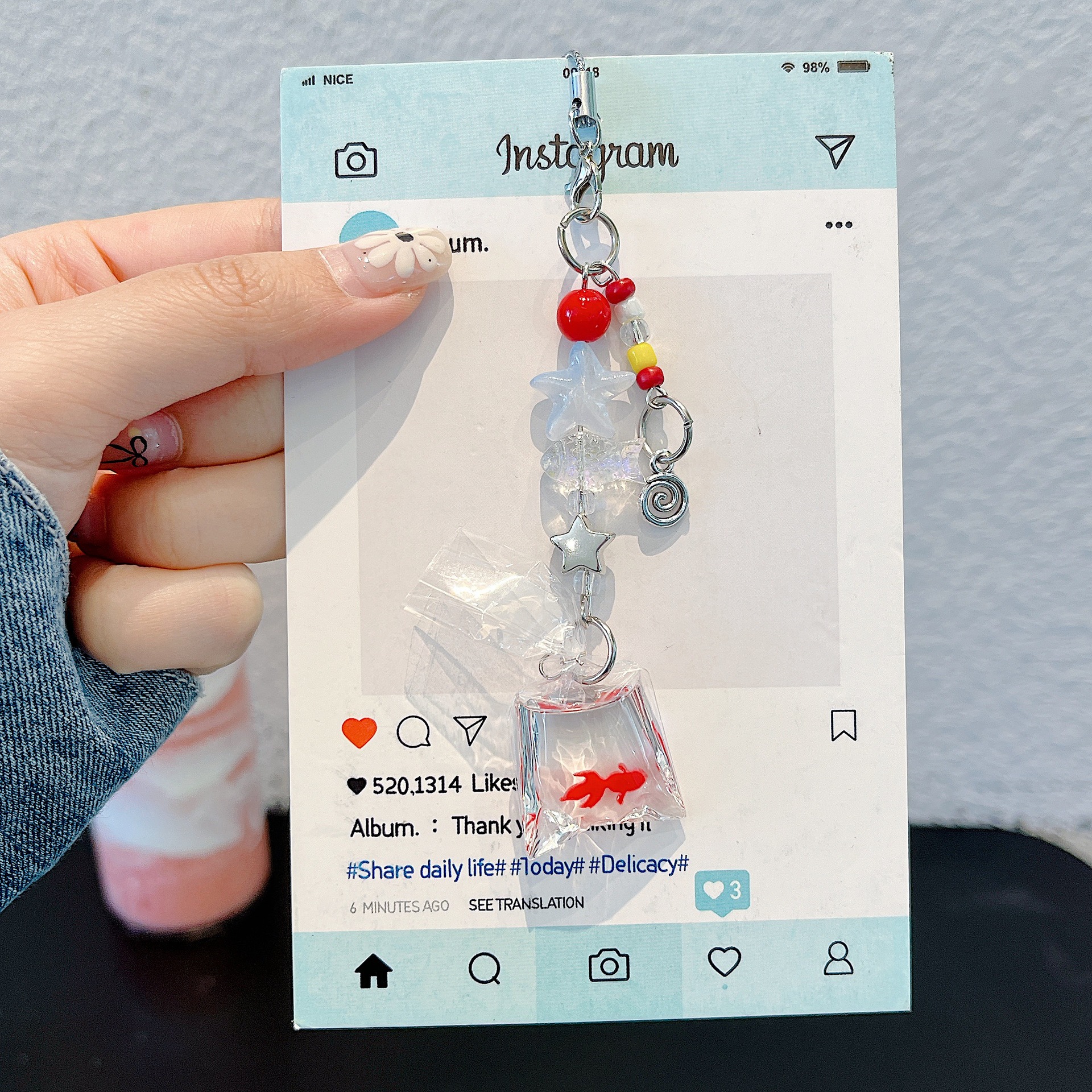 | Colores | Capa única-fondo azul suerte koi pez dorado CPH,Colgante sobre fondo azul Lucky Koi Goldfish CPH |