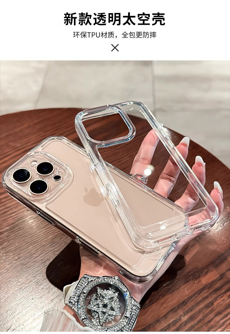 Estuche espacial simple y transparente de gran agujero para iPhone 15/16ProMax Estuche para teléfono móvil Mate60P para hombres y mujeres 70 duro