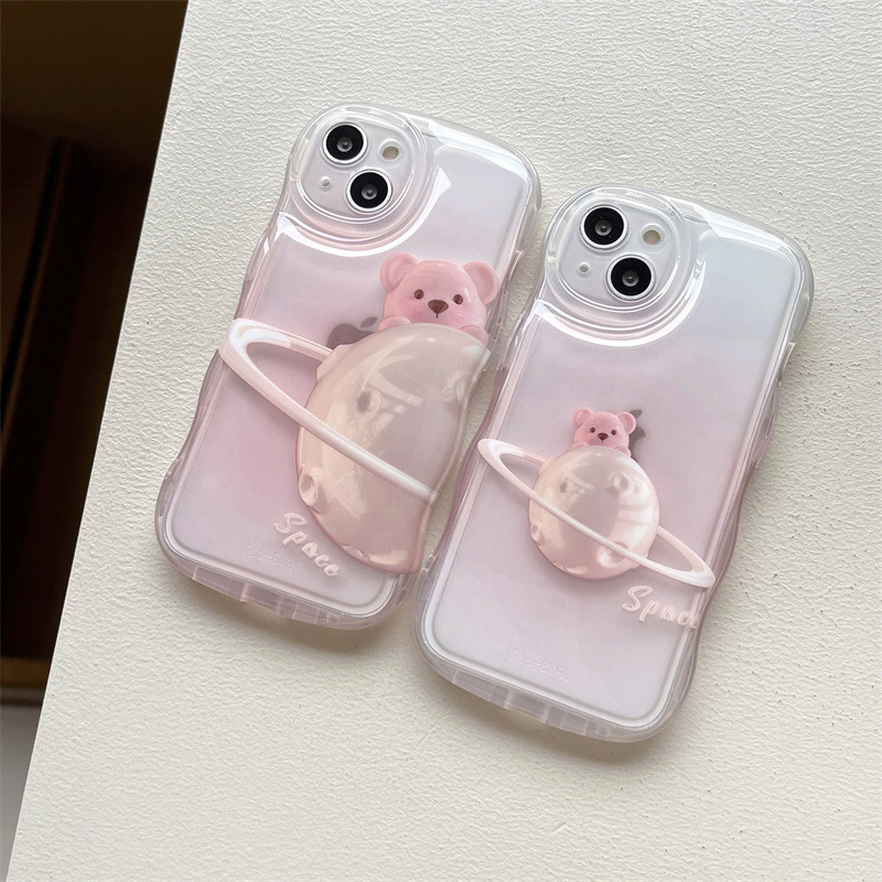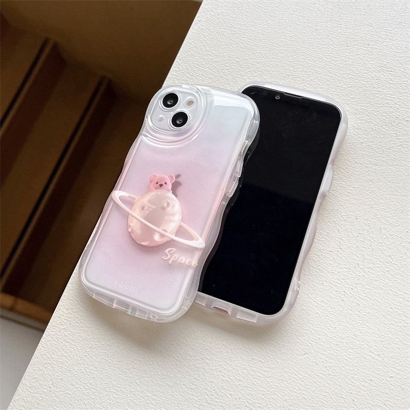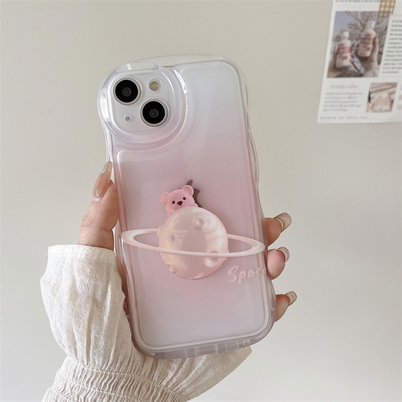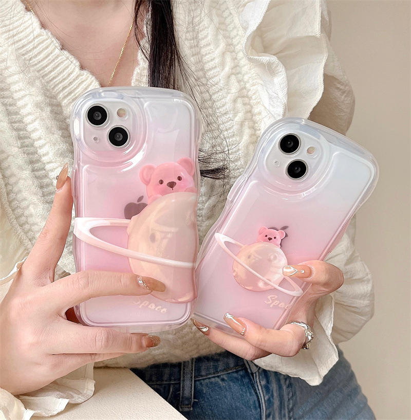Girl ins rosa difuminado planeta oso para iPhone14 funda para teléfono móvil 15ProMax Apple 12/1 suave