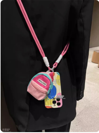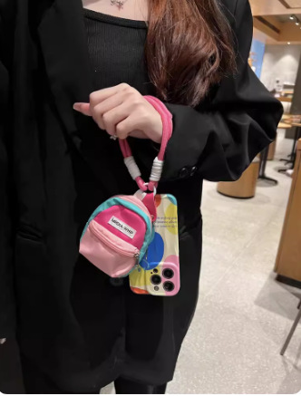 Ins geométrico sonriente patrón ondulado adecuado para iPhone13 cuerda diagonal 15ProMax Apple 14P femenino 12 mochila escolar pequeña