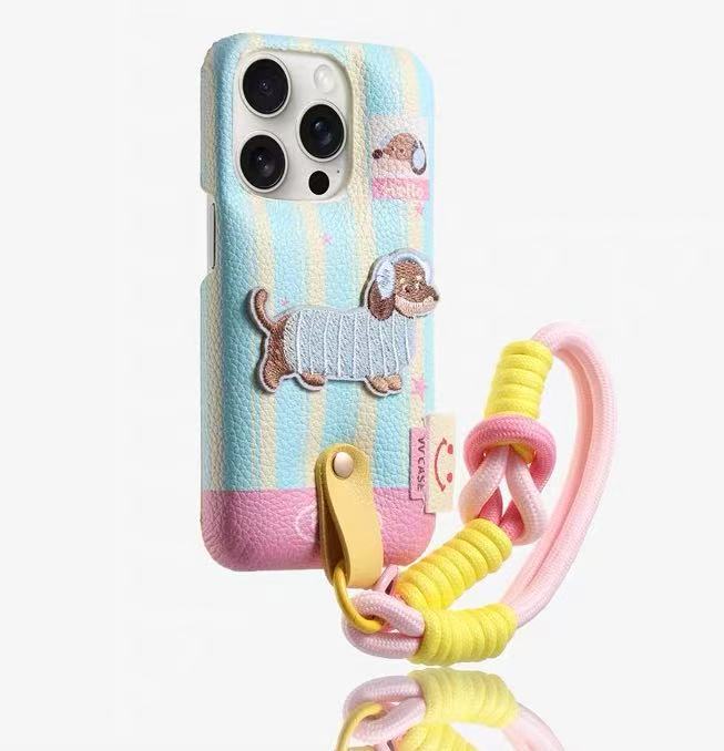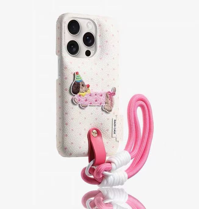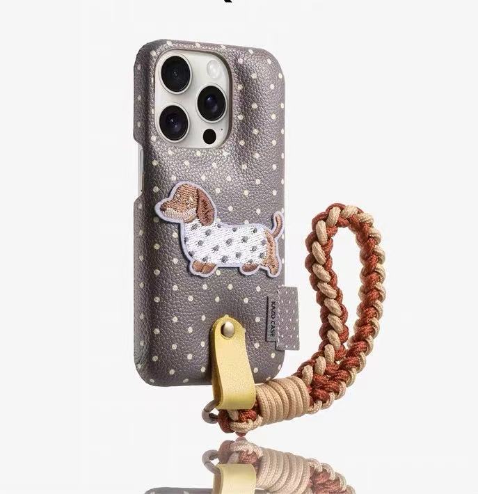 Bordado de dibujos animados cachorro color sólido lunares para 16ProMax bolsa de batería 15 funda para teléfono 13 Apple 14 pareja 15PM