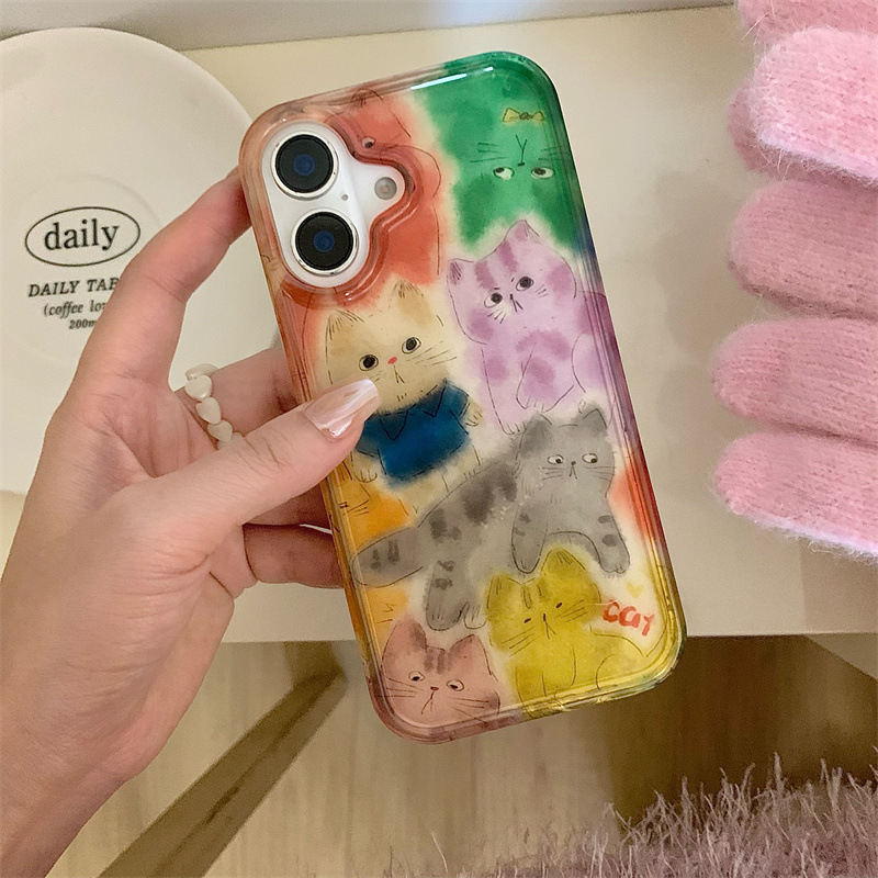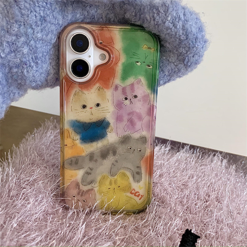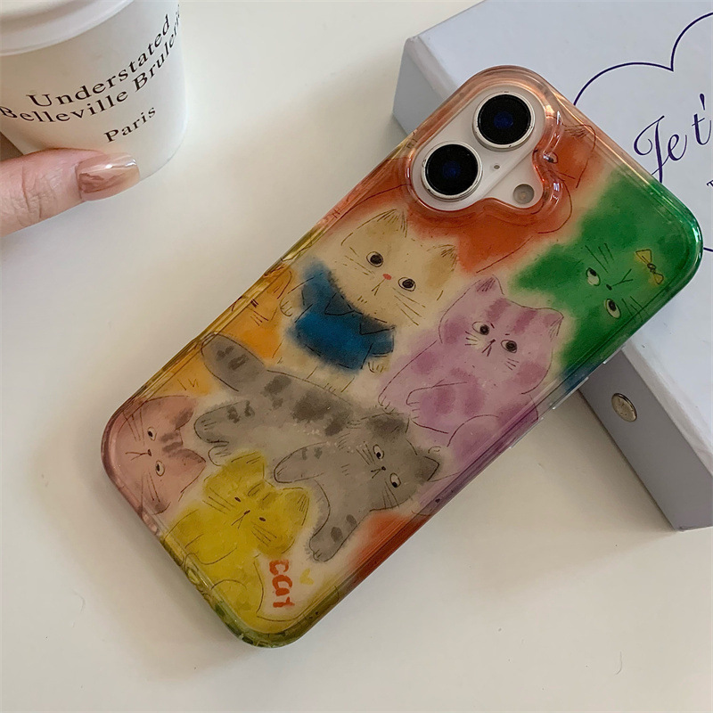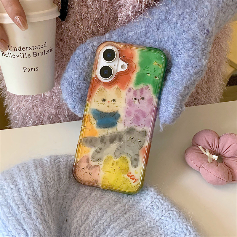 Divertido gato de graffiti de color para iphone16ProMax Apple 14 funda para teléfono móvil 15 femenino 13 nuevo 15PM