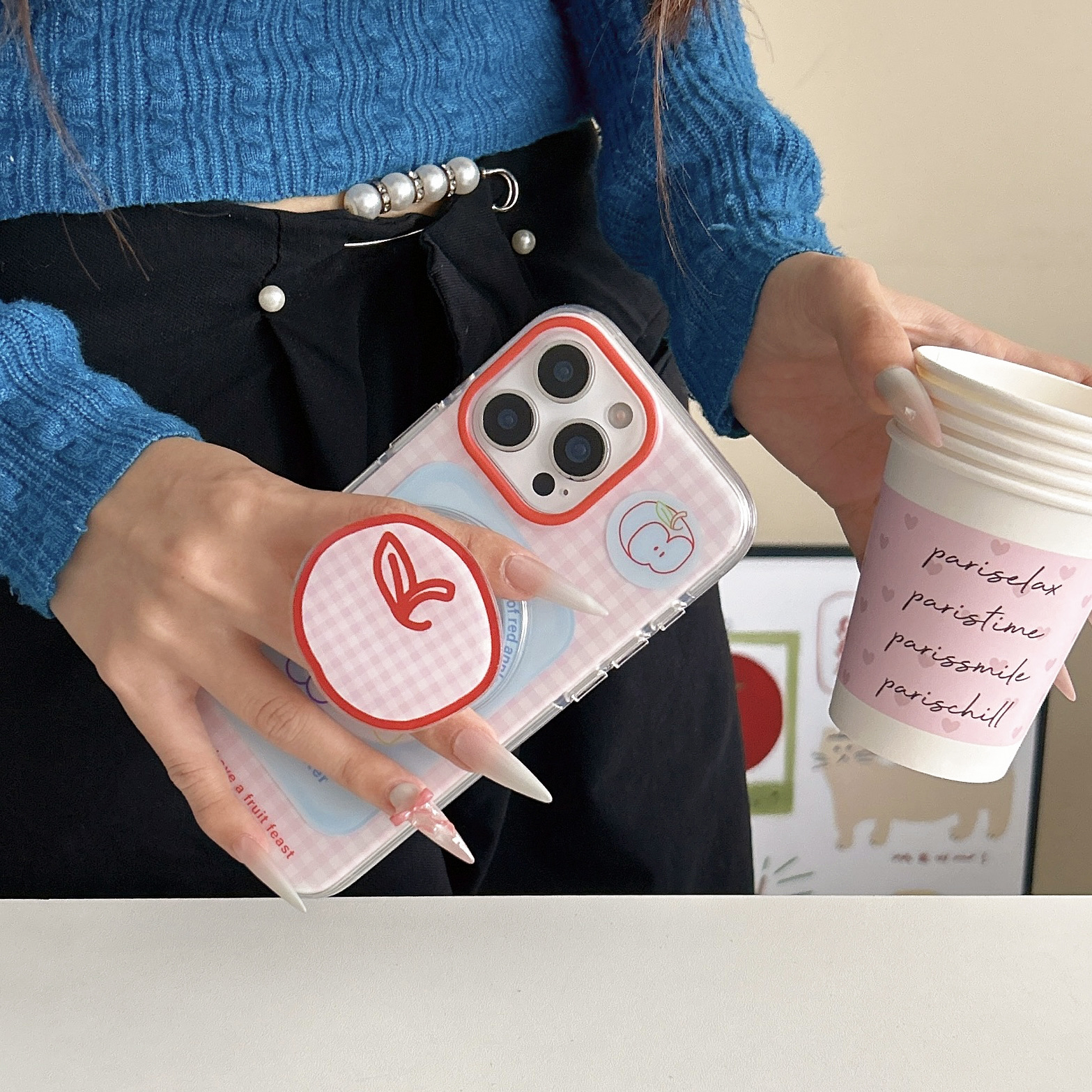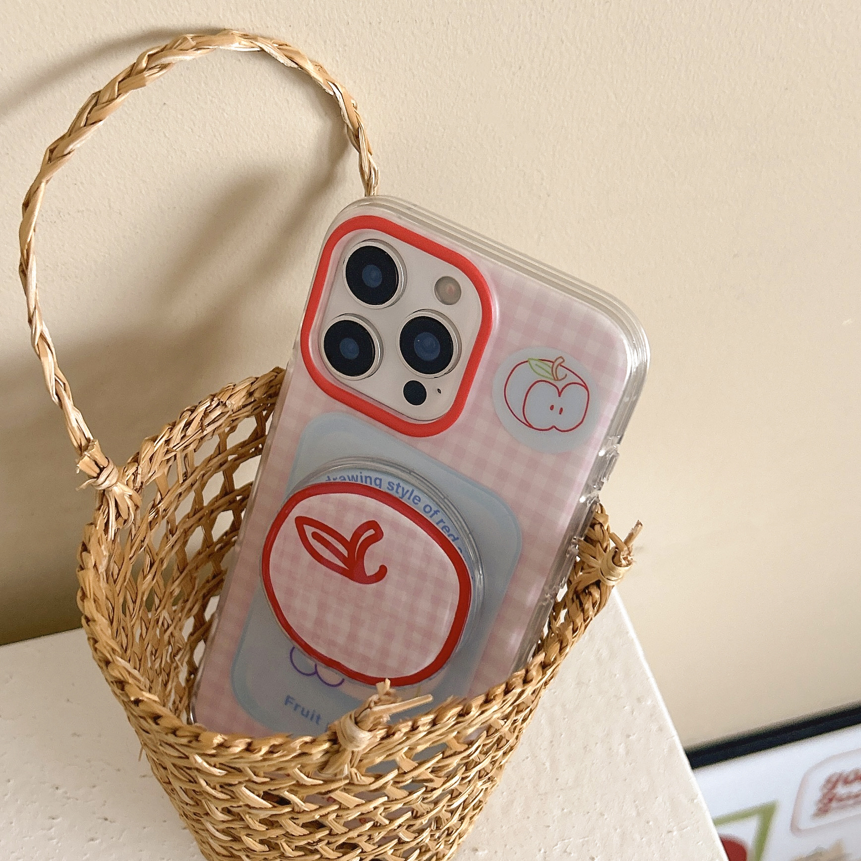Soporte magnético de fruta a cuadros coreano para Apple 15Pro/16Pro funda para teléfono móvil 14 femenino 13 nuevo 16PM