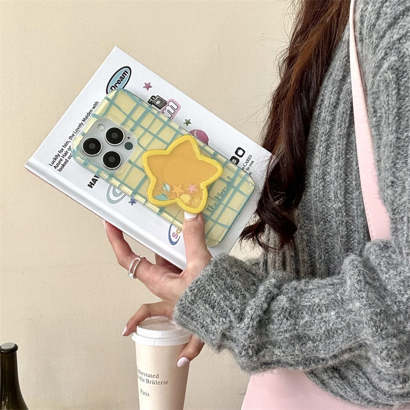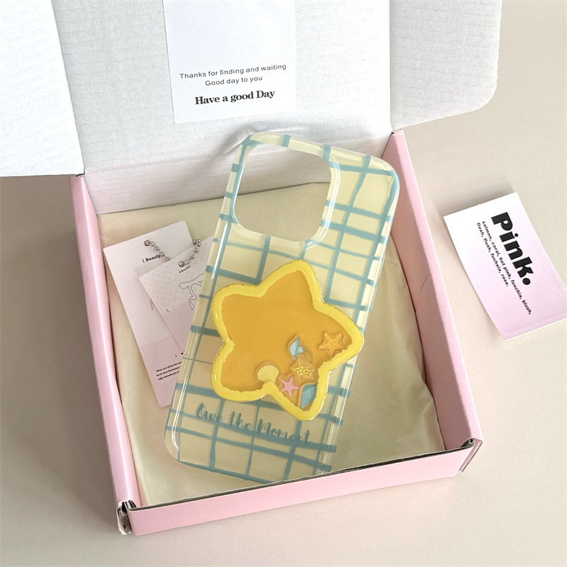 Línea de estrellas a cuadros para Apple 16proMax funda para teléfono móvil 15Pro fresco 14/13 creativo 15PM femenino