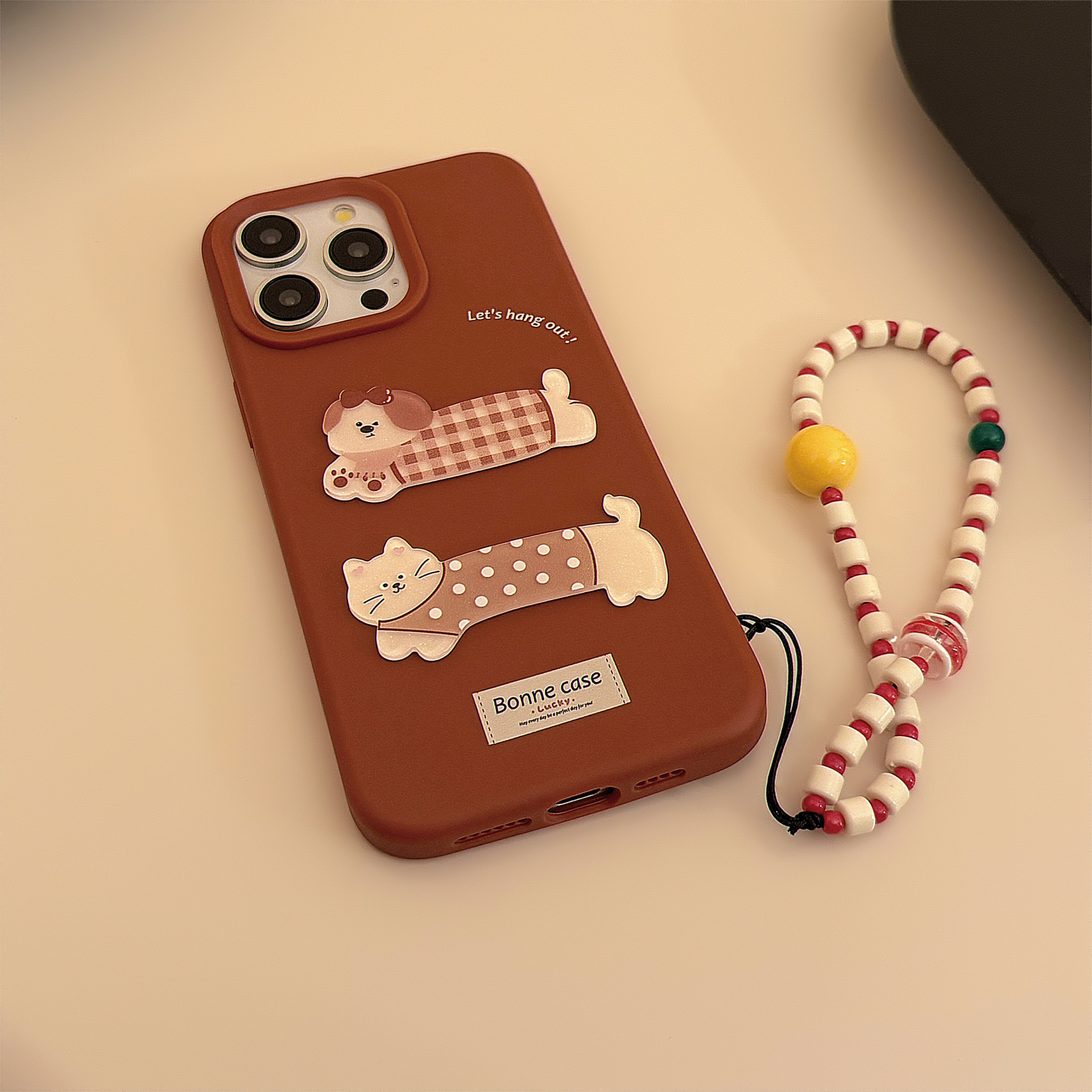 Cadena caramelo fondo rojo tridimensional gato perro parche tx