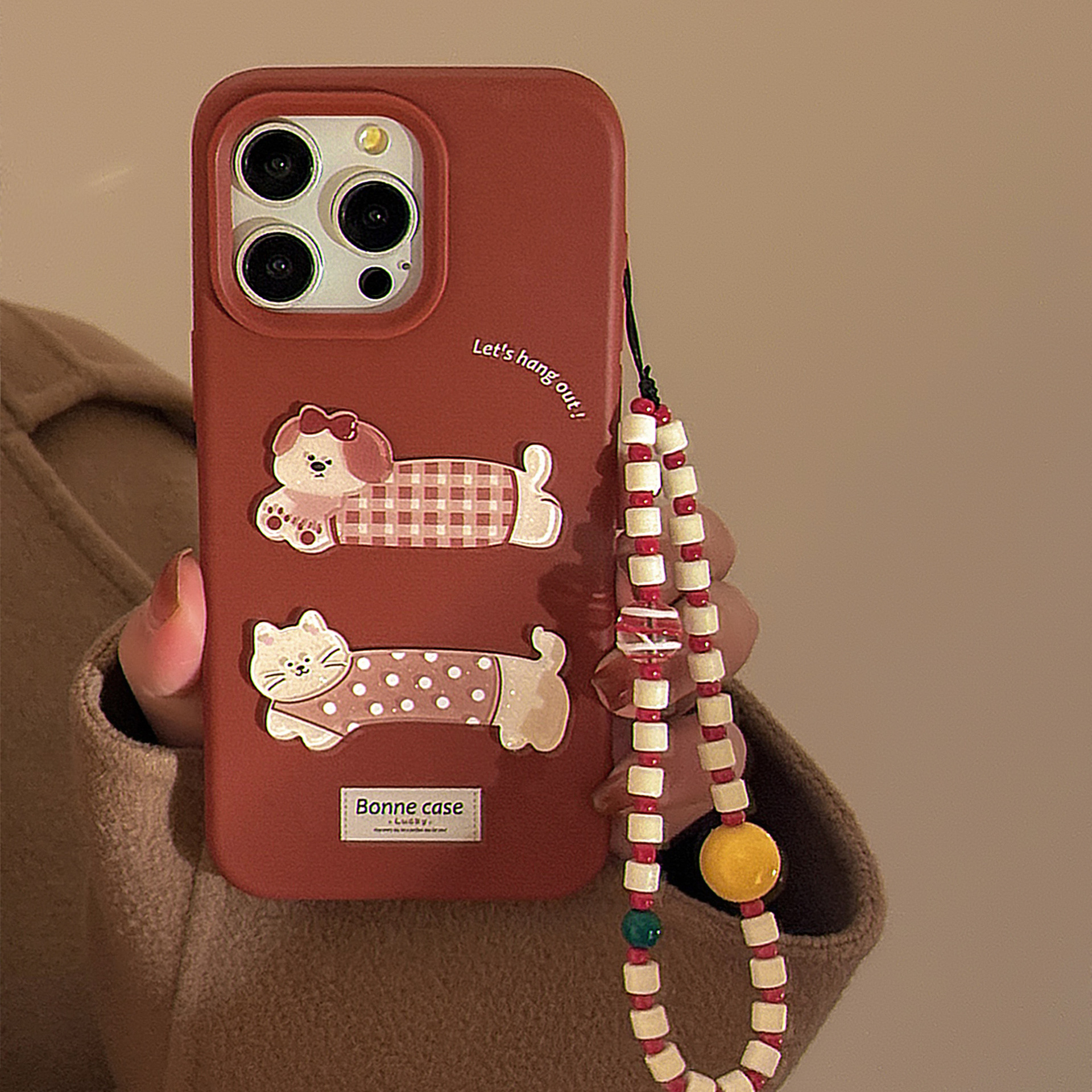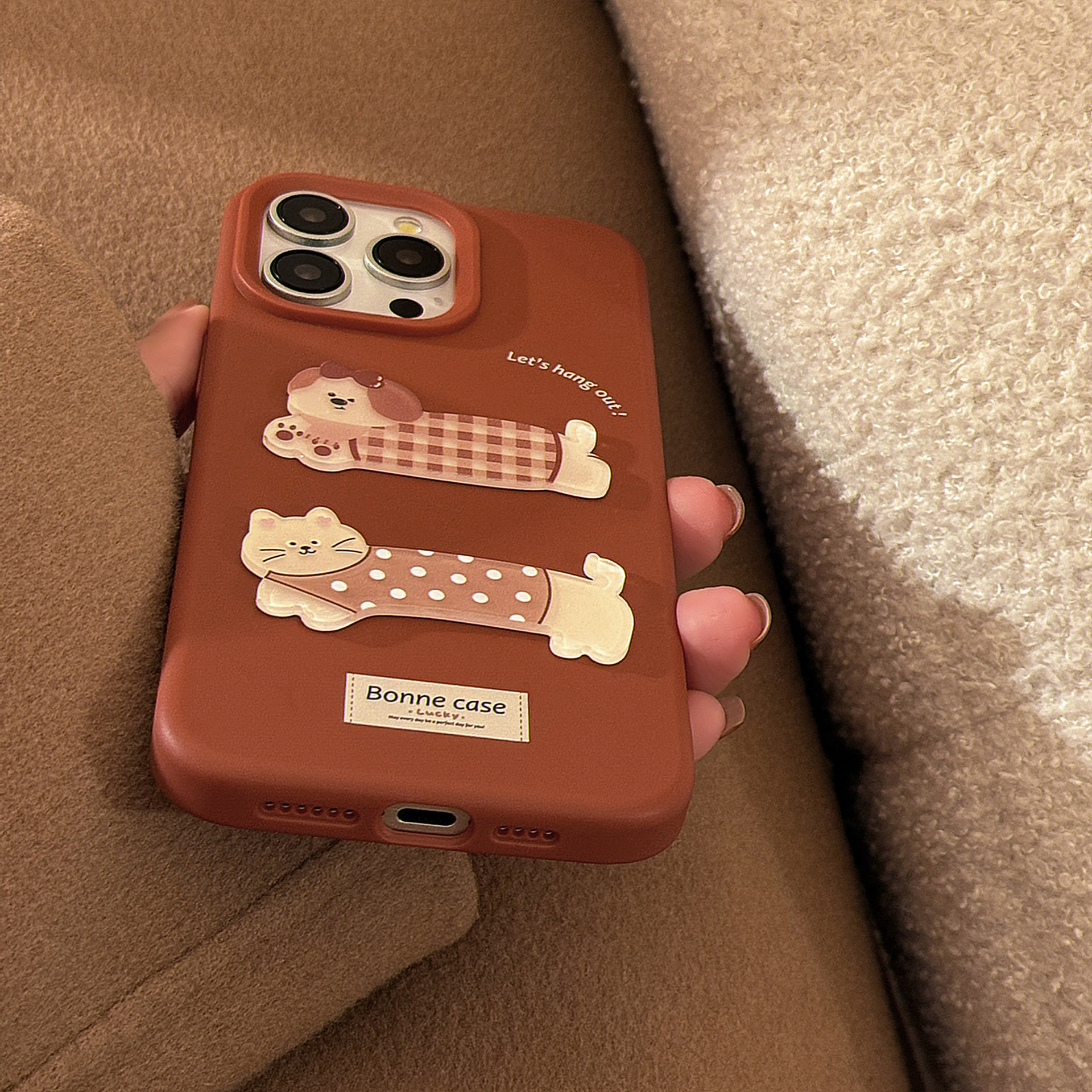 Perro gato tridimensional de dibujos animados para iphone14 Apple 16ProMax funda para teléfono móvil 15 cadena 13 femenino 15PM