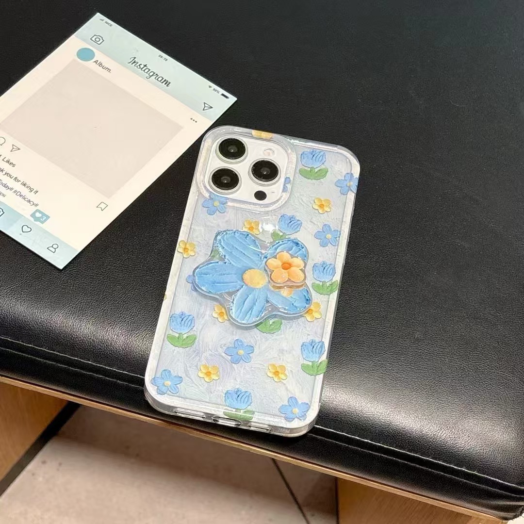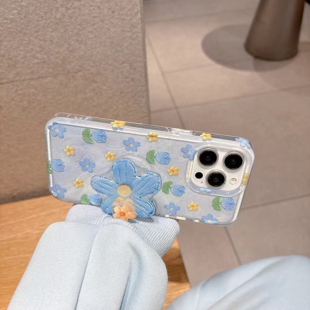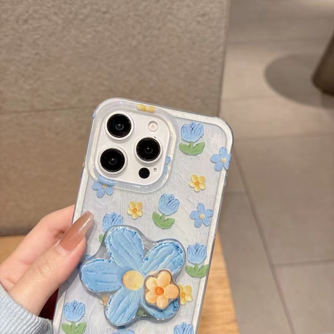 Flores de pintura al óleo frescas de verano para Apple 15ProMax funda para teléfono móvil 16Pro azul 14/13 Diversión 16