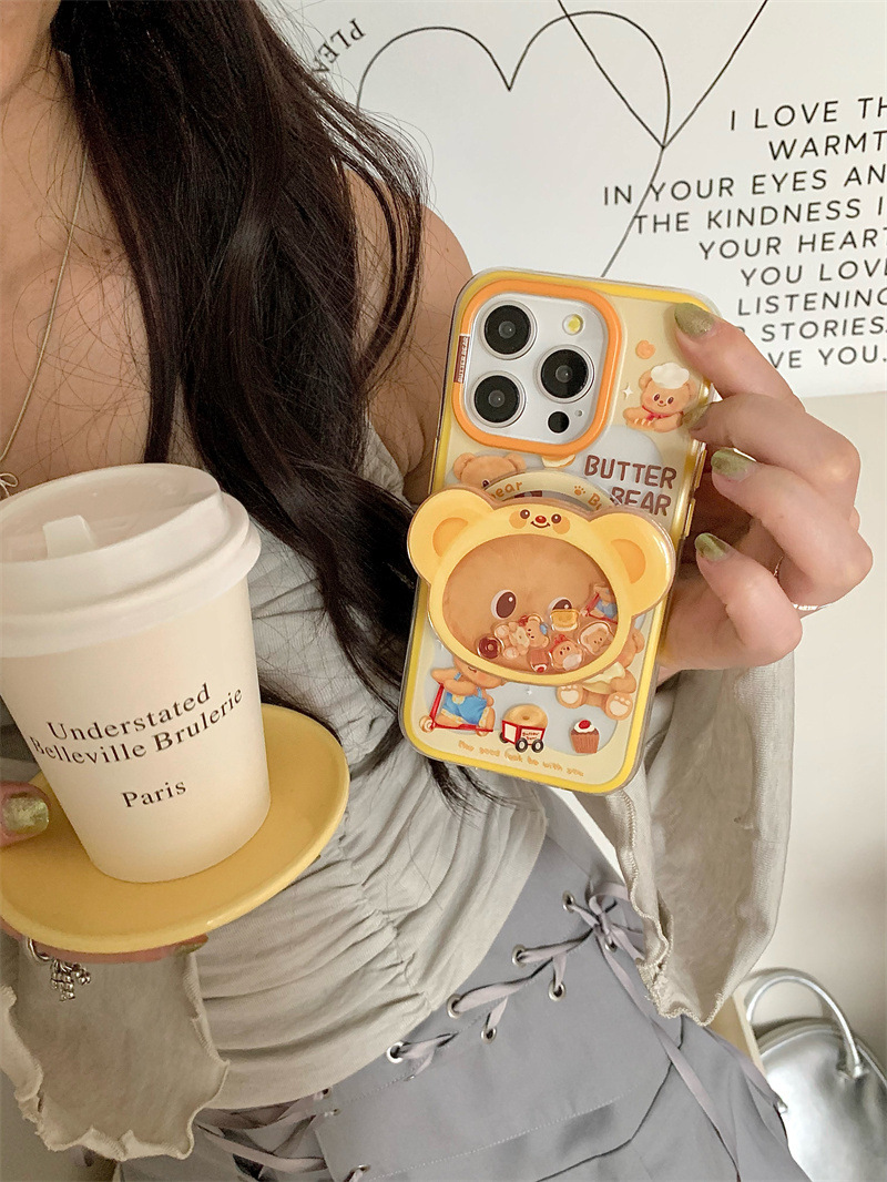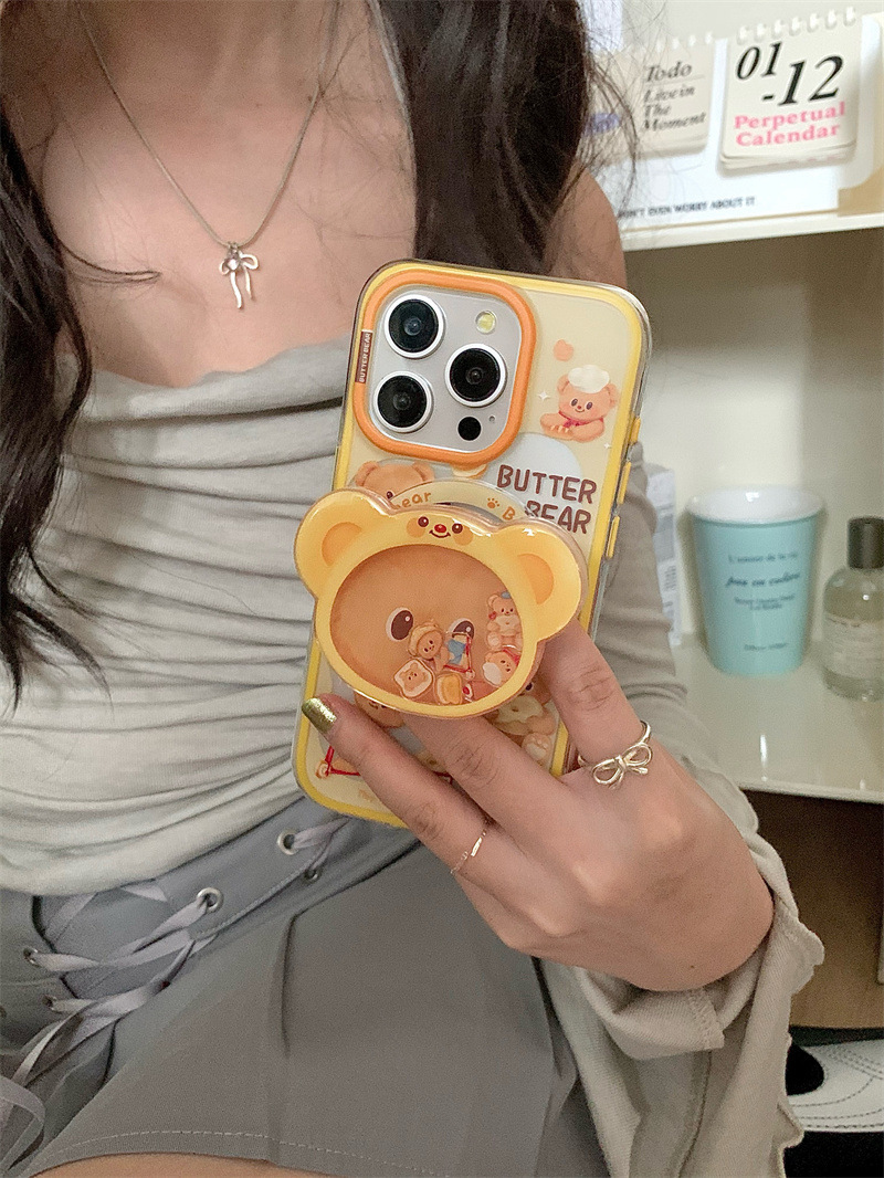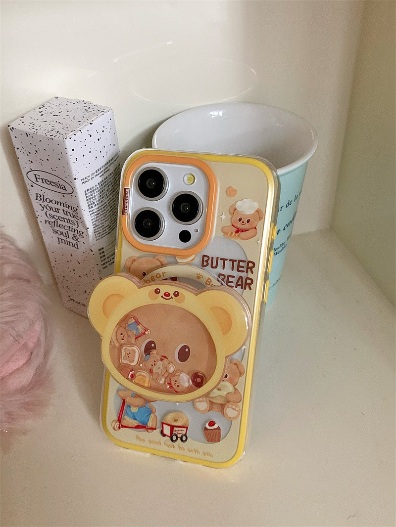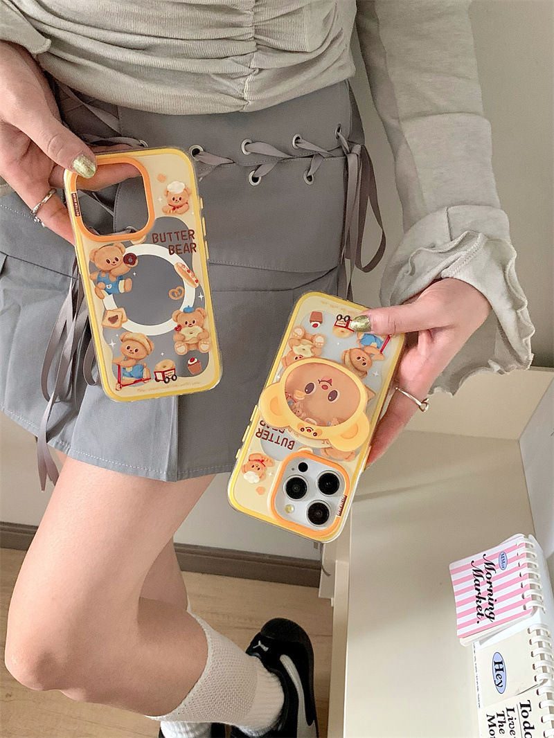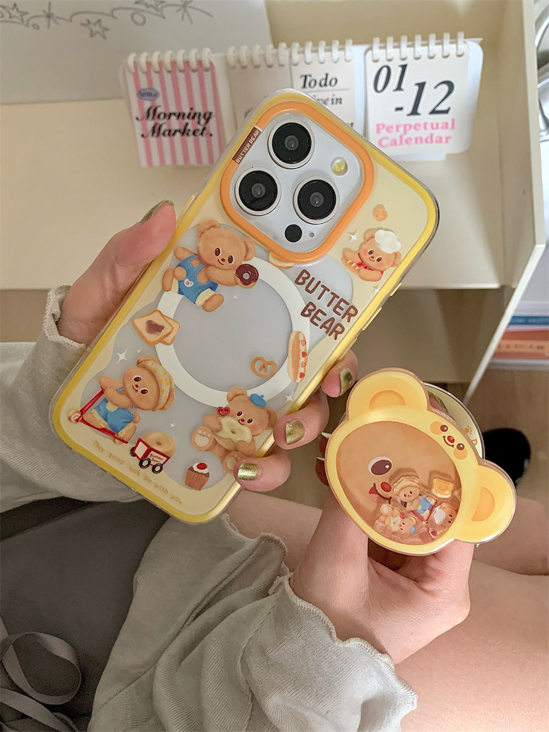 Lindo y divertido oso de mantequilla para iPhone16PRROMAX creativo 14/15Pro magnético 13p corazón de niña