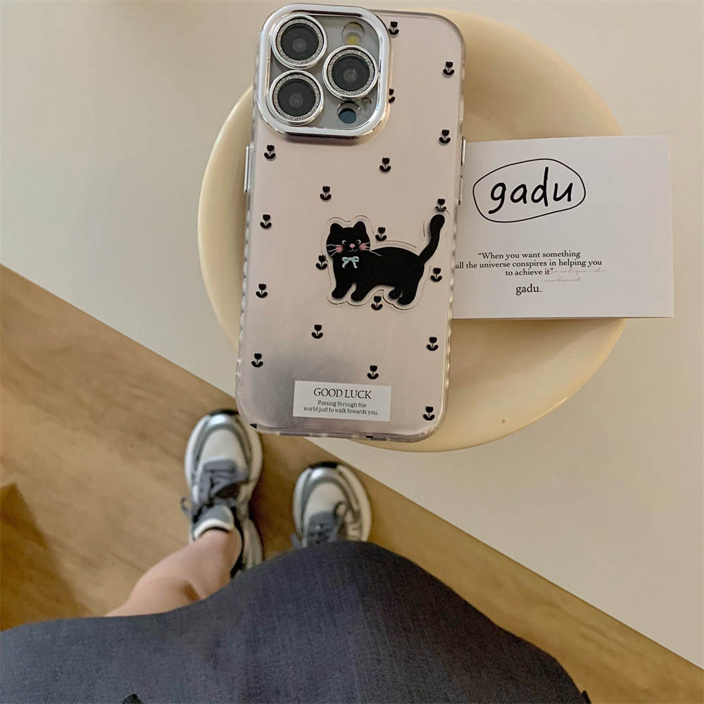 Soportes de gato flor de hilo de plumas de nicho para iPhone14 funda para teléfono móvil 15ProMax Apple 12/13 hembra