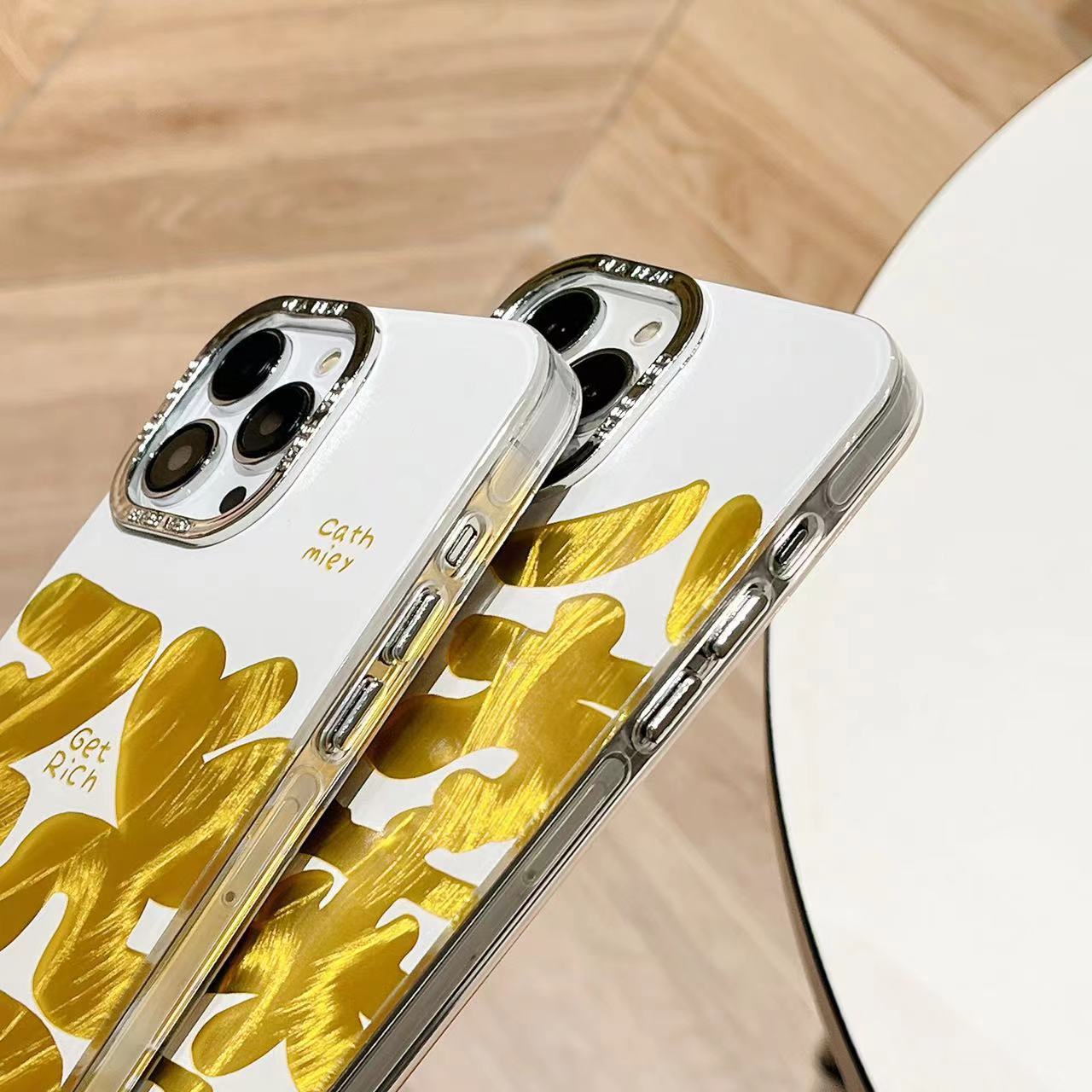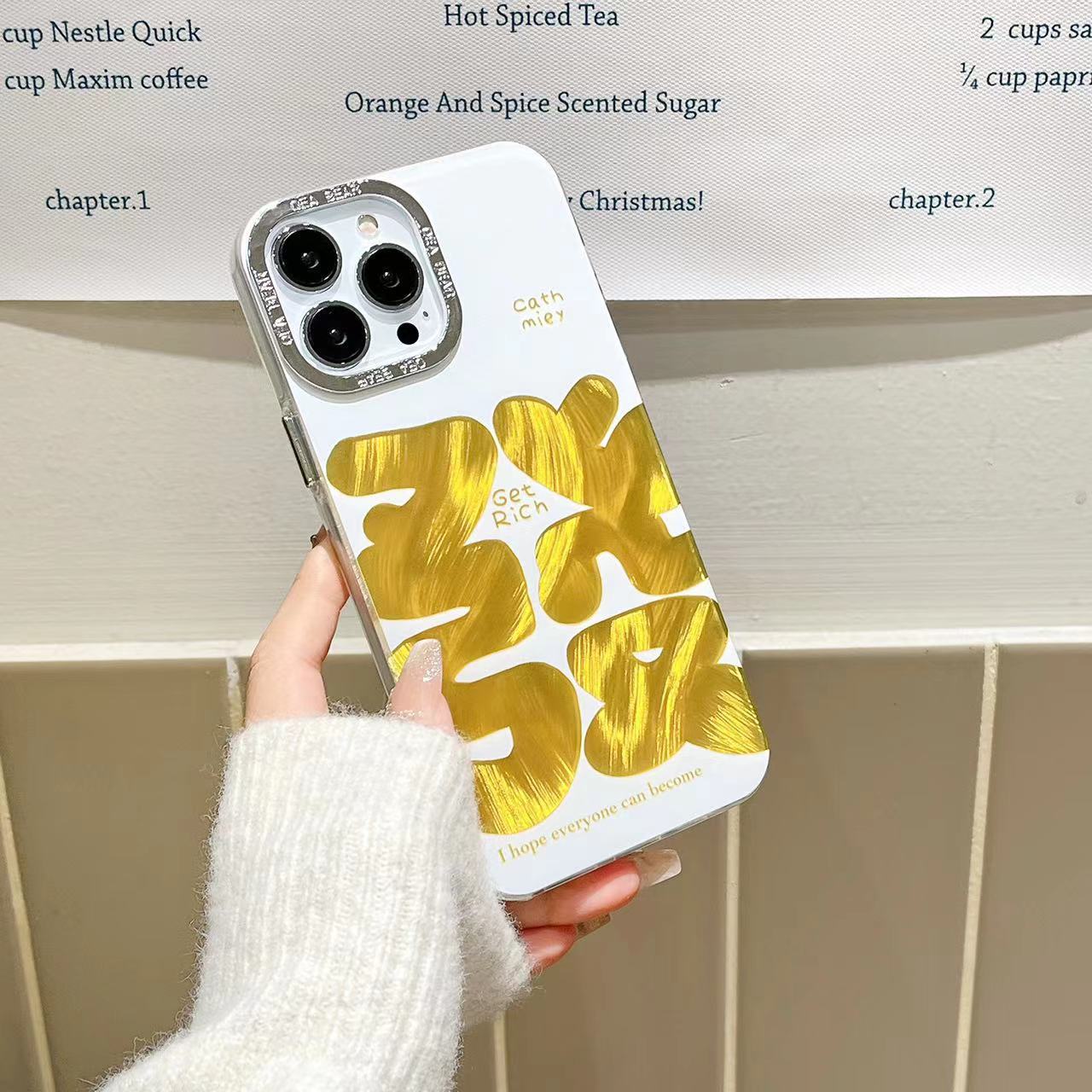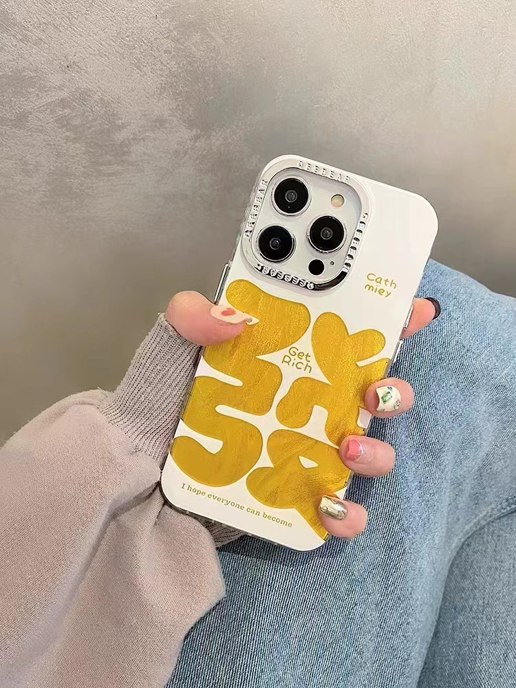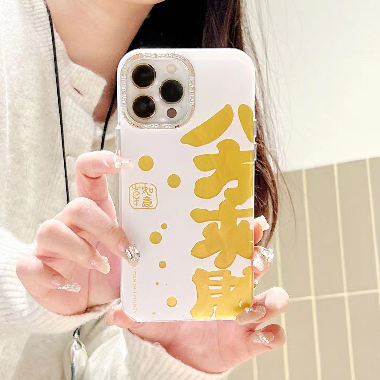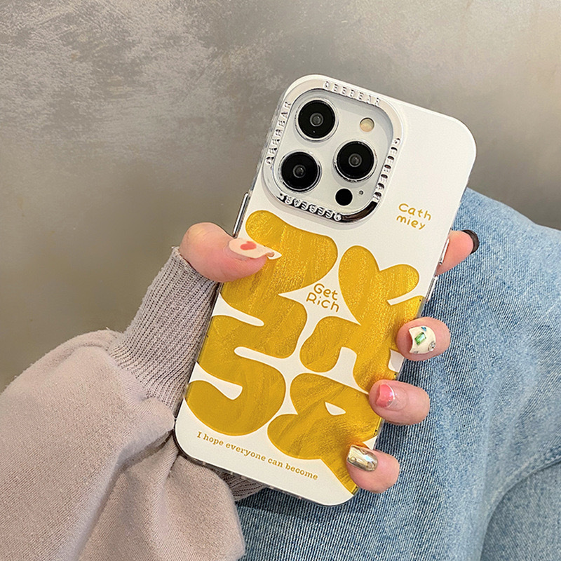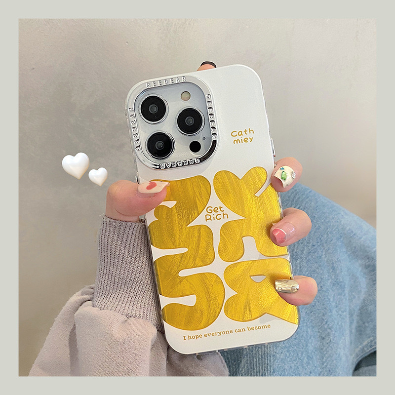 Texto festivo de hilo de plumas dorado de marea nacional para iPhone 14 funda para teléfono móvil 15ProMax Apple 12 hombres y mujeres 13 marea