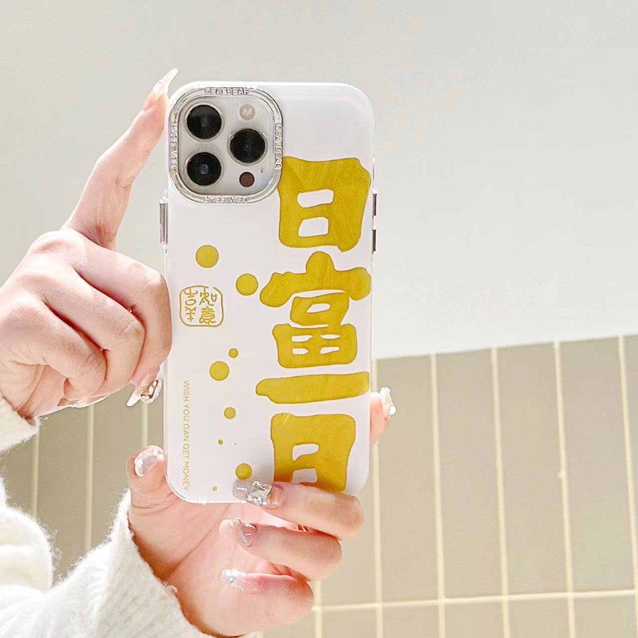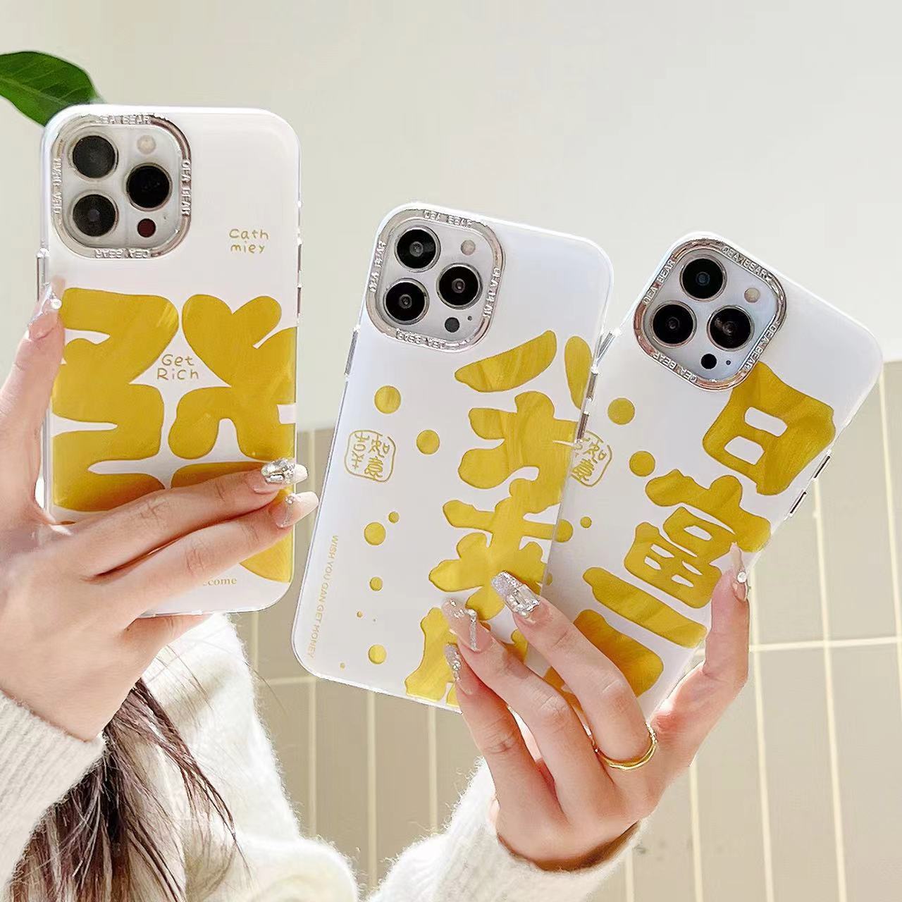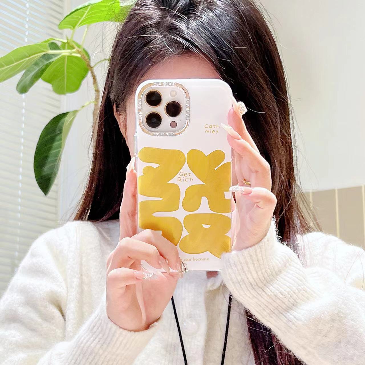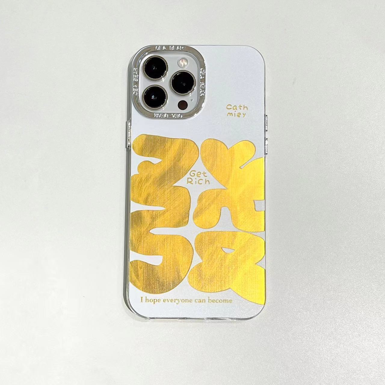 Texto festivo de hilo de plumas dorado de marea nacional para iPhone 14 funda para teléfono móvil 15ProMax Apple 12 hombres y mujeres 13 marea