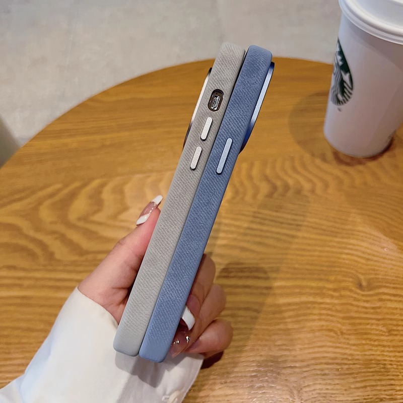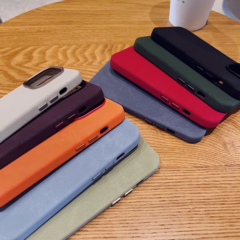 Patrón de tela de fibra de color sólido simple para iPhone15ProMax para hombres y mujeres 13 funda para teléfono móvil 12 Apple 14 atracción magnética