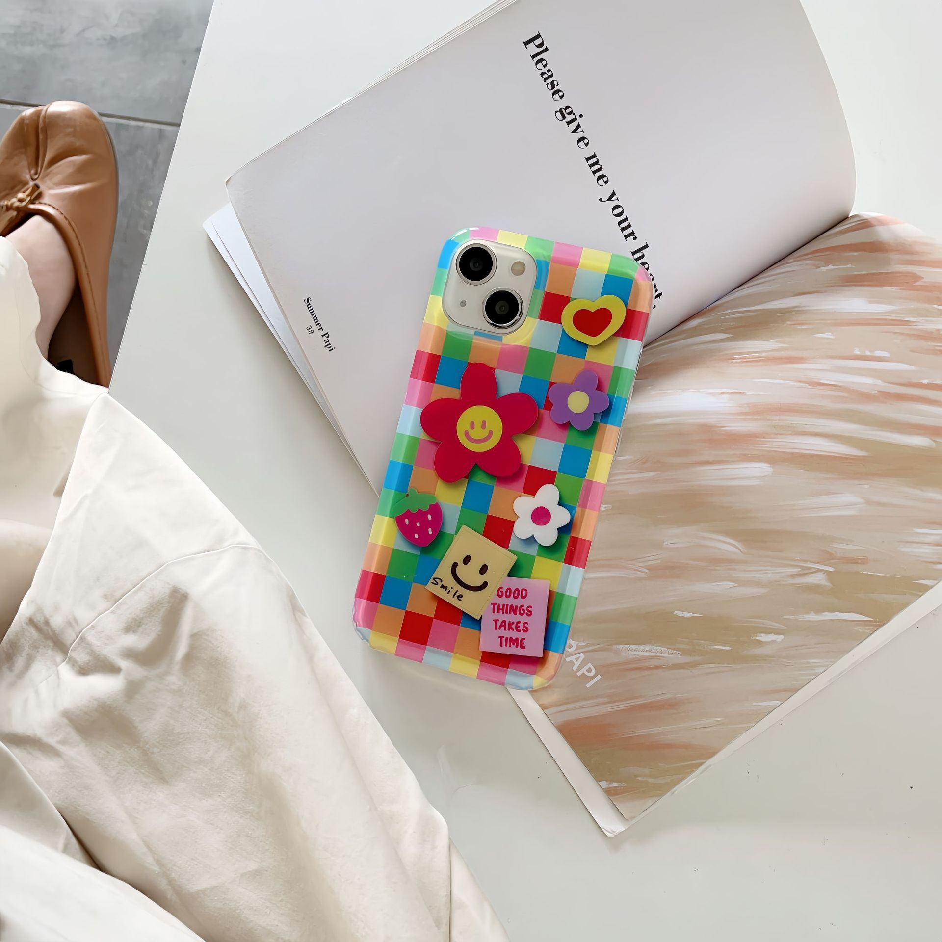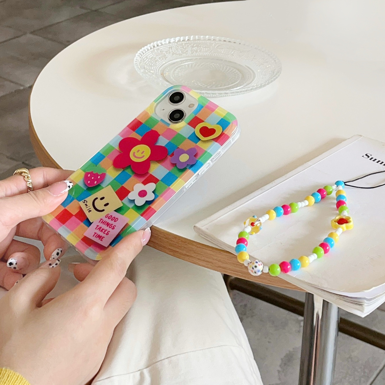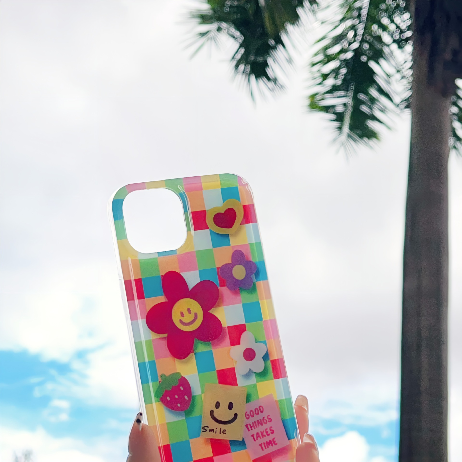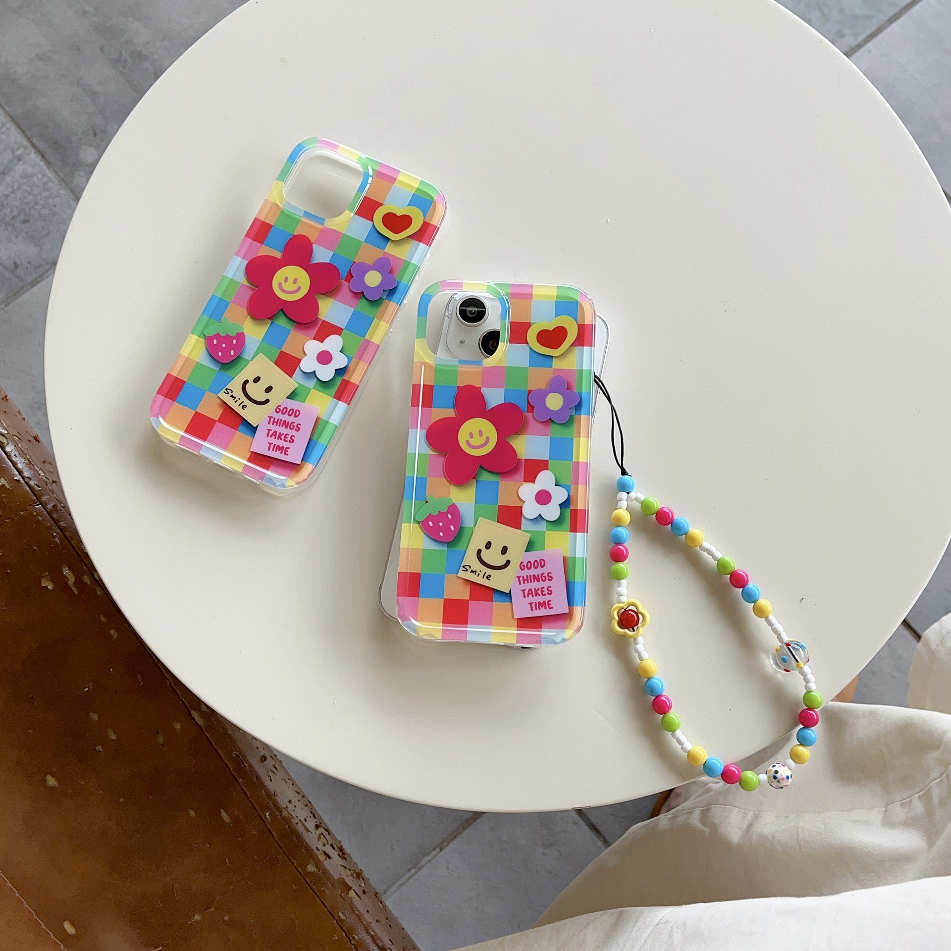 | Colores | Smiley de flores a cuadros de un solo caparazón kk,Smiley de flores a cuadros de color de cadena kk |