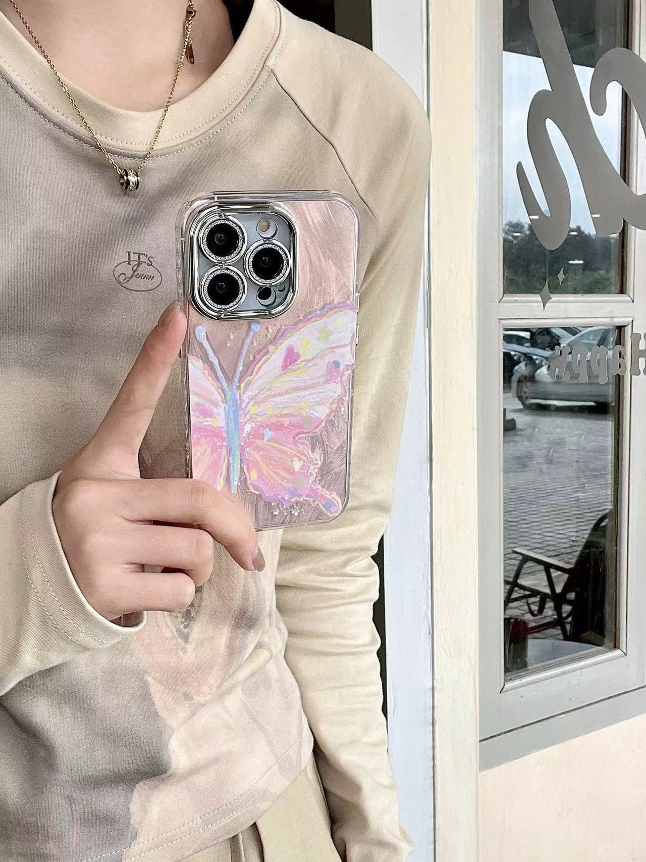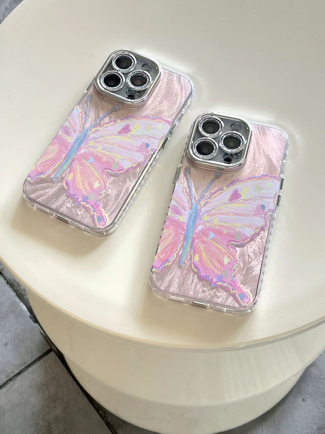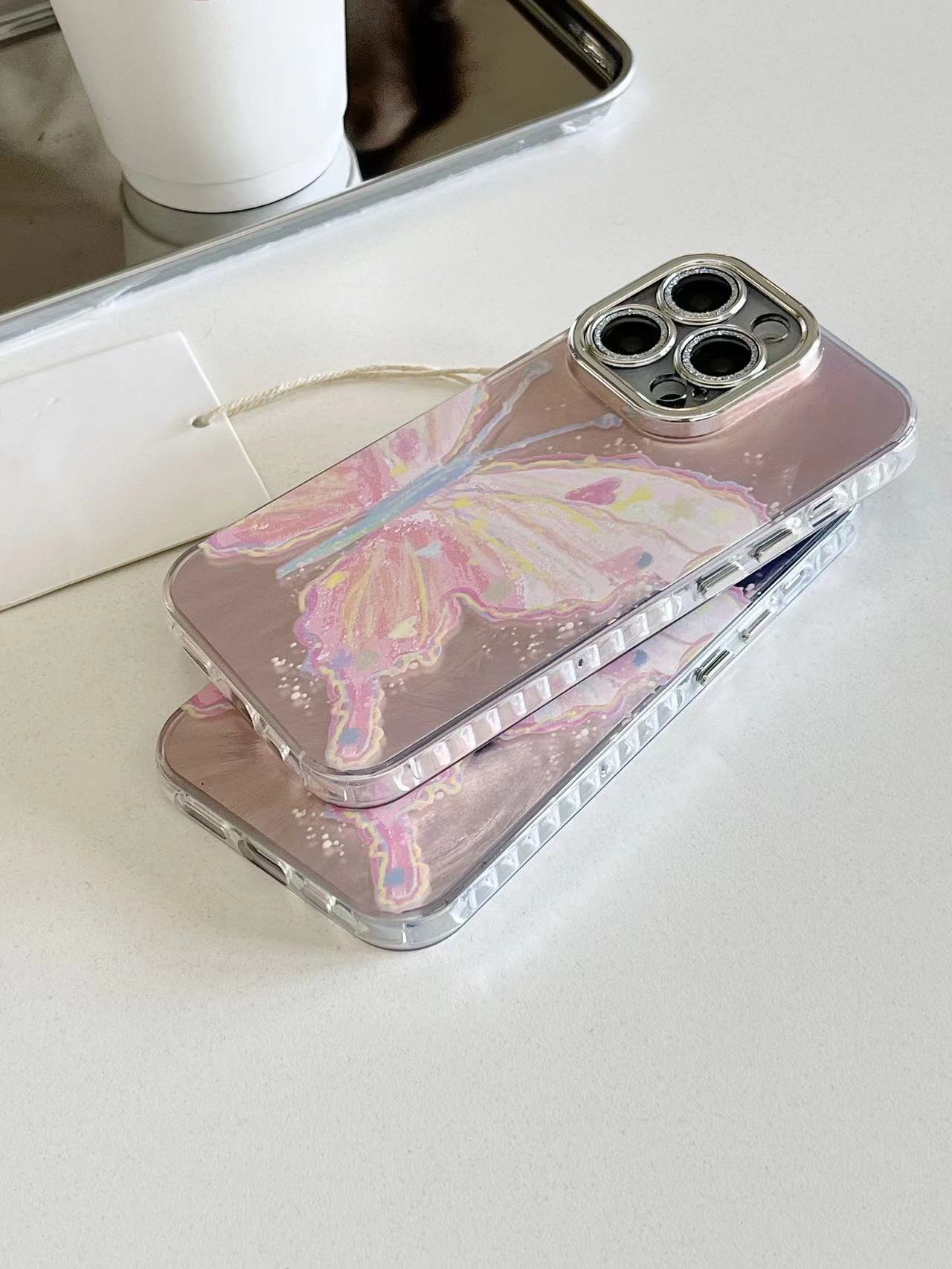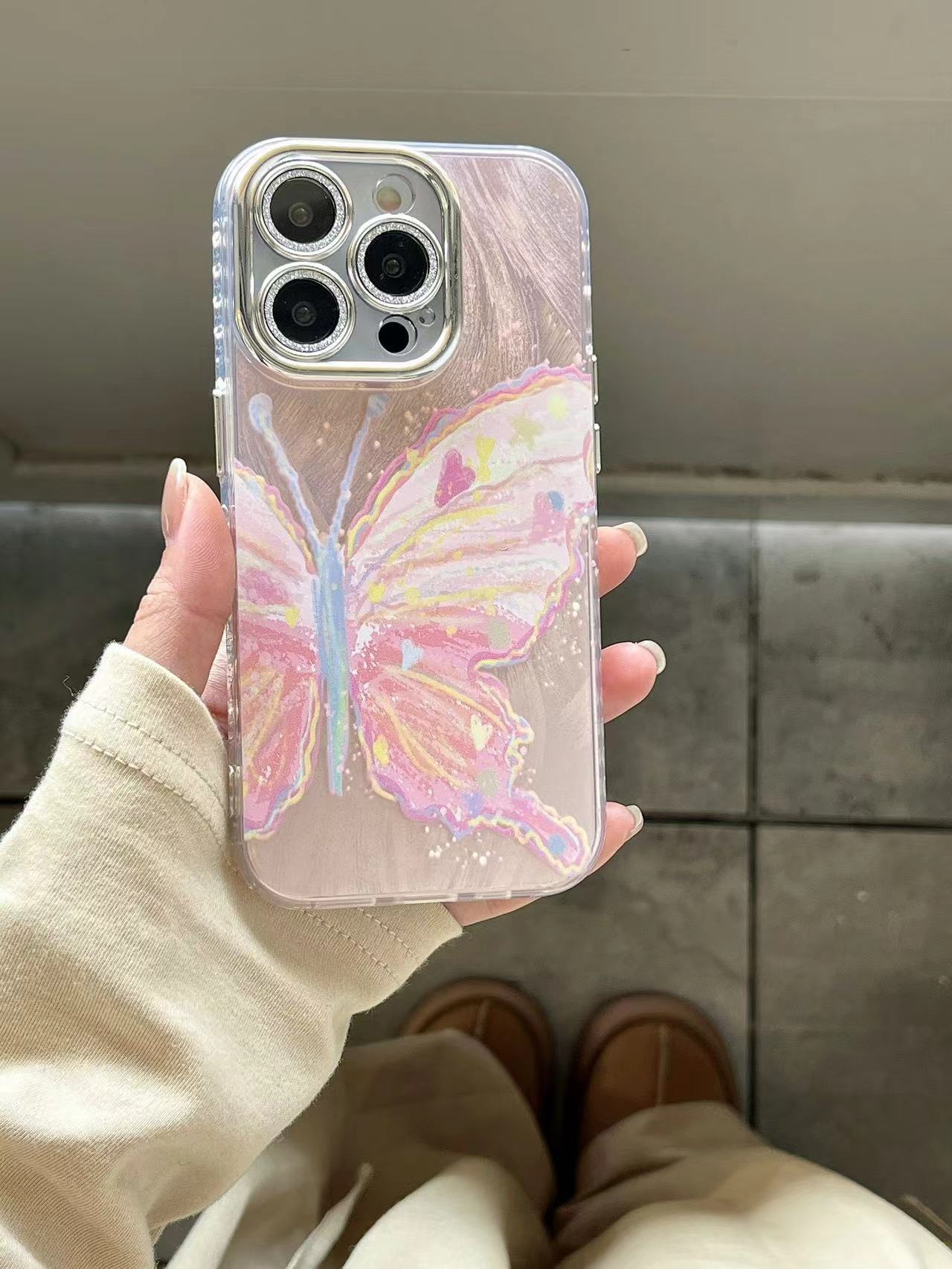 Chica ins pluma de hilo Rosa pintura al óleo mariposa para iPhone13 teléfono caso 15Promax Apple 14p hembra 12 duro