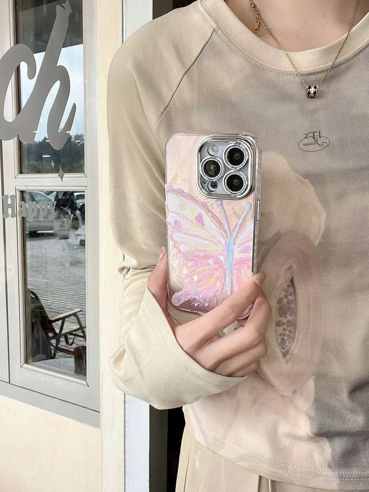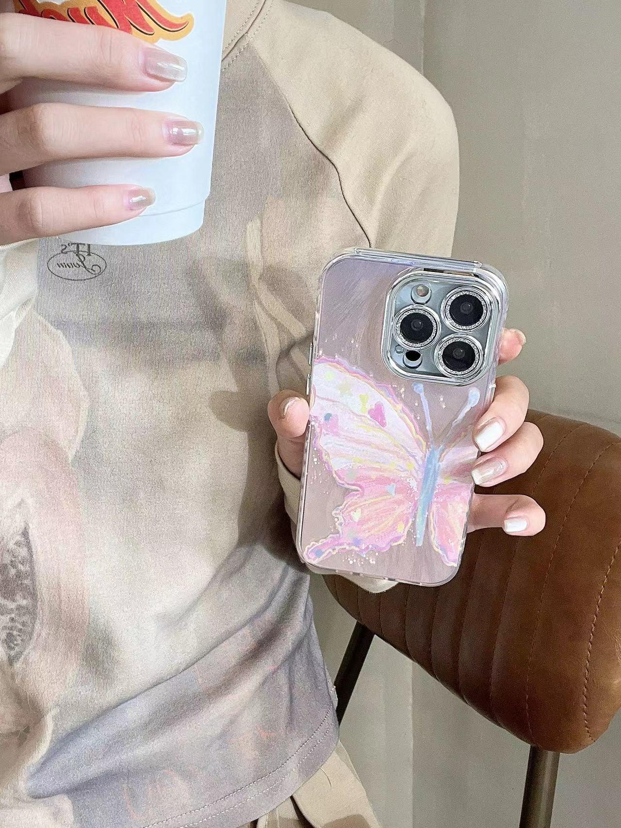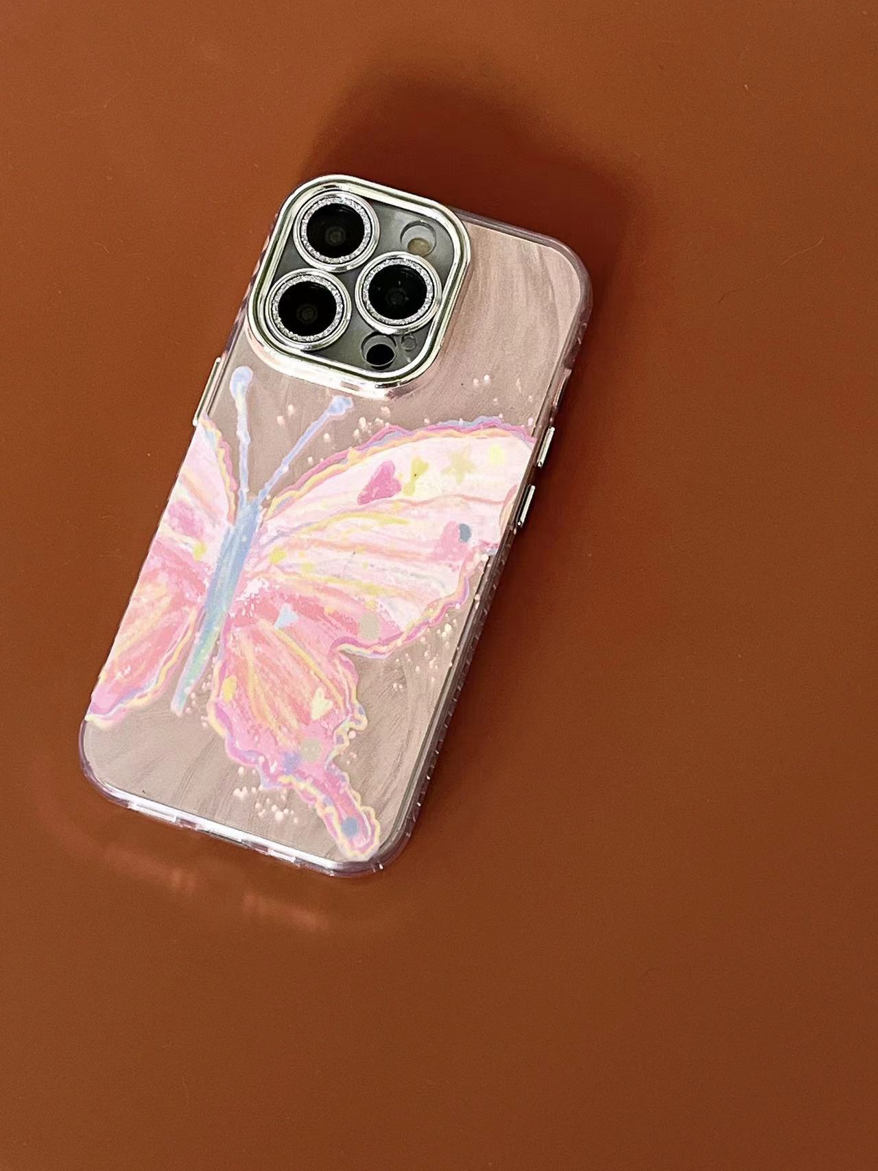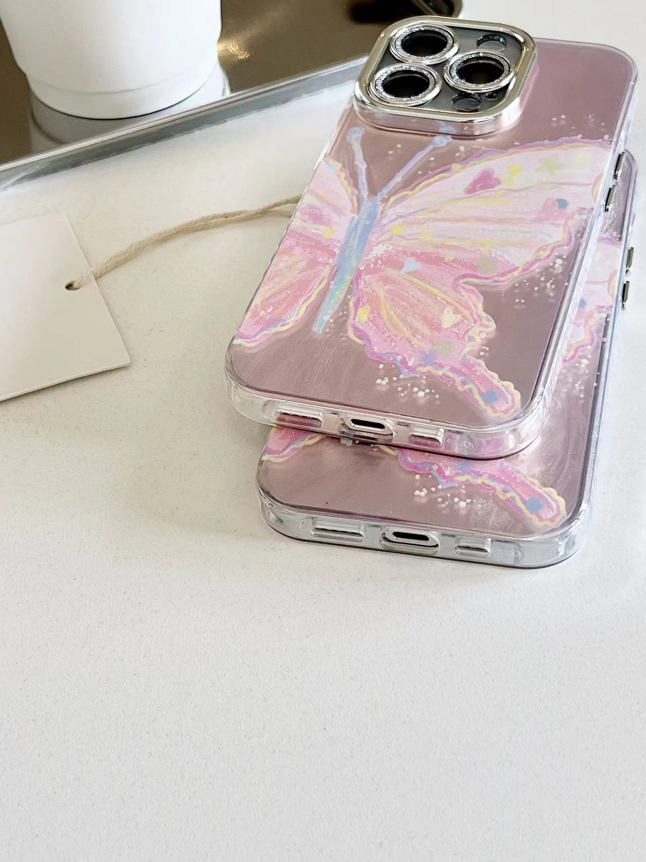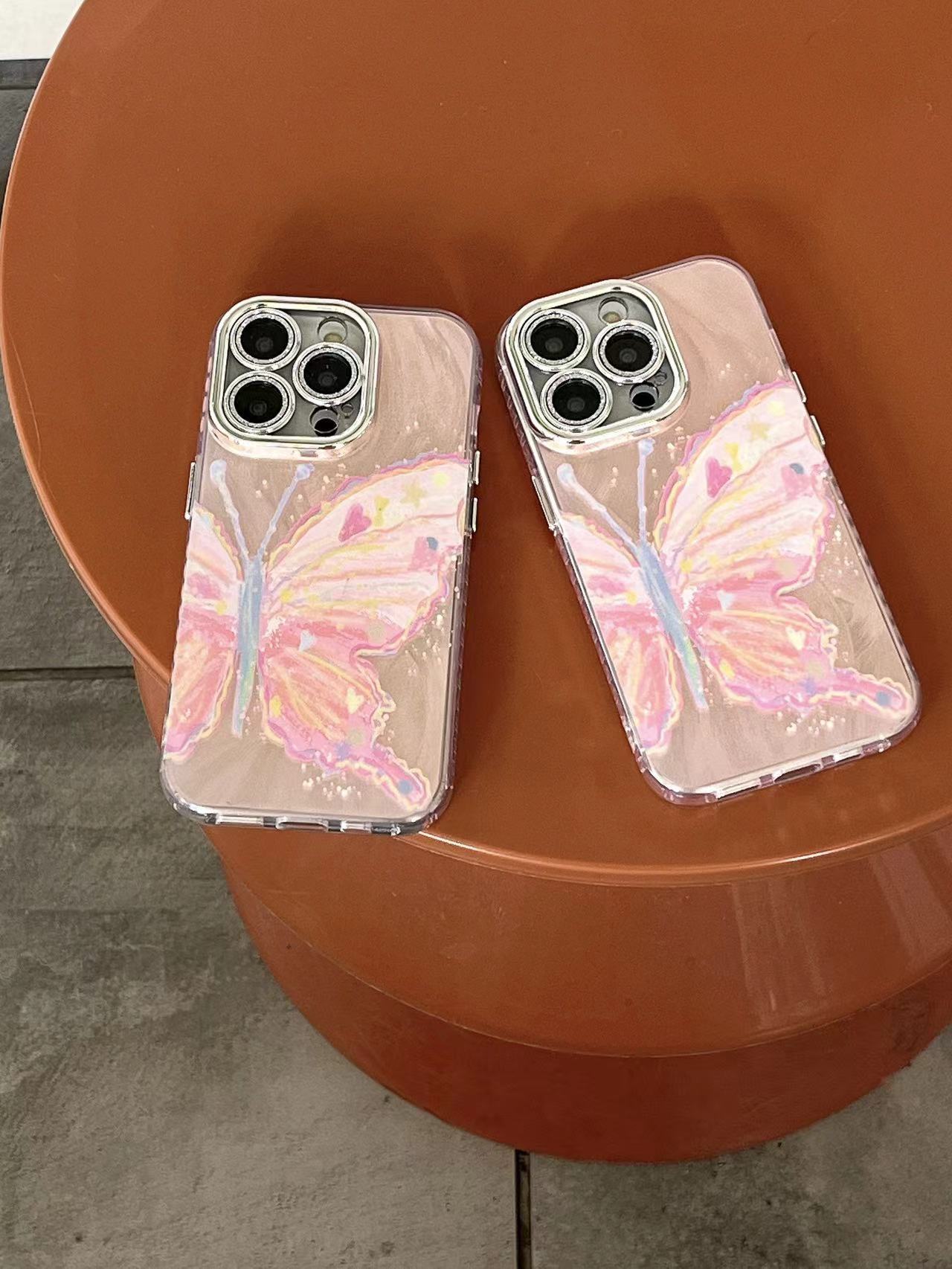 Chica ins pluma de hilo Rosa pintura al óleo mariposa para iPhone13 teléfono caso 15Promax Apple 14p hembra 12 duro