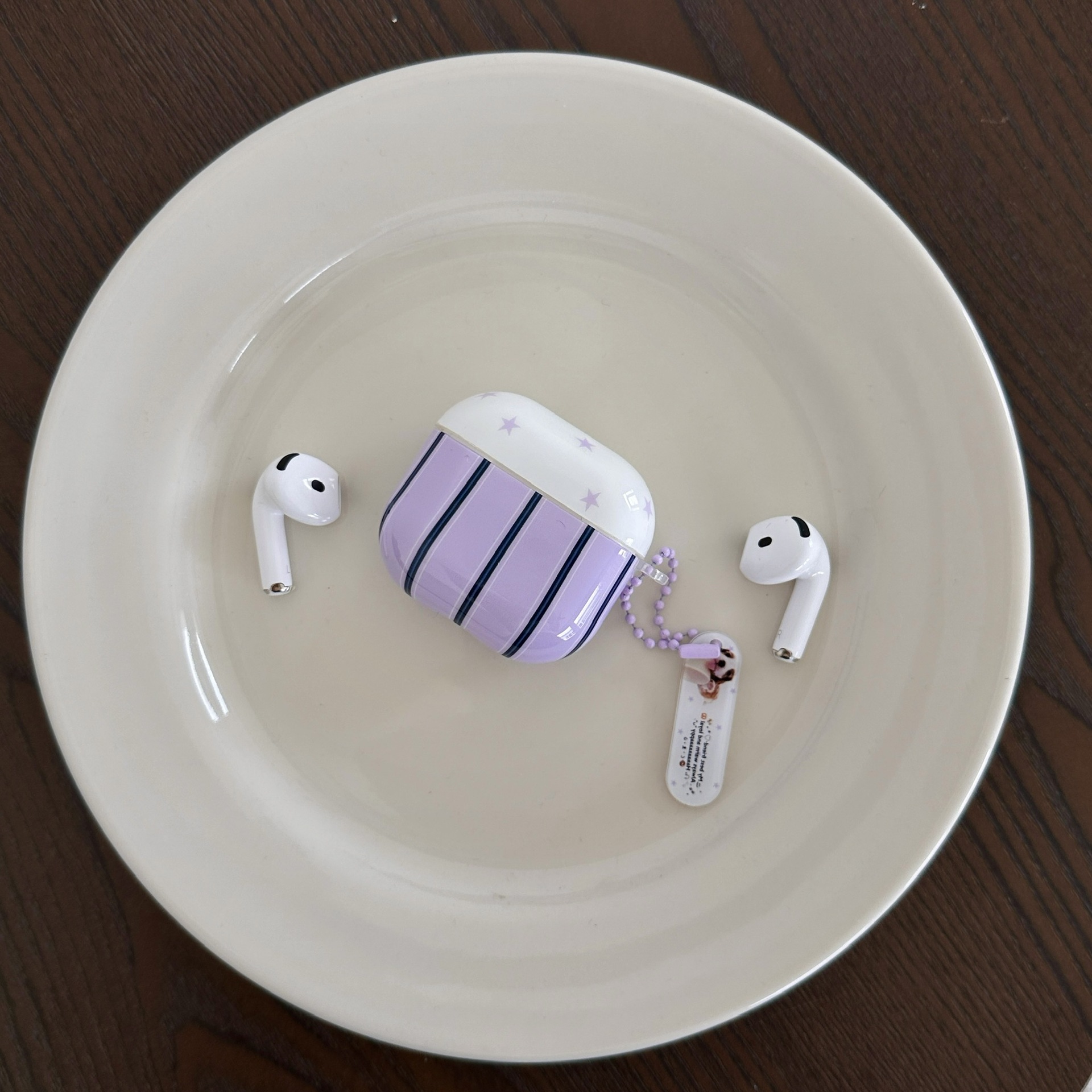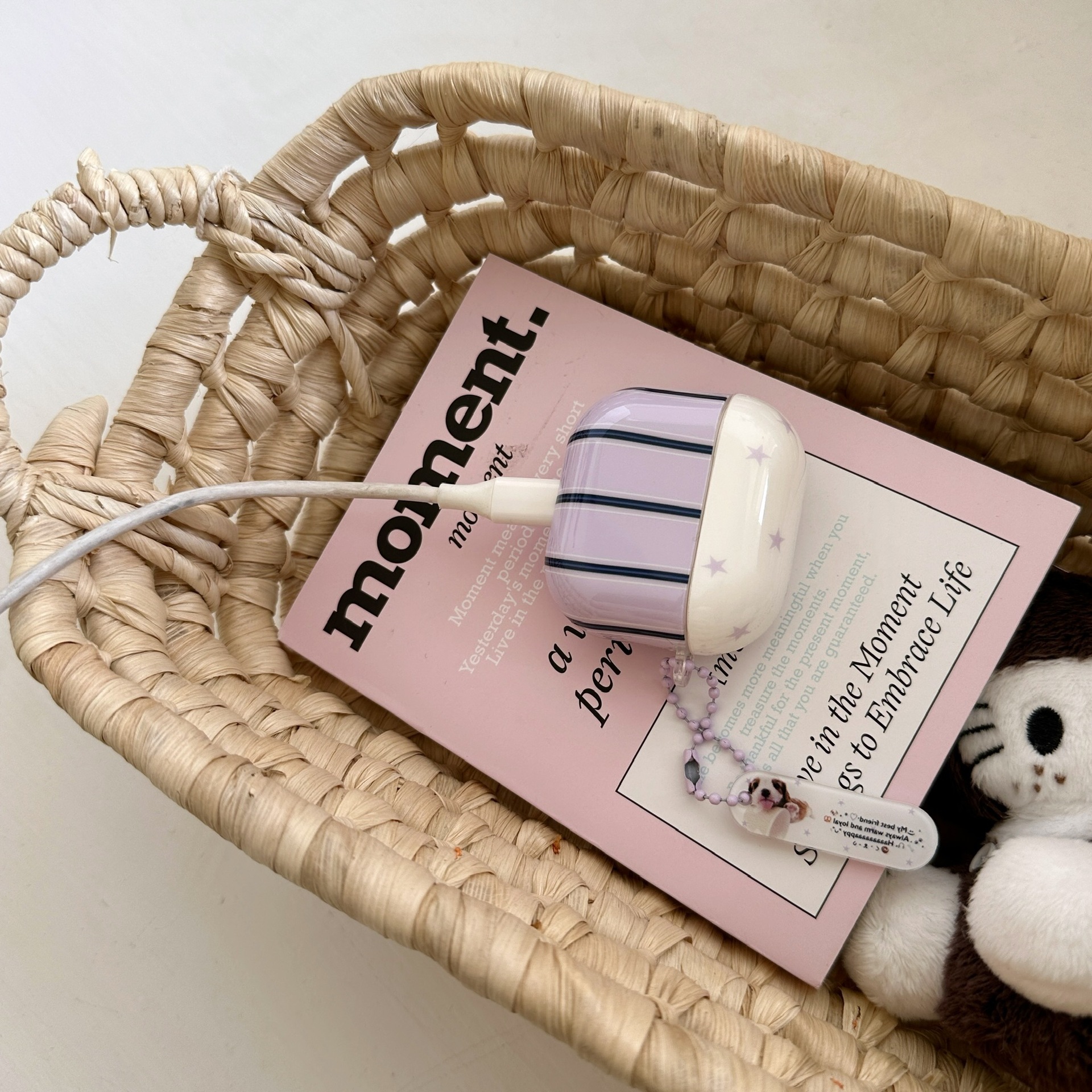 Estrellas de rayas negras y moradas para Airpods Pro2 auriculares airpods 1/2da generación colgante 3/4 pareja Pro