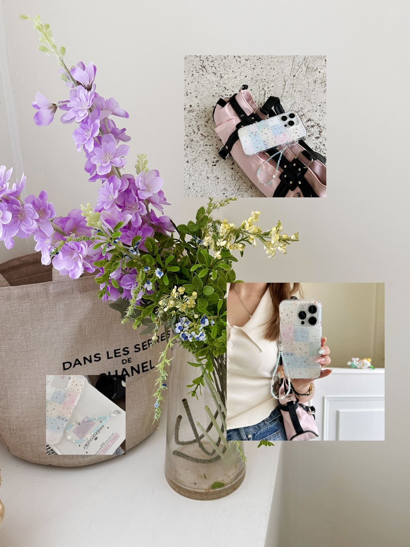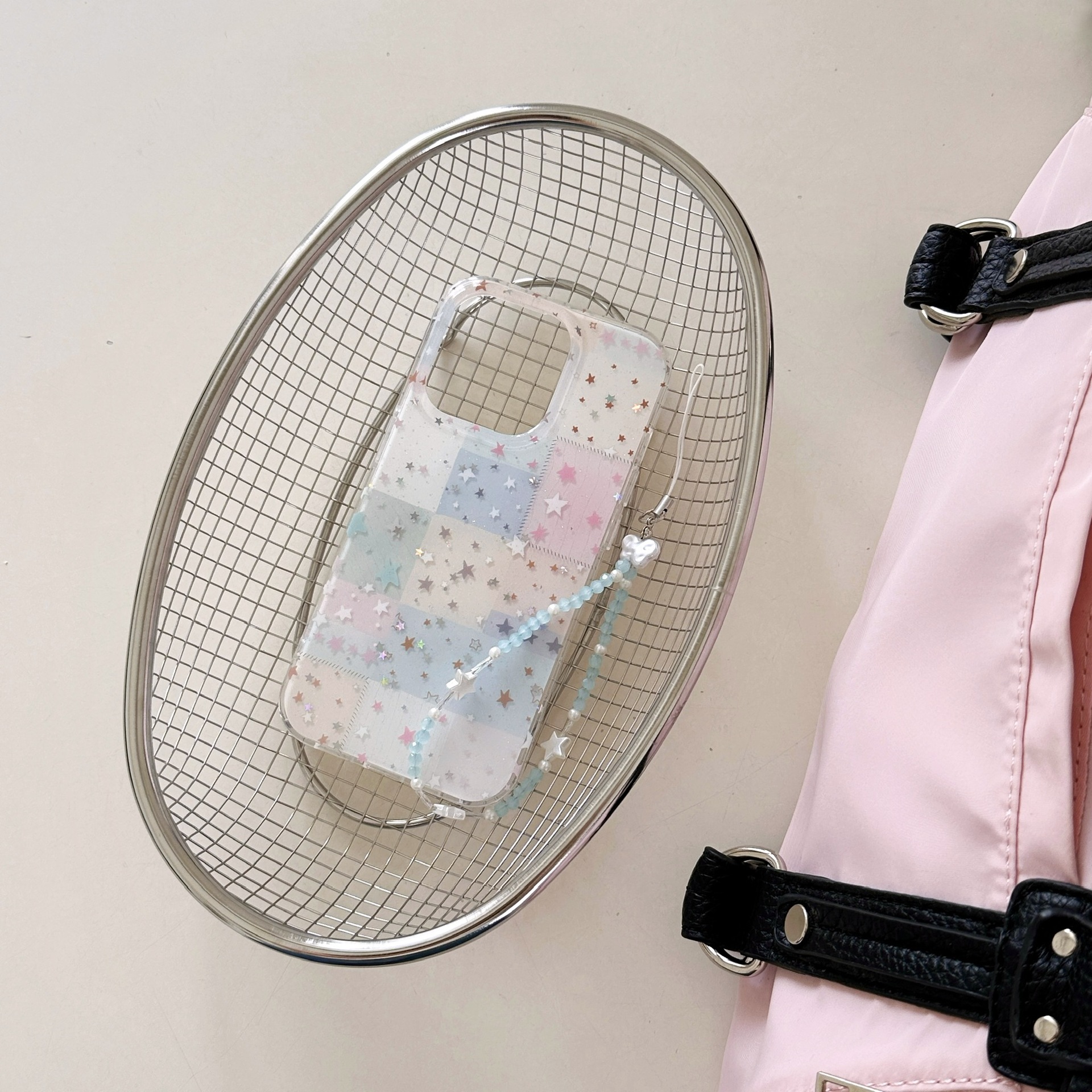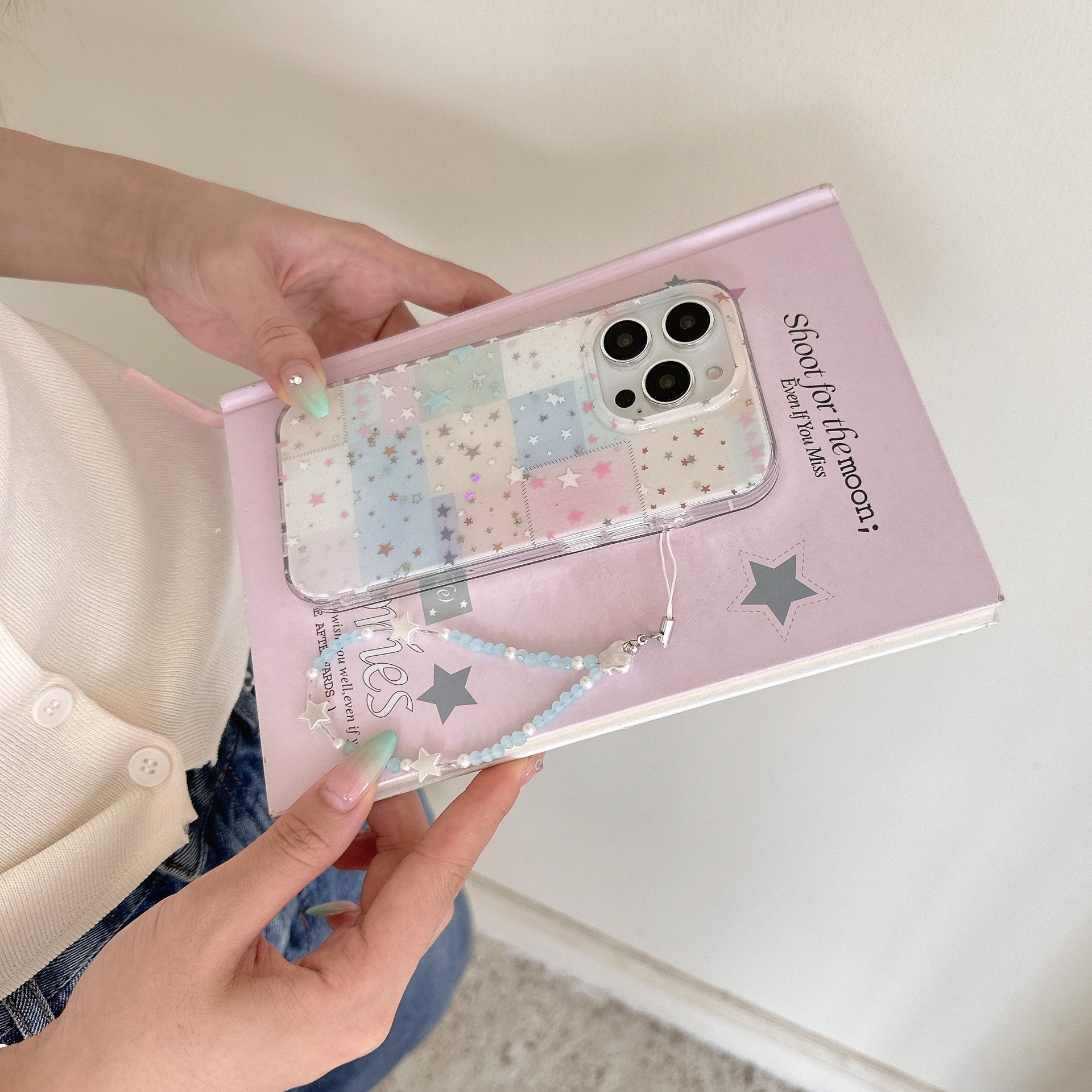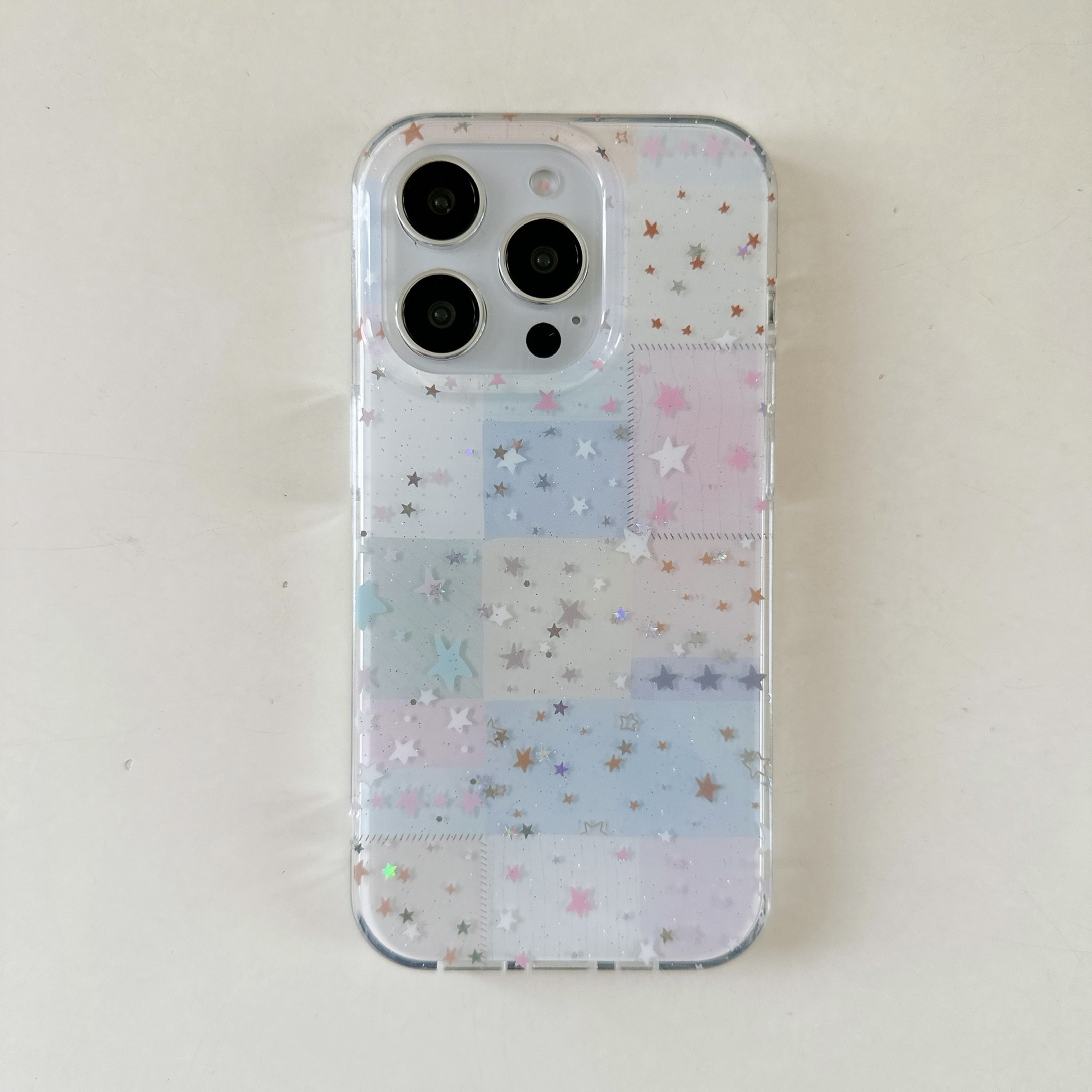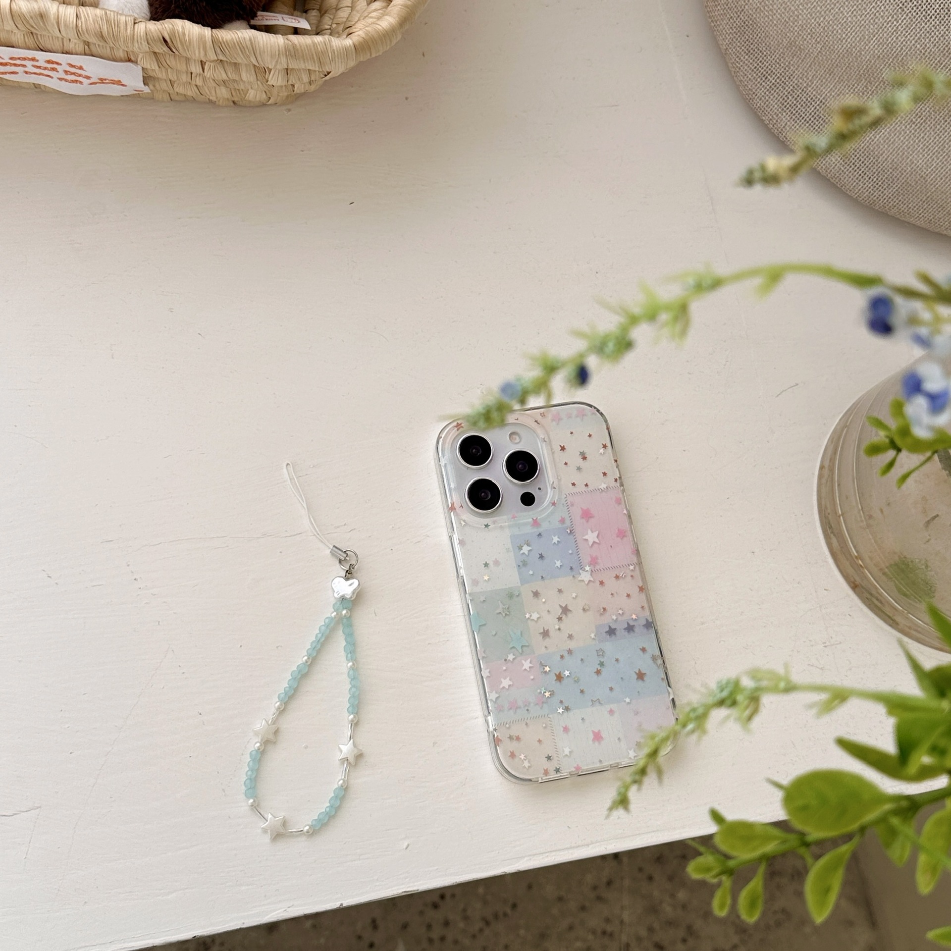Estrellas de cuadros de colores para Apple 15ProMax pequeña y fresca 16Pro funda para teléfono móvil 14/13 cadena femenina 16PM