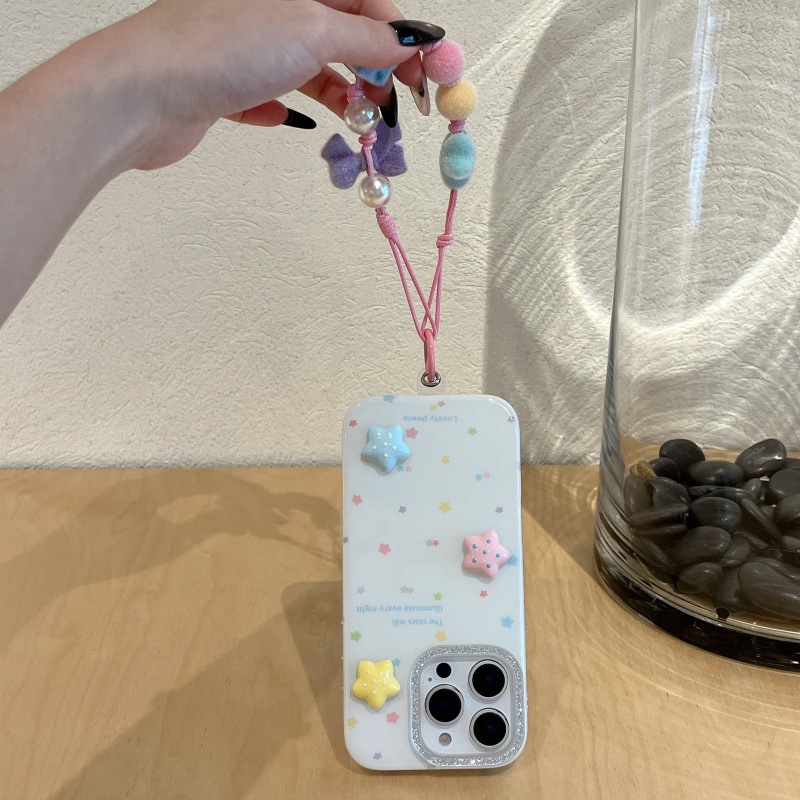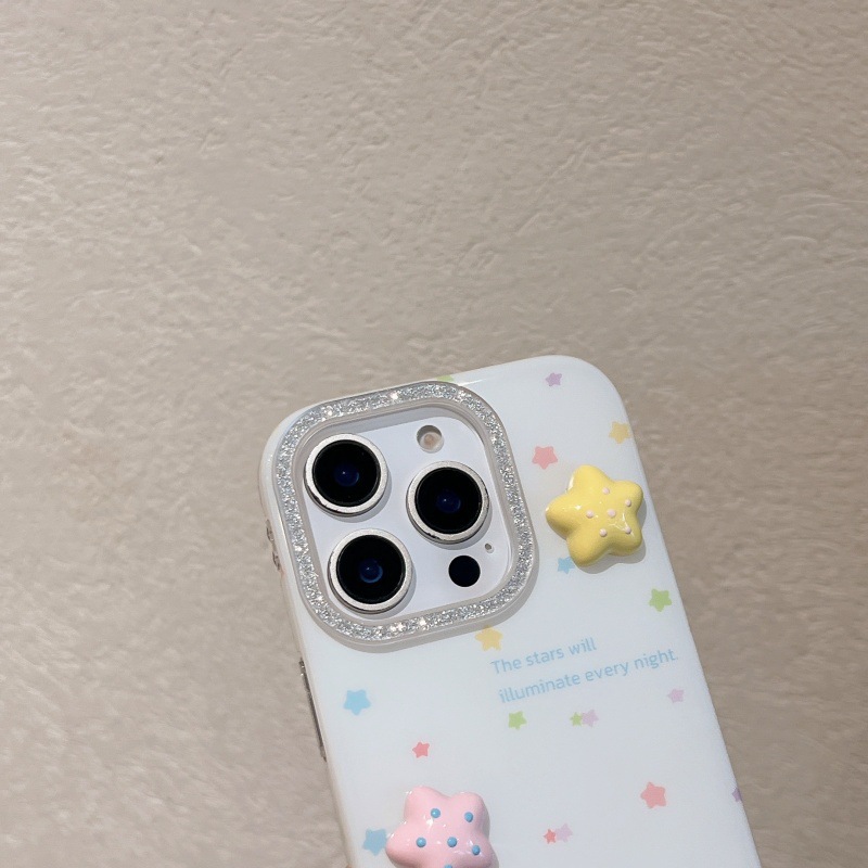 Estrellas tridimensionales de color coreanas para Apple 16ProMax funda para teléfono móvil 15Pro/14Pro cadena 13 nuevo 16P