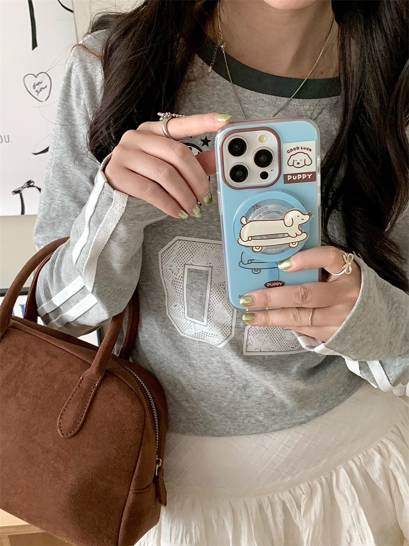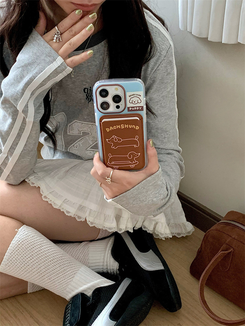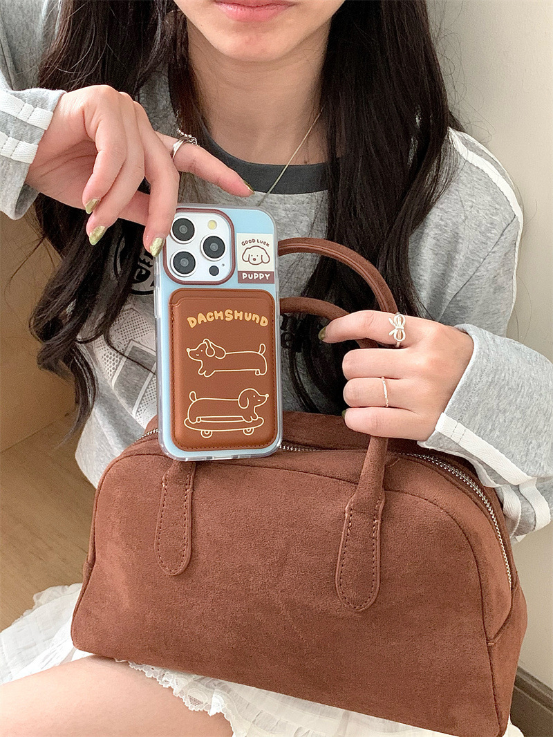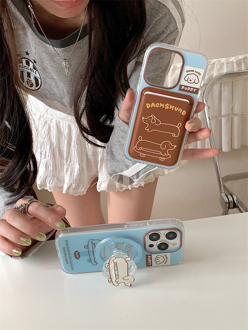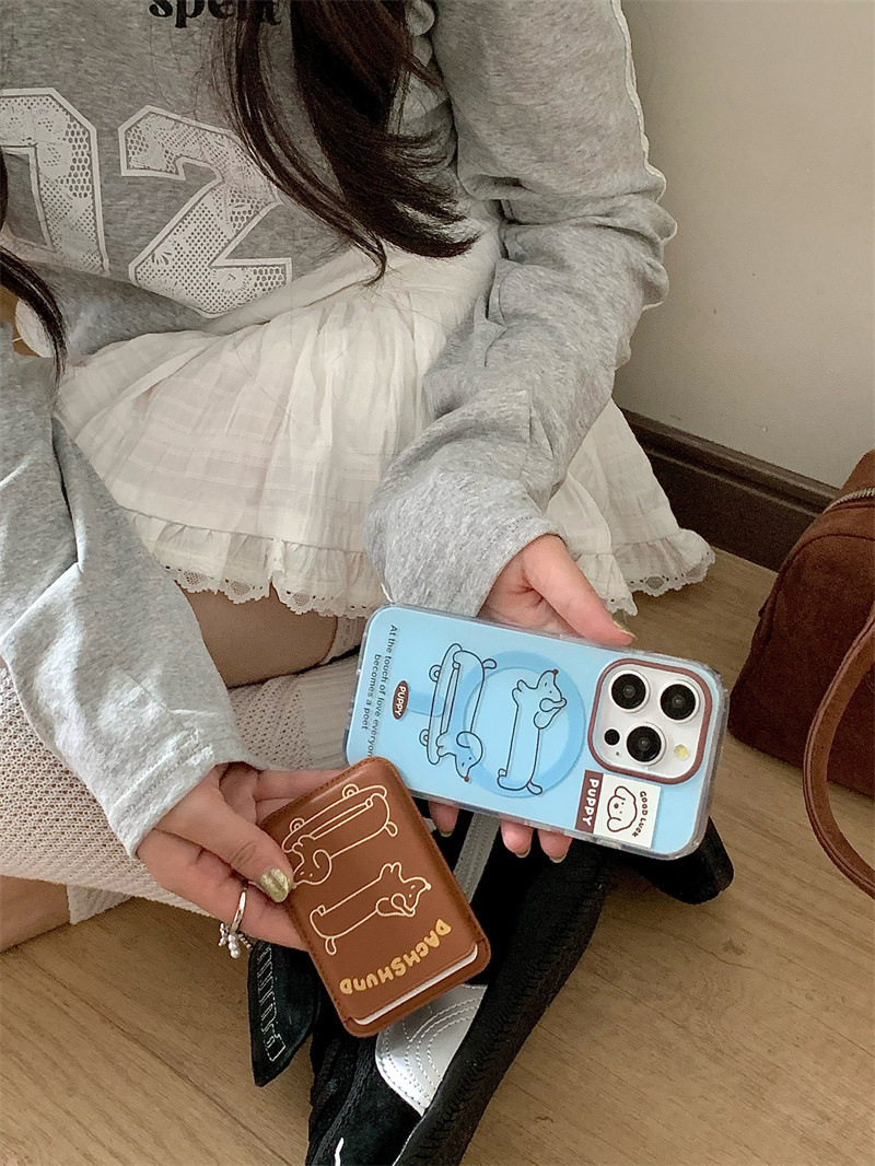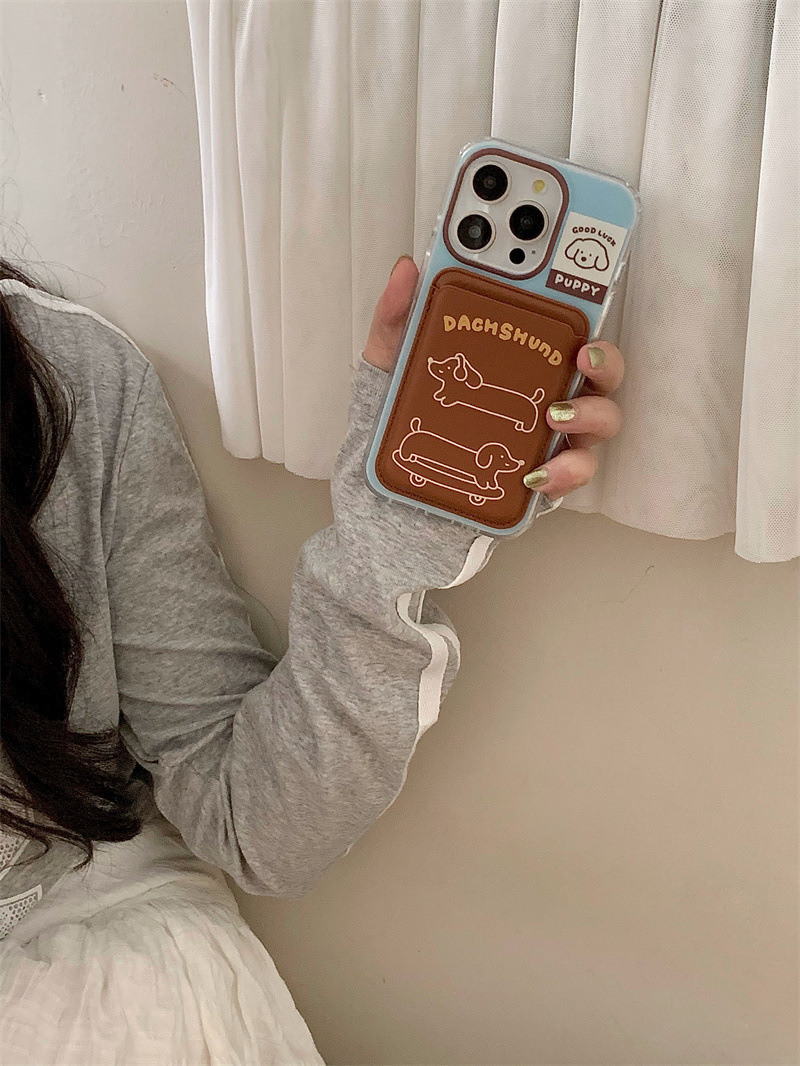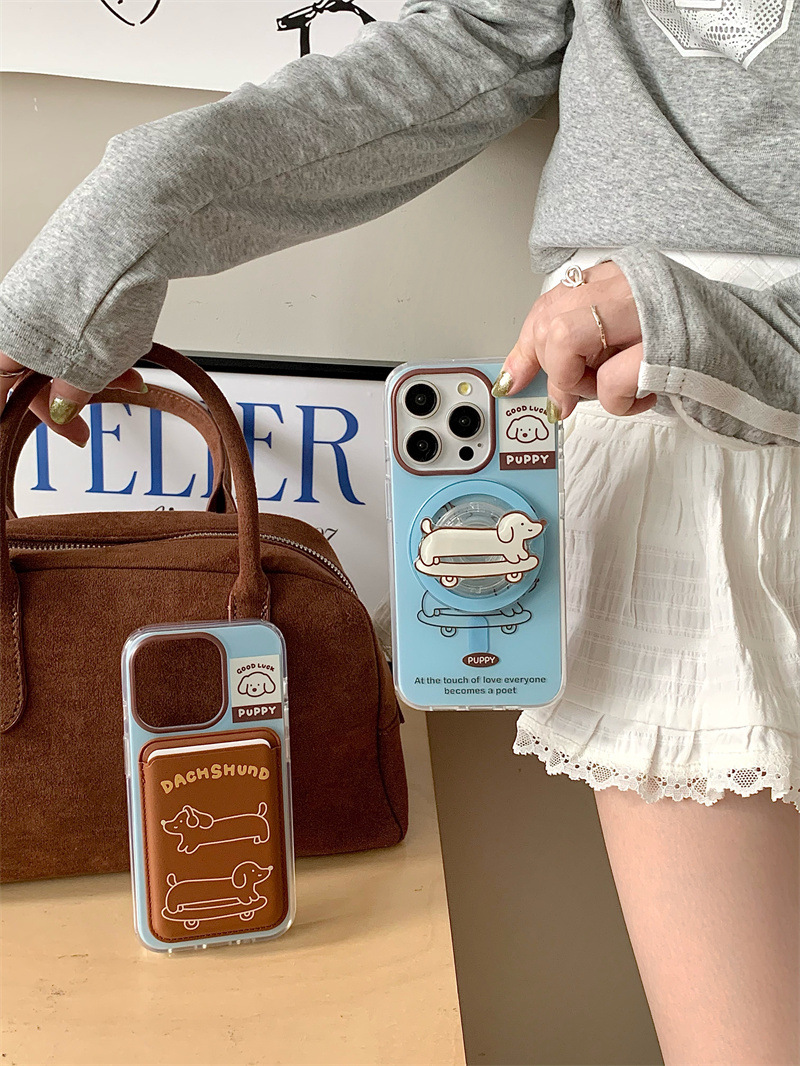 Paquete de tarjeta de succión magnética Skateboard Dachshund de dibujos animados para Apple 16Pro funda para teléfono móvil 15ProMax cachorro 14/13 mujer
