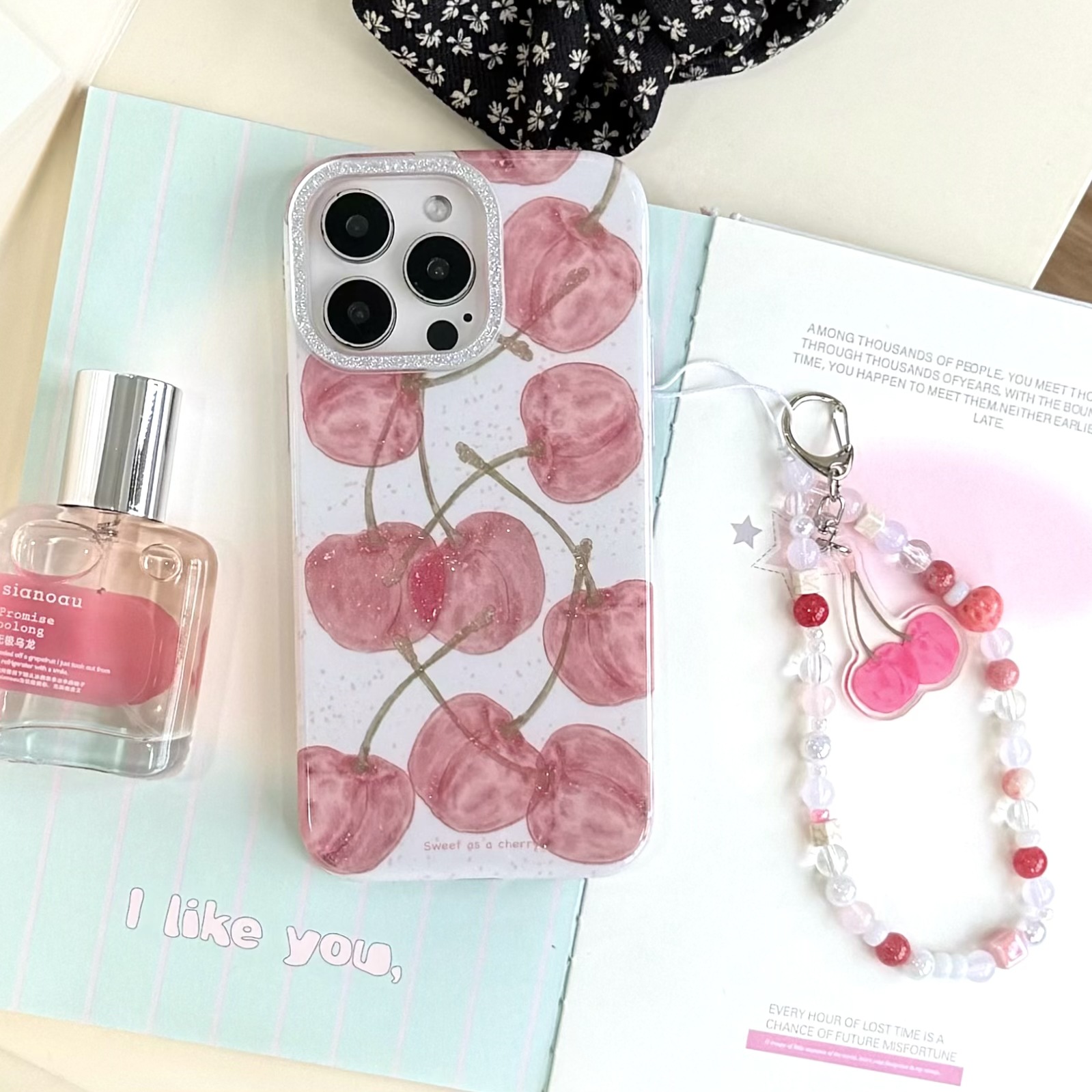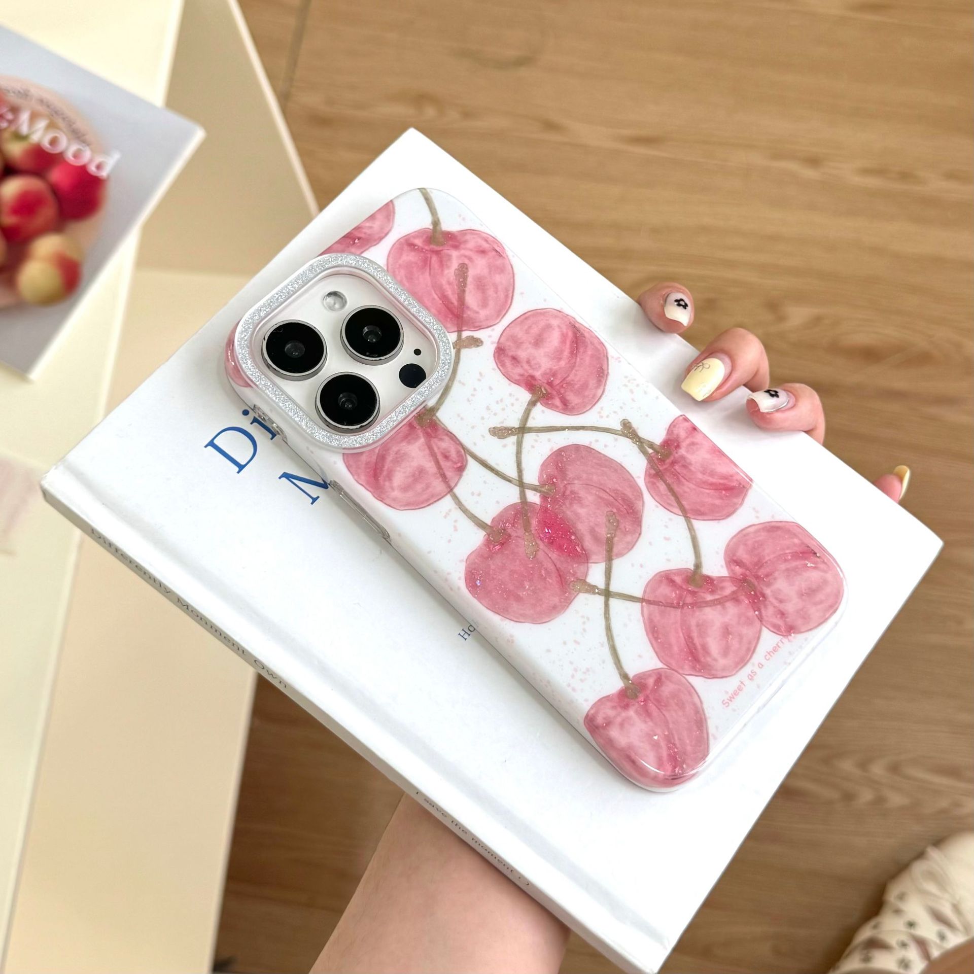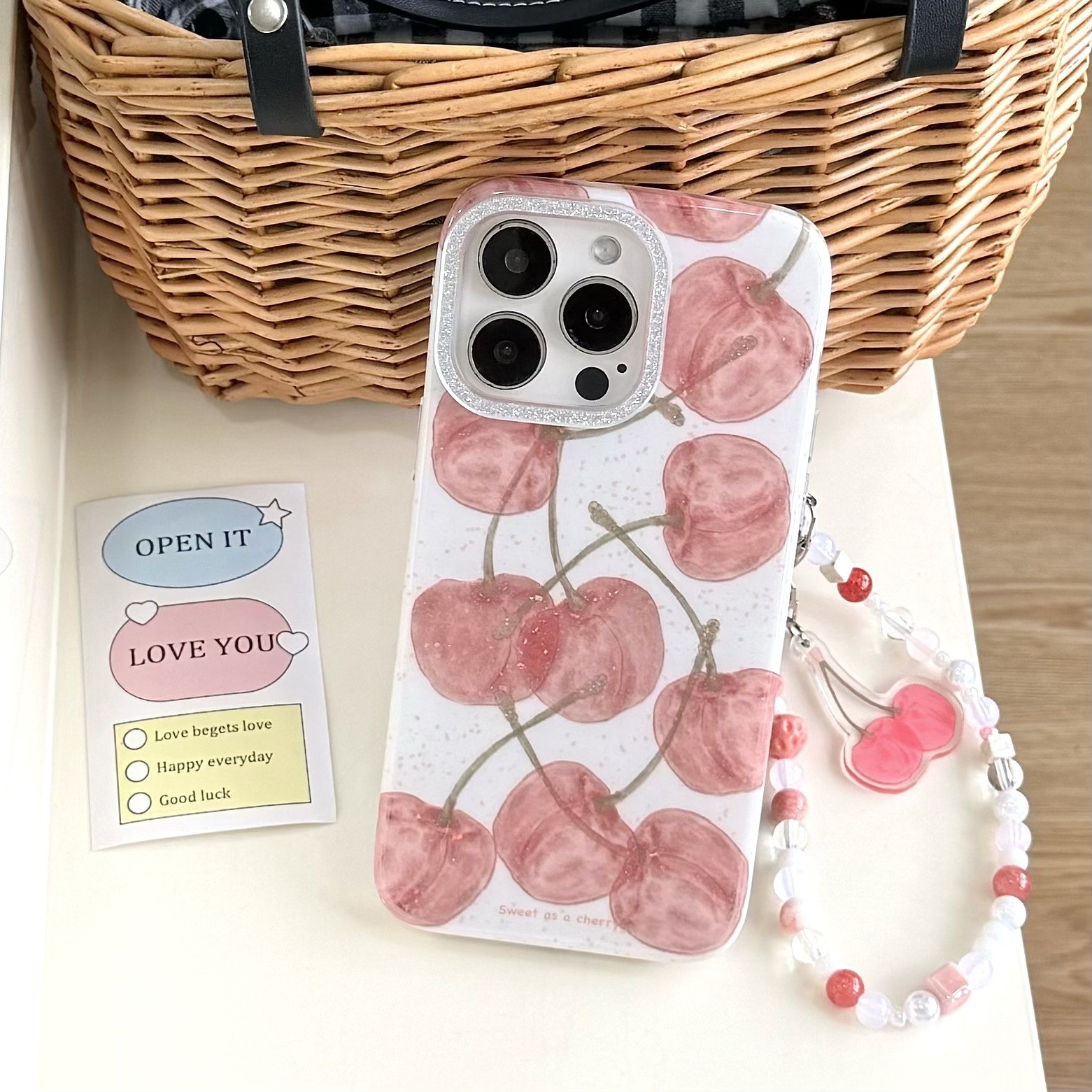 Verano pintura al óleo hueca brillo cereza apple 16ProMax funda para teléfono móvil 15Pro cadena 14/13 nuevo 16