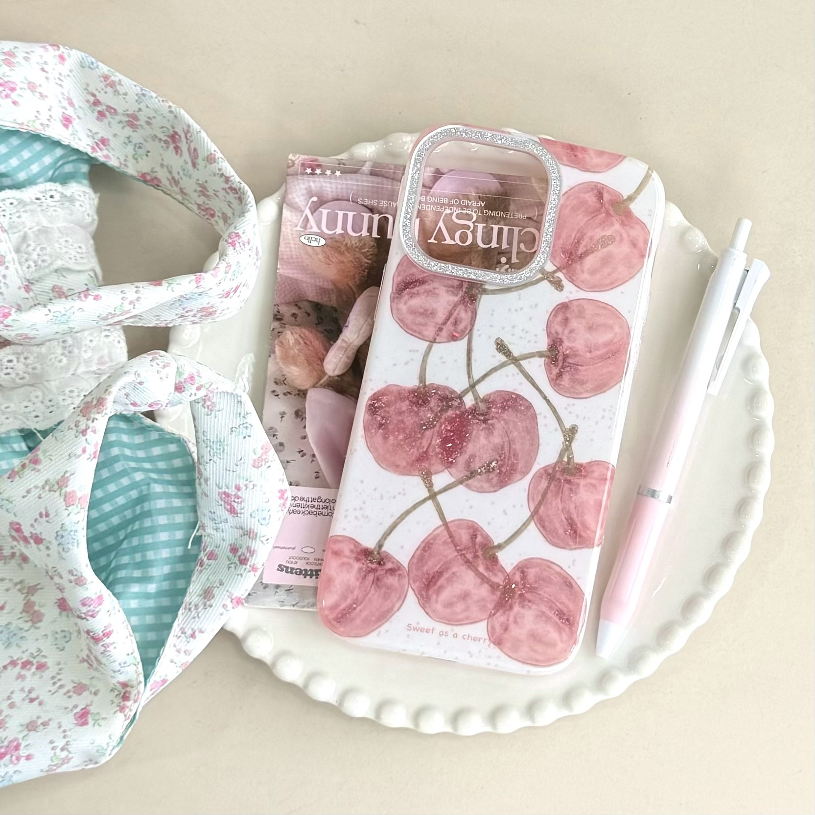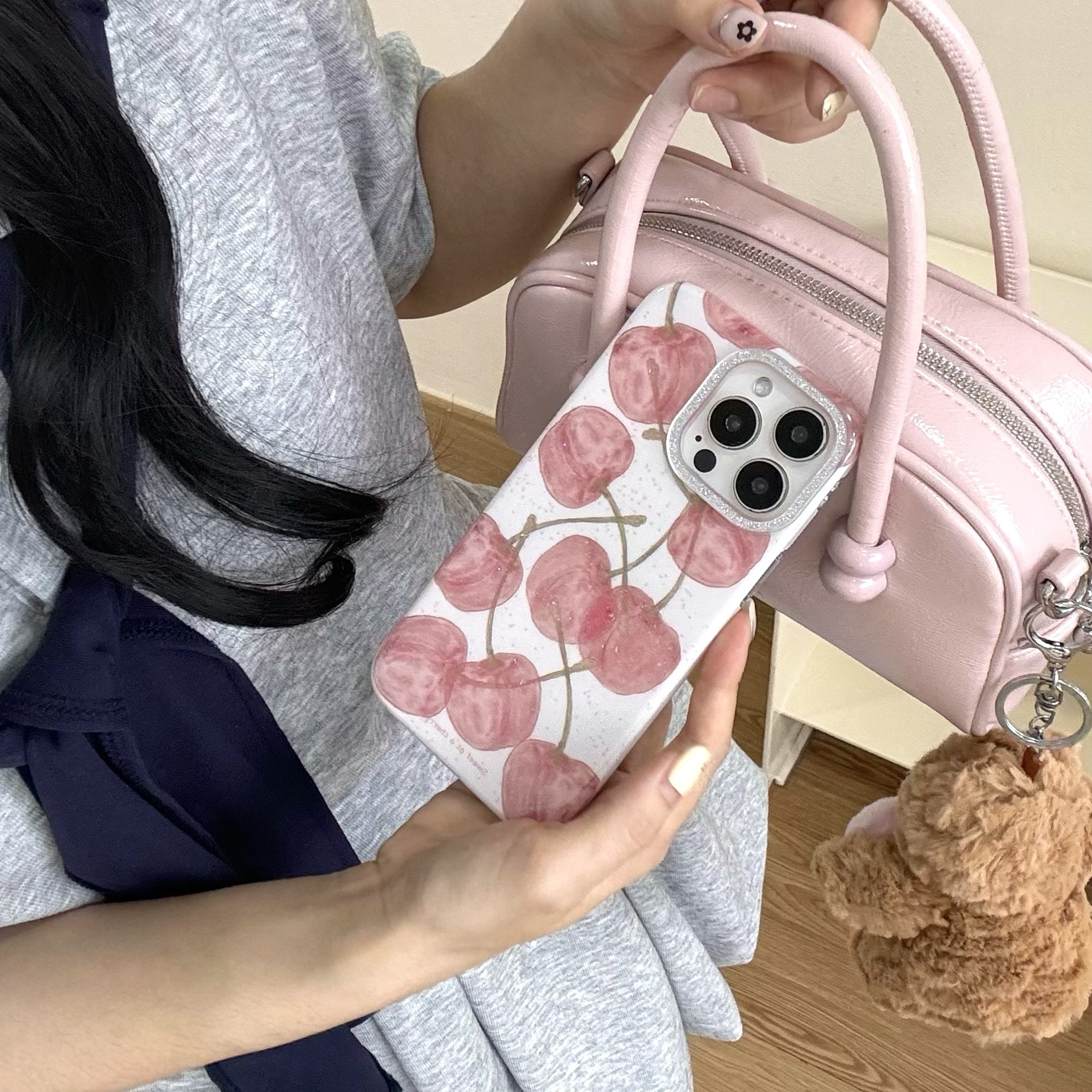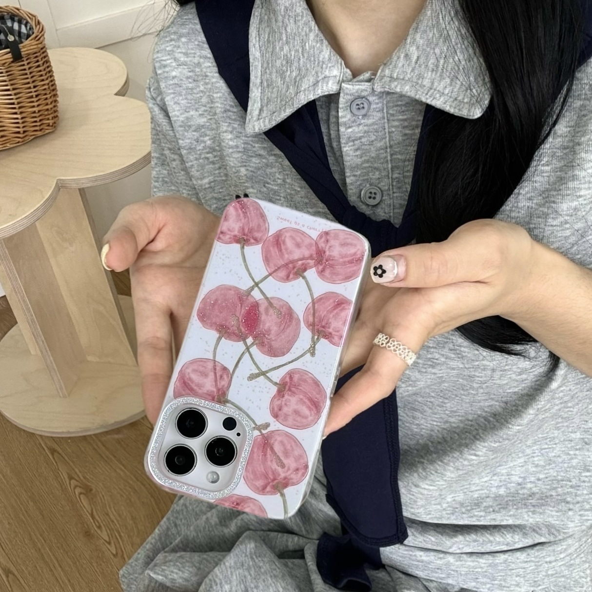Verano pintura al óleo hueca brillo cereza apple 16ProMax funda para teléfono móvil 15Pro cadena 14/13 nuevo 16